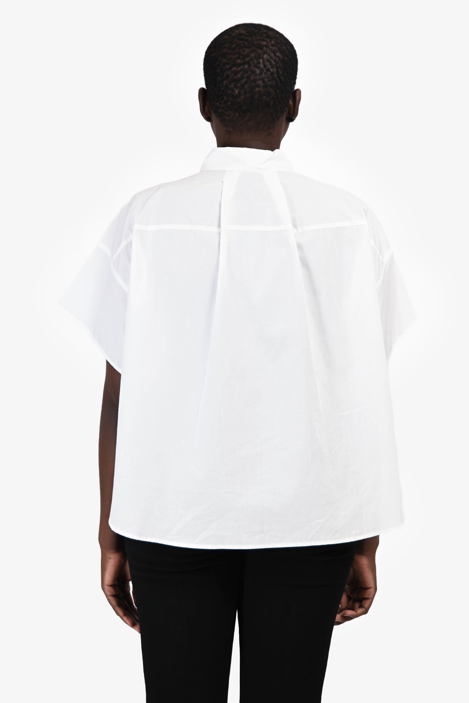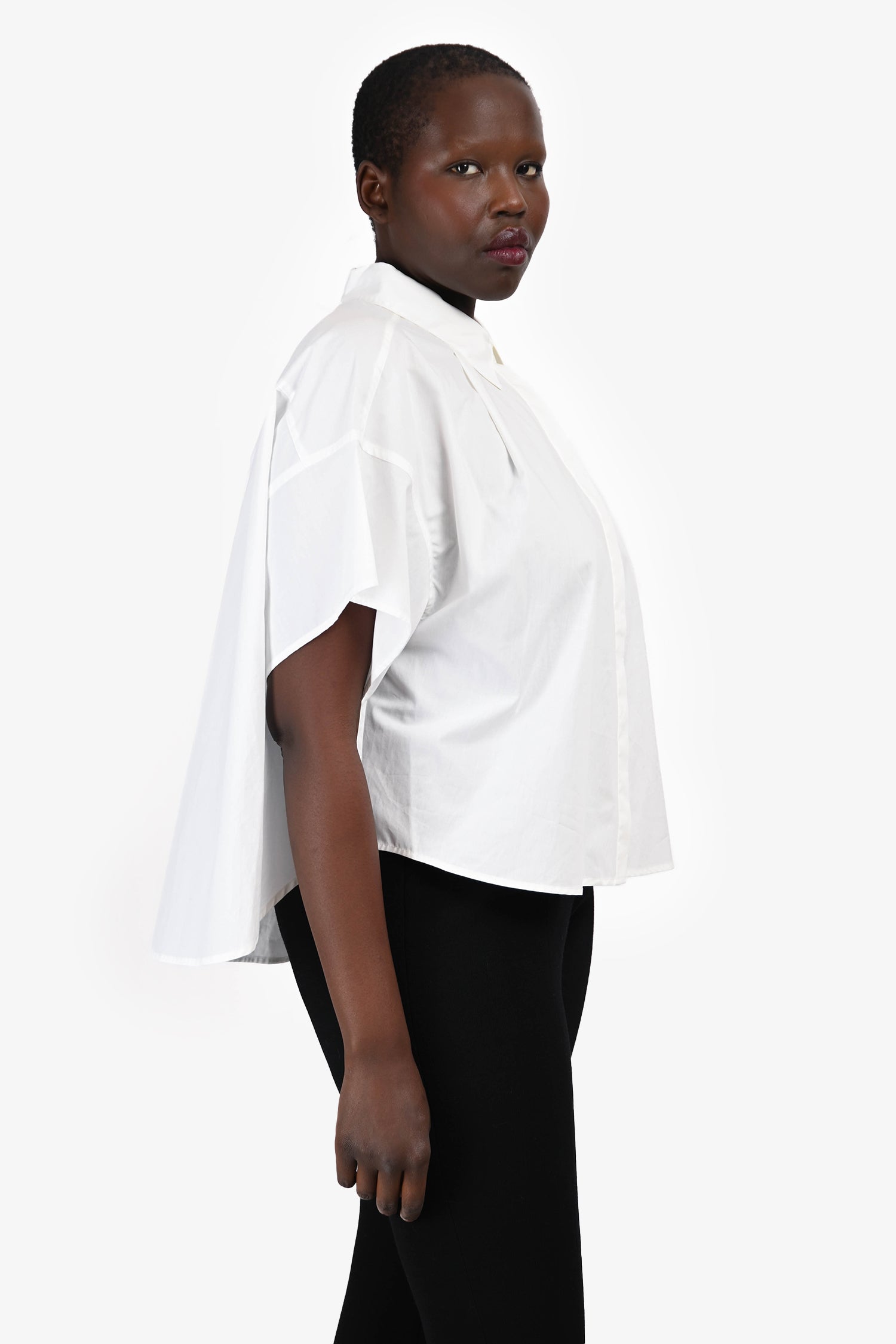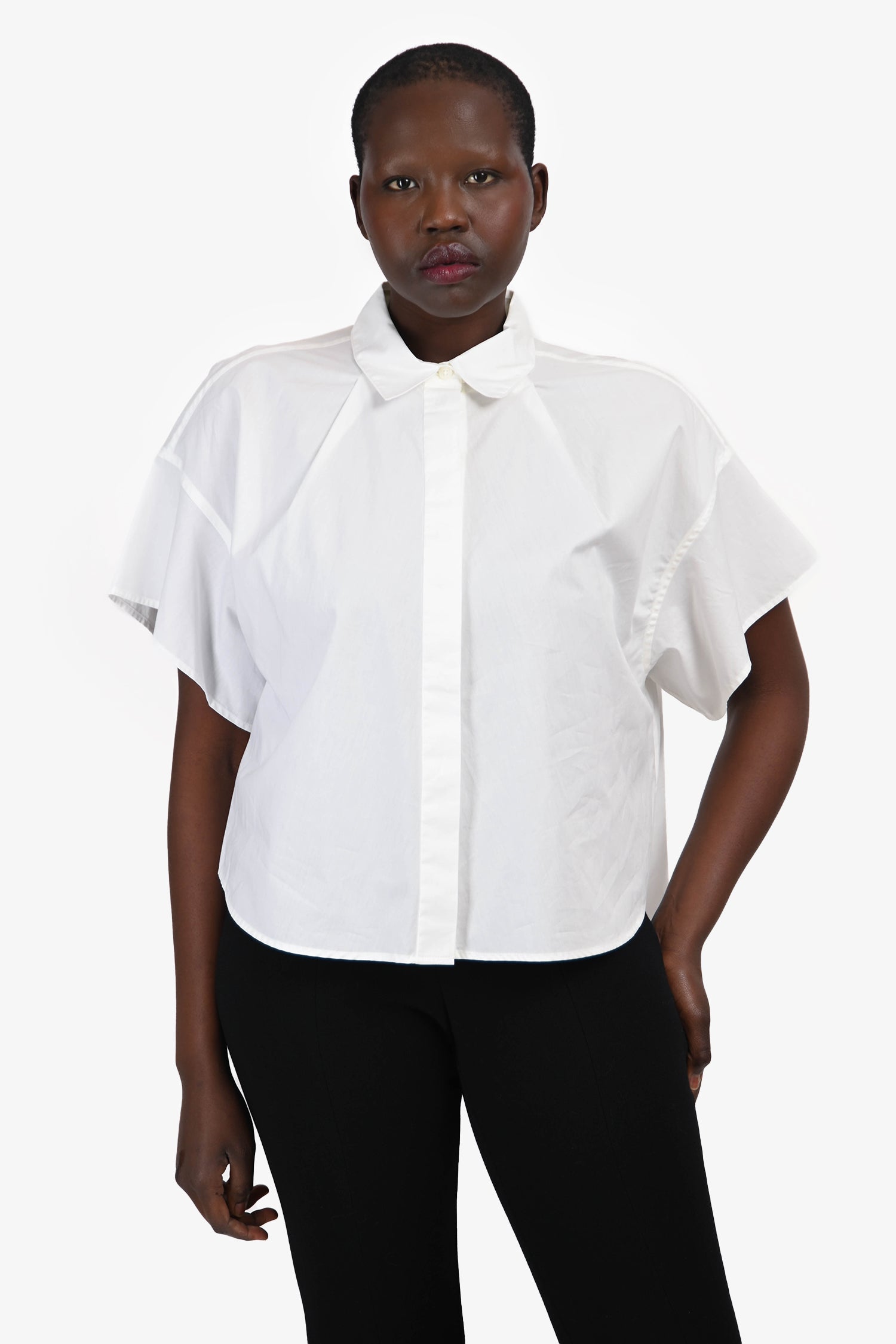 Refresh availabilityRag & Bone White Cotton Short Sleeve Button Down Top. Slip-on. Pointed collar. Hidden button-up closure in the front. Tonal stitching.