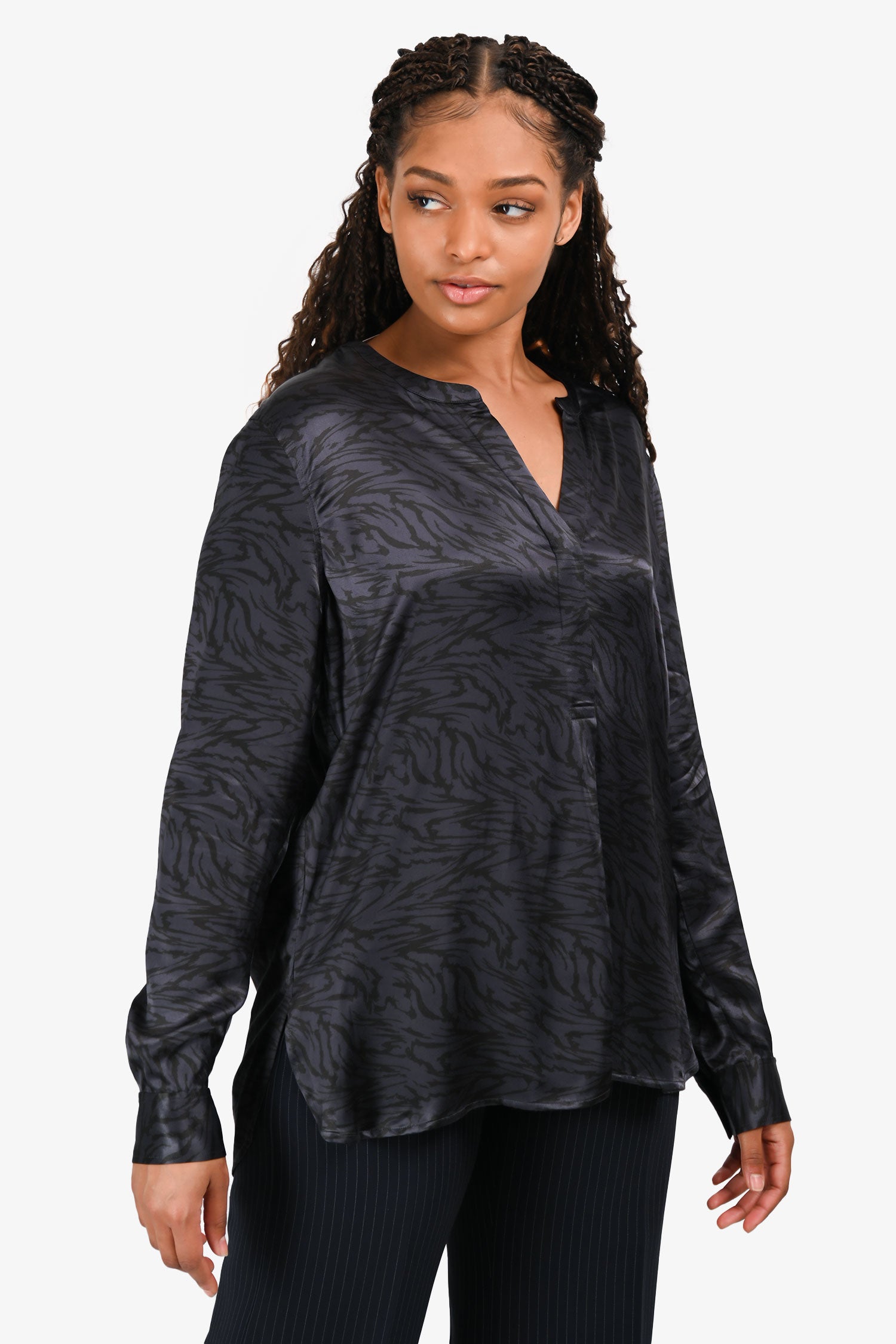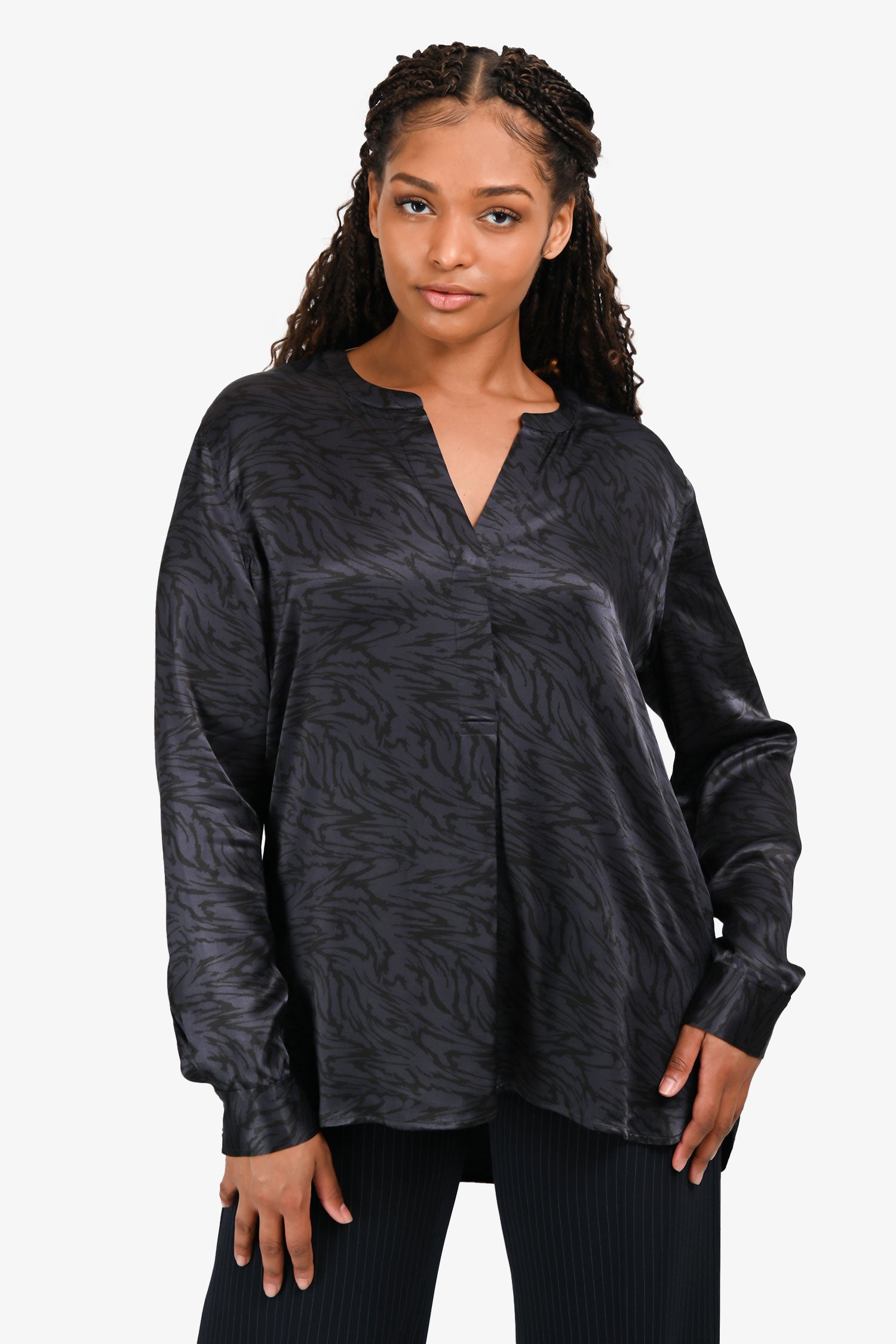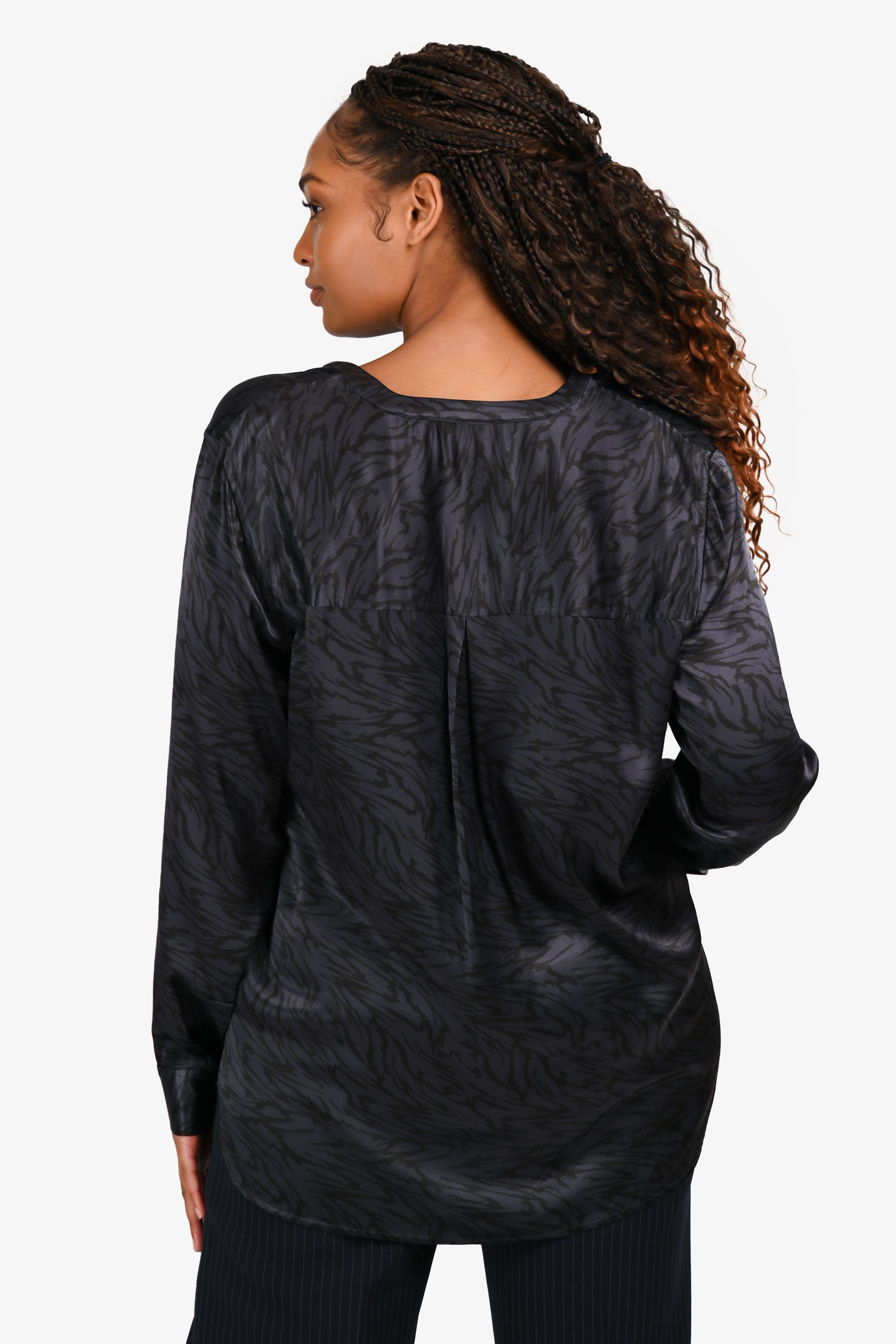 Refresh availabilityRails Black/Dark Purple V Neck Blouse. Slip-on. V-neckline. Quarter front button closure. Cuffs with button-up closures. Tonal stitching.