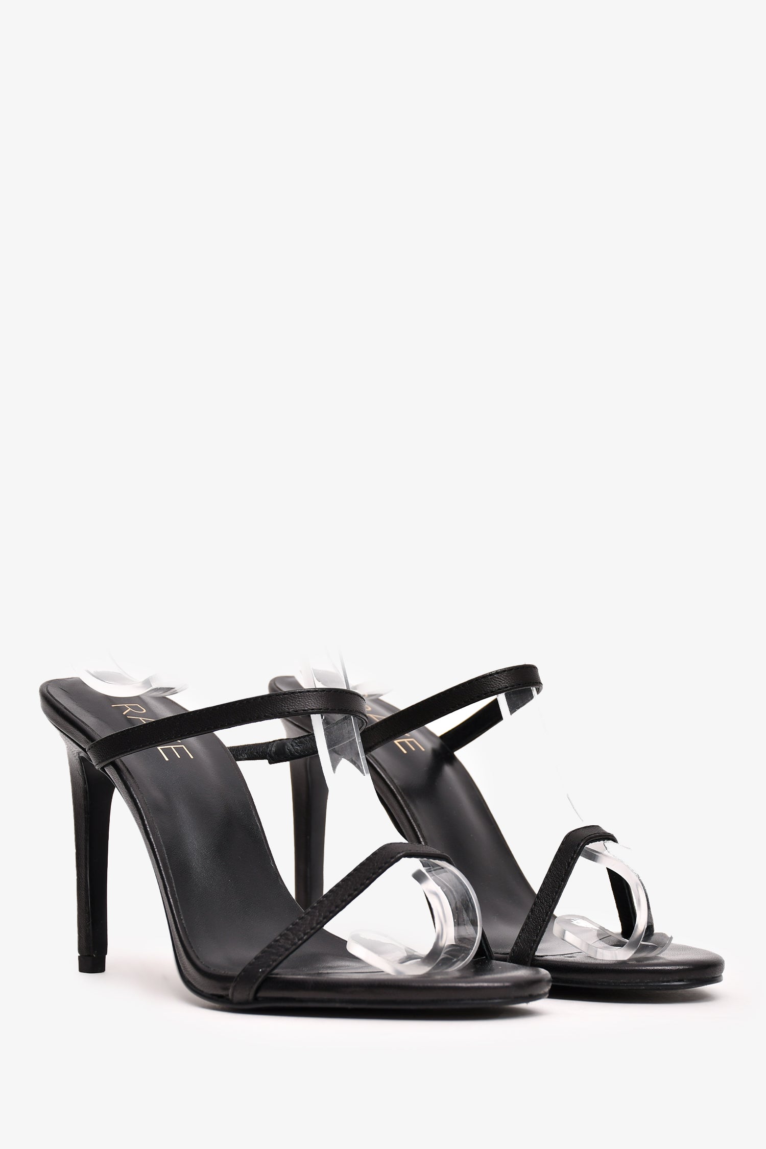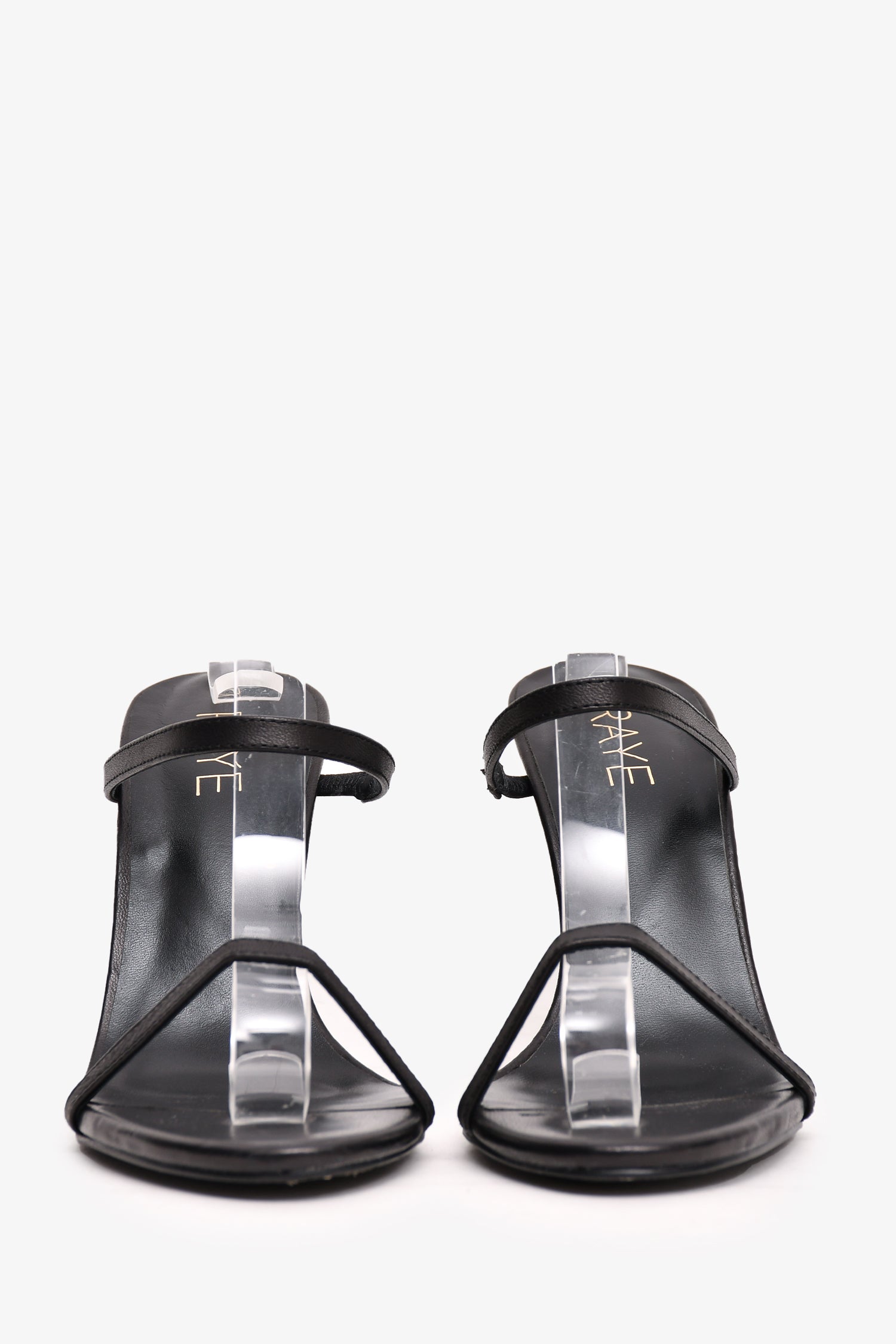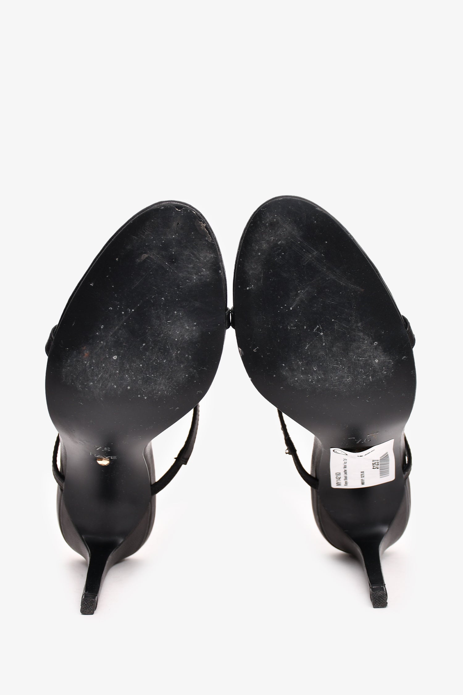Refresh availabilityRaye Black Leather 'Nina' Heels. Elastic strap. Tonal stitching.
