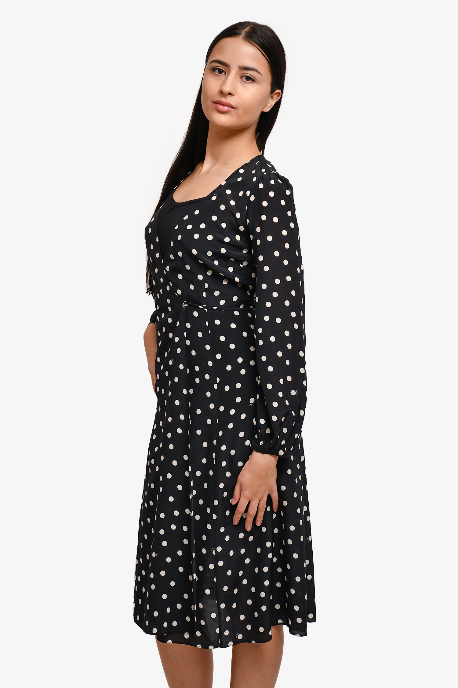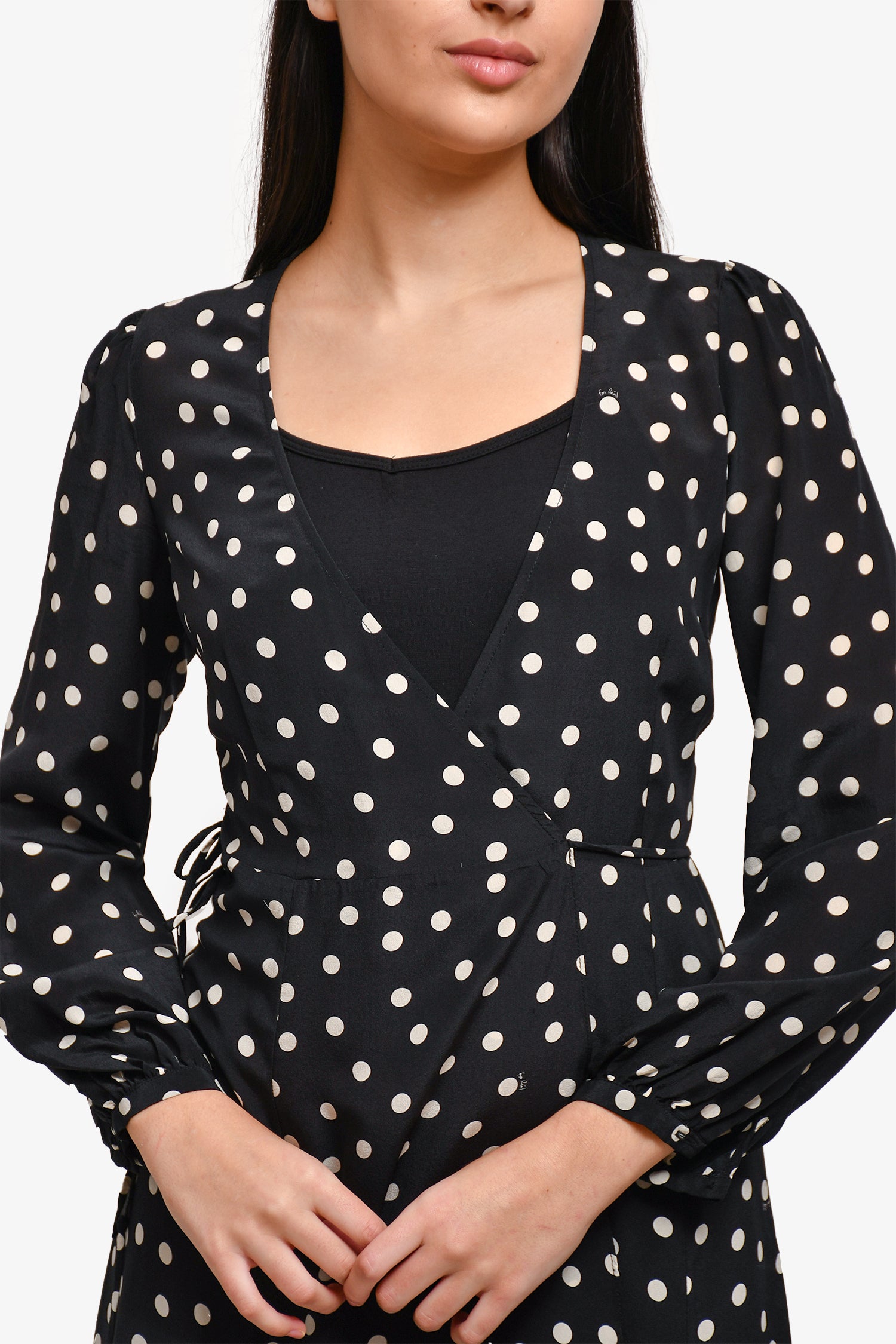 Realisation Par Black/White Polka Dot Silk Wrap Dress Size S