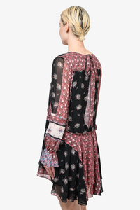 Rebecca Minkoff Black/Pink Floral Patchwork Flowy Dress Size S