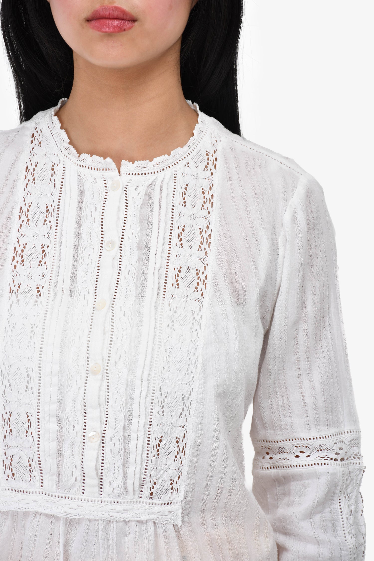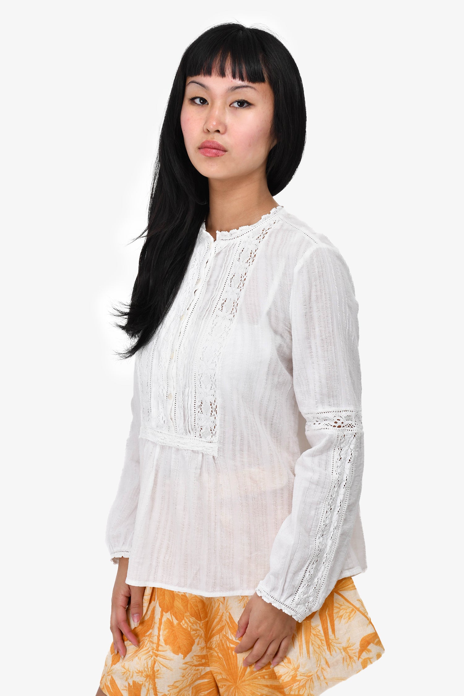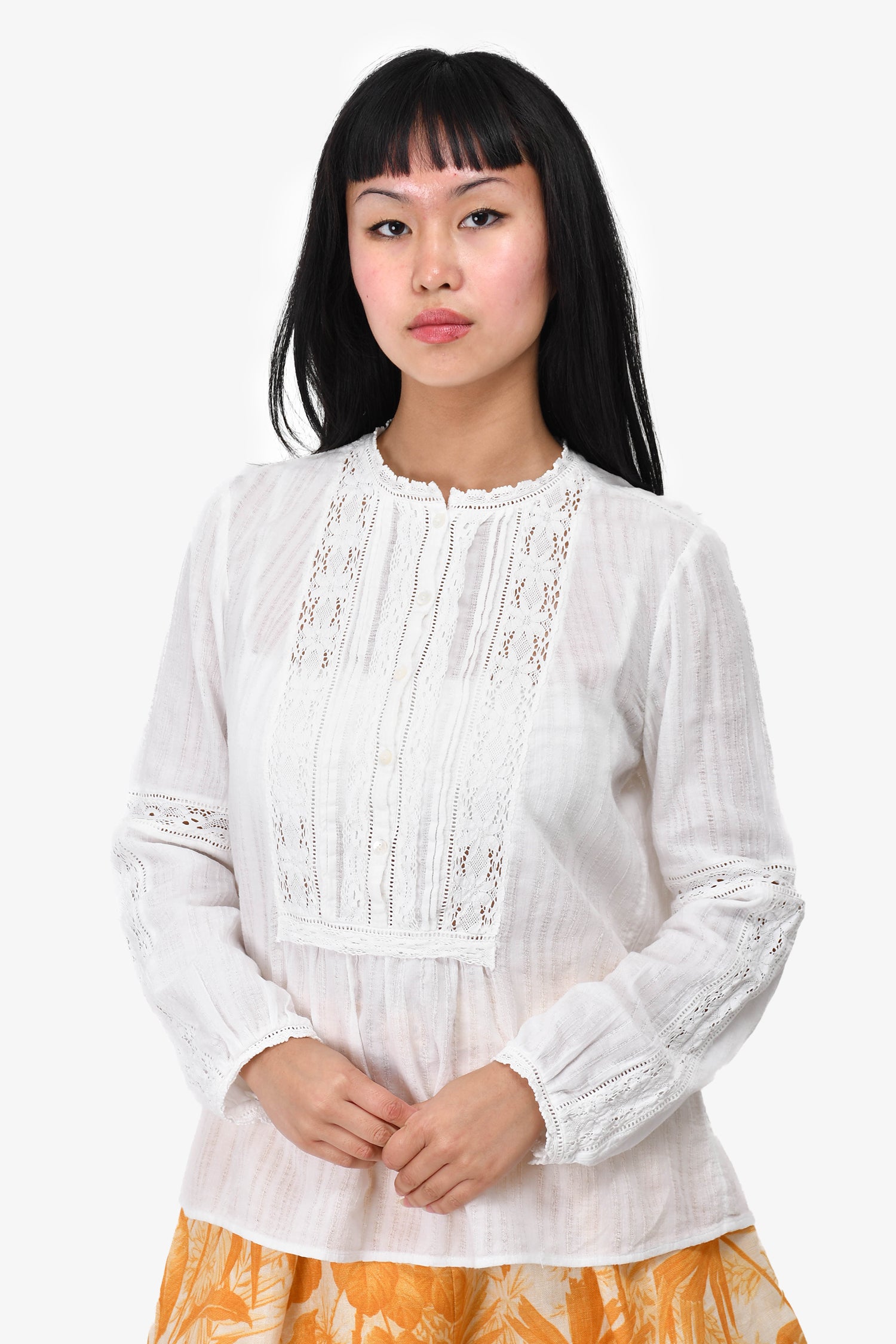 Refresh availabilityRebecca Taylor White Blouse With Lace Trim. Lace detailing throughout. Front button-up closure. Tonal stitching.