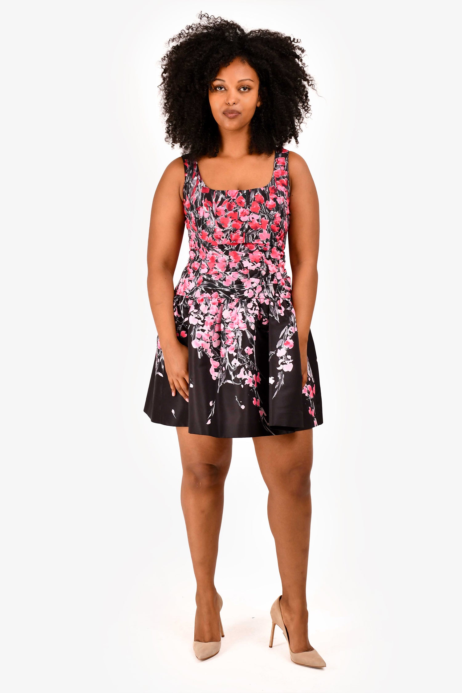 Refresh availabilityRed Valentino Black/Pink Floral Nylon Mini Dress. Lightweight nylon fabric with allover floral print. Crew neckline. Fitted bodice with flared mini skirt. Hidden back zip closure. Fully lined. Tonal stitching.
