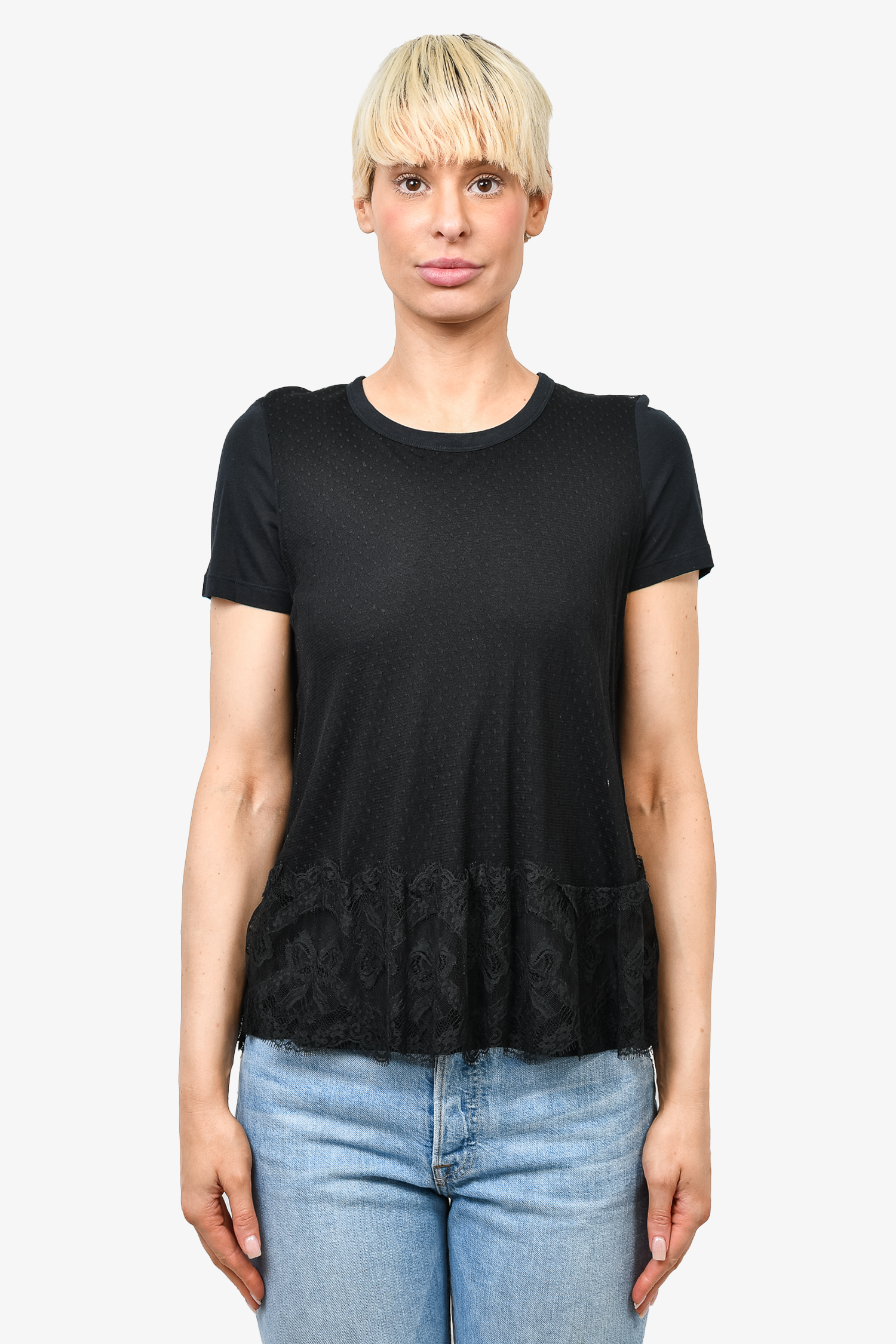 Red Valentino Black S/S T-Shirt w/ Mesh Overlay sz L