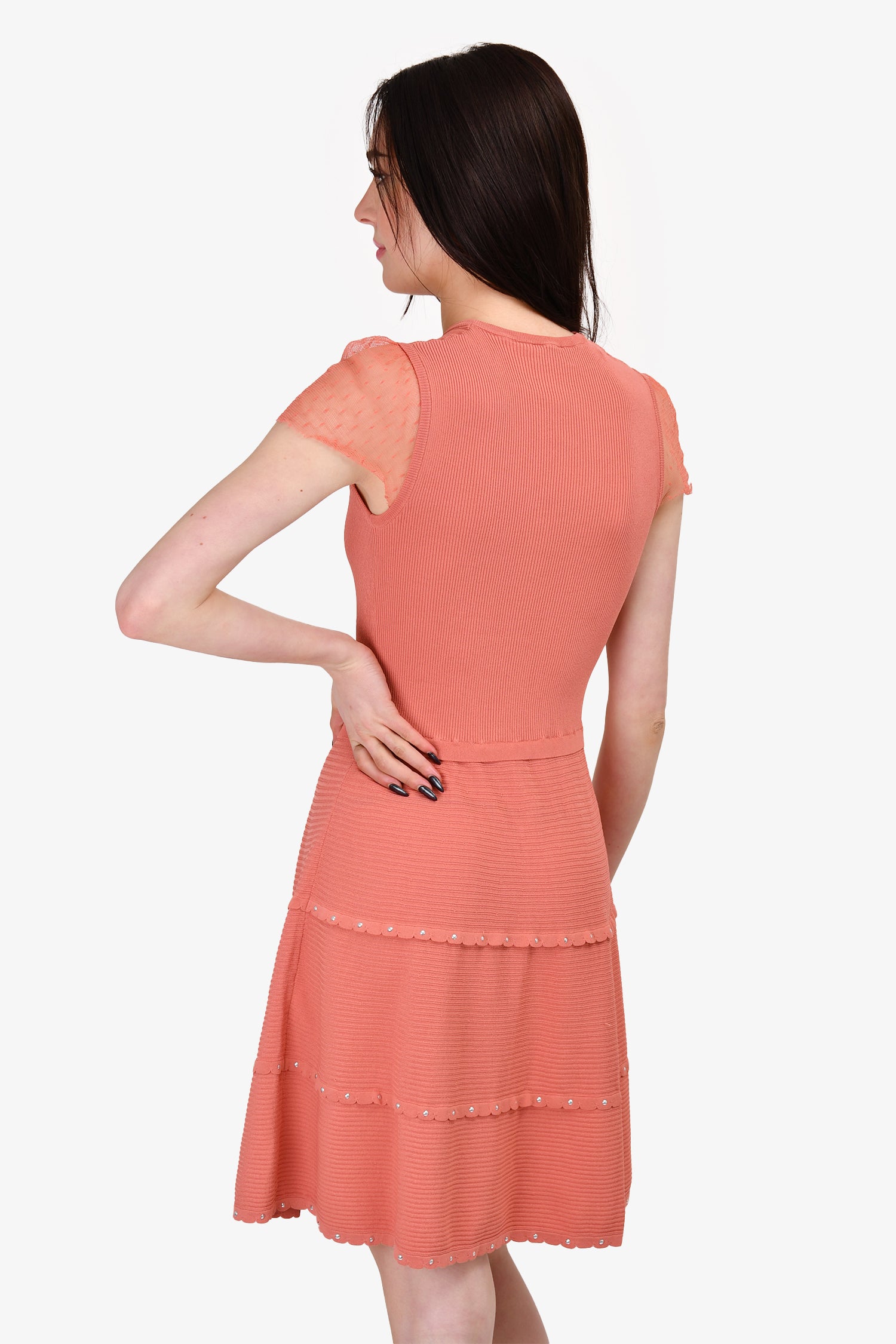 Red Valentino Rose Mesh Sleeved Ribbed Midi Dress Size M