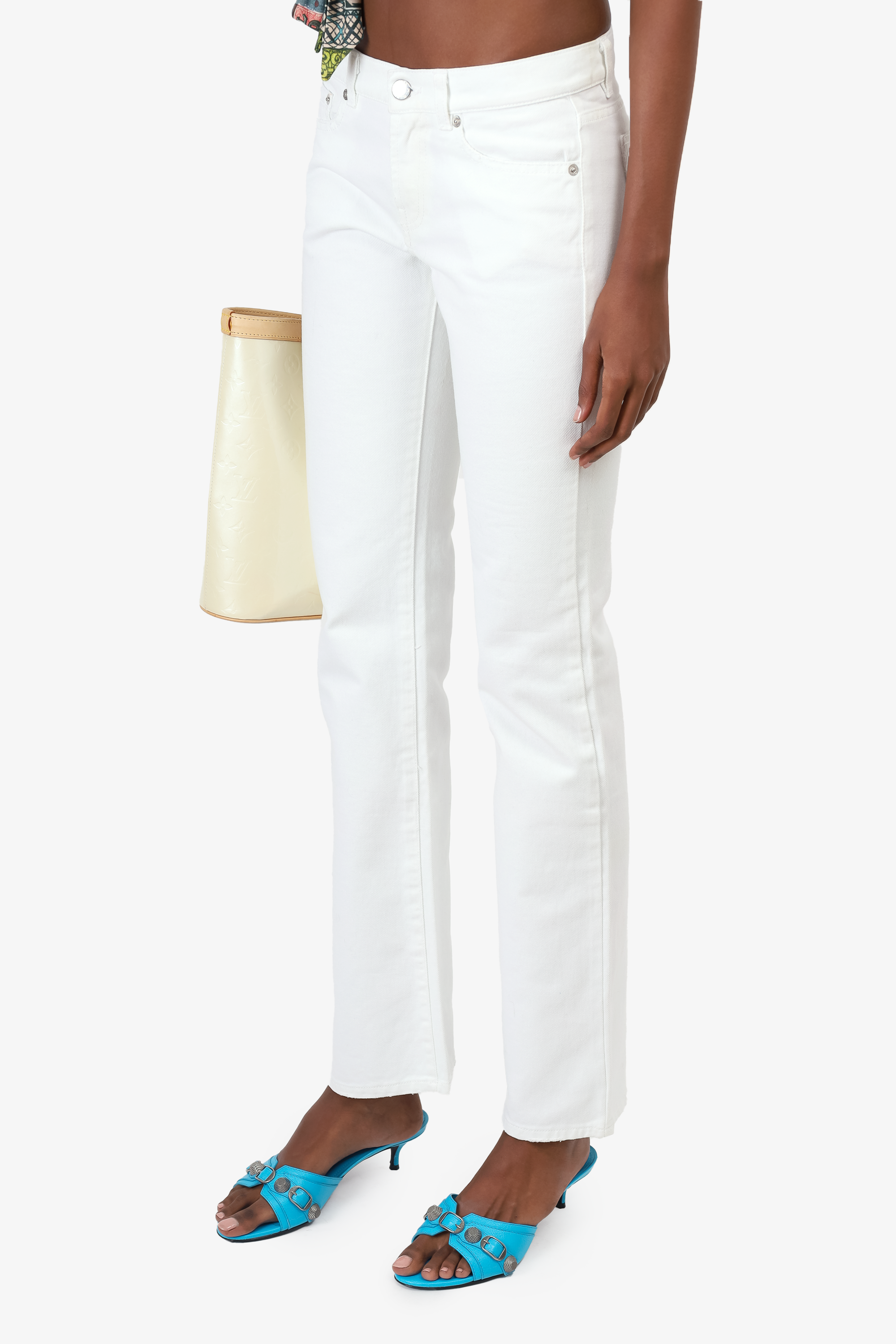 Refresh availabilityRed Valentino White Denim Straight Leg Jeans. Front button and zip closure. Front and rear slip pockets. Waist belt loops. Tonal stitching. Original tags intact.