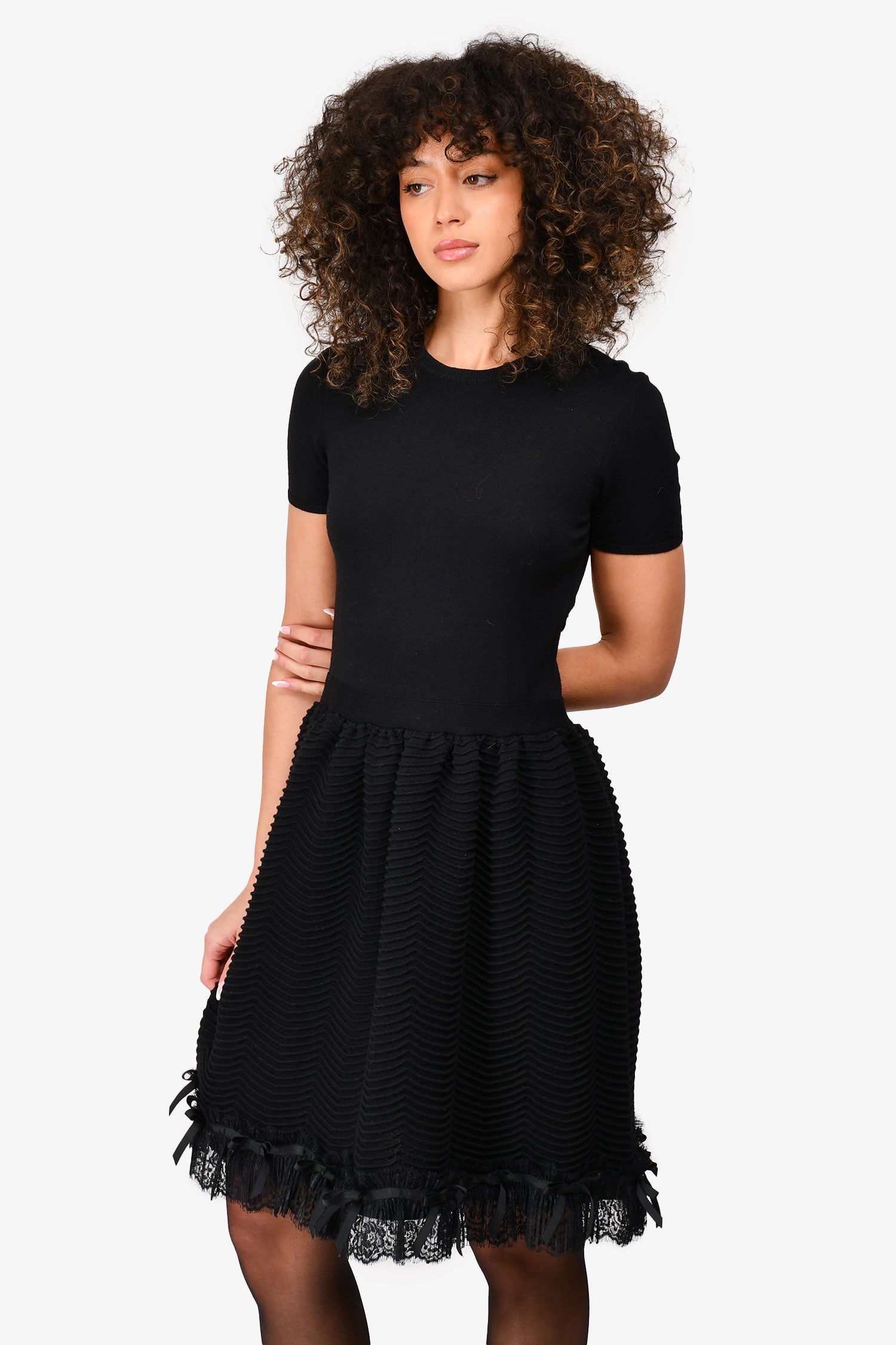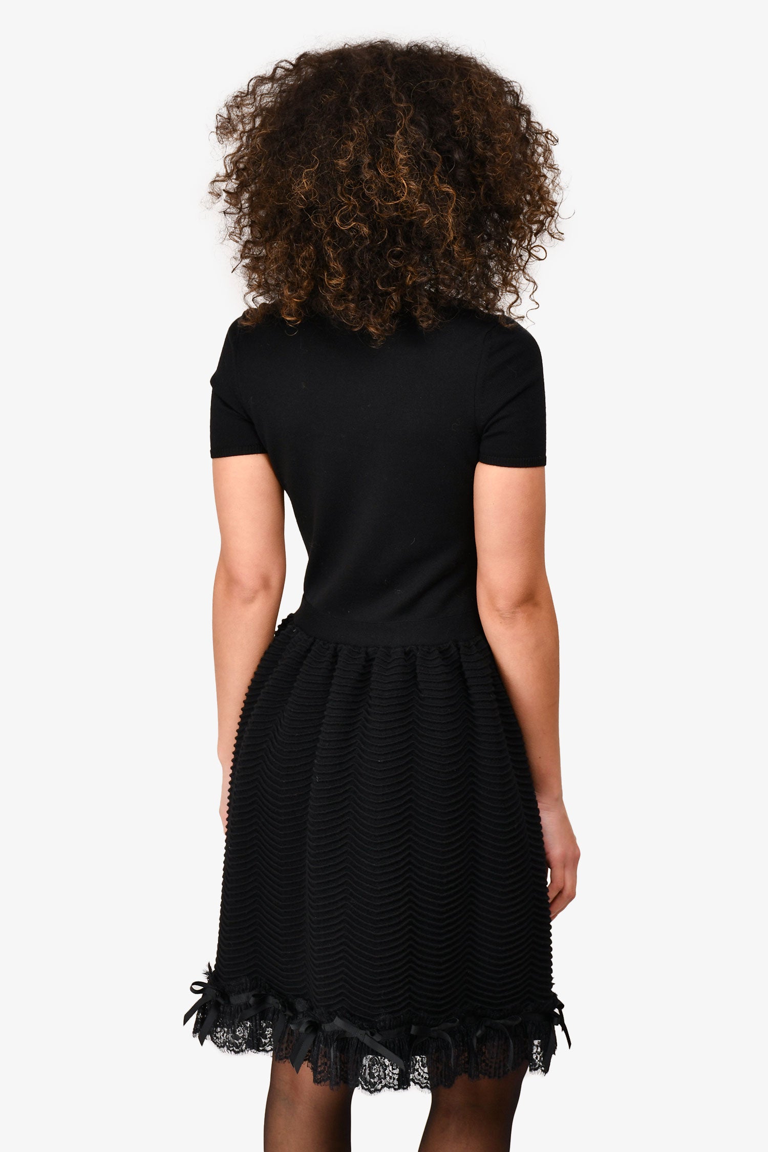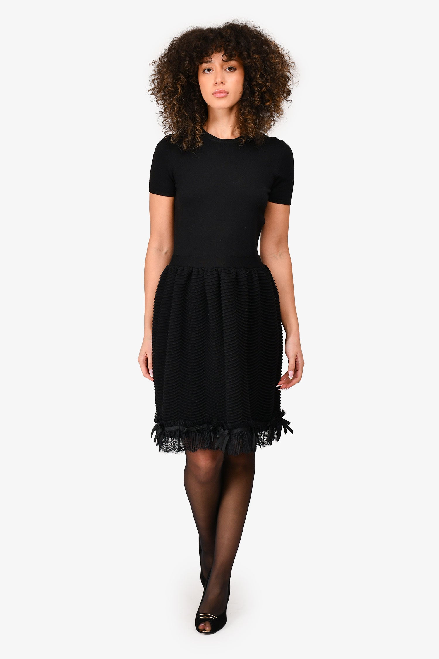 Refresh availabilityRed Valentino Wool Ribbon Hem Detail Dress. Lace and grosgrain bow hemming. Ribbed sleeves and collar. Tonal stitching.