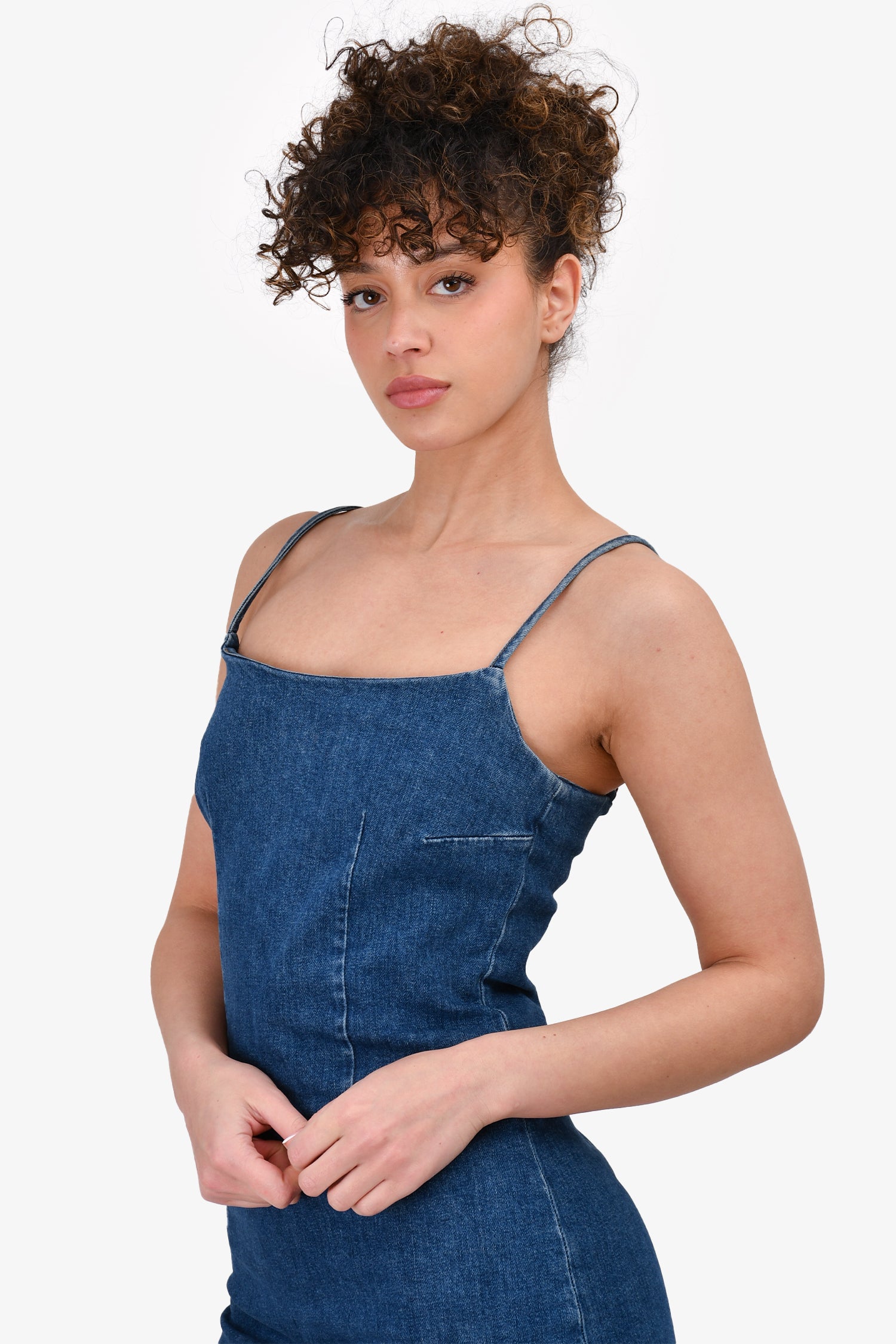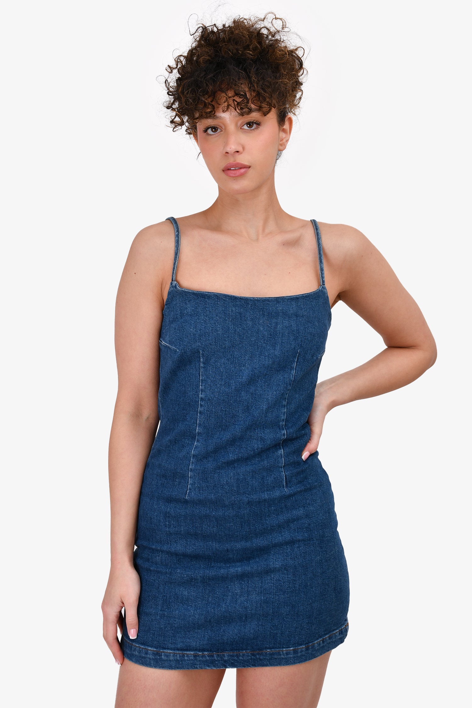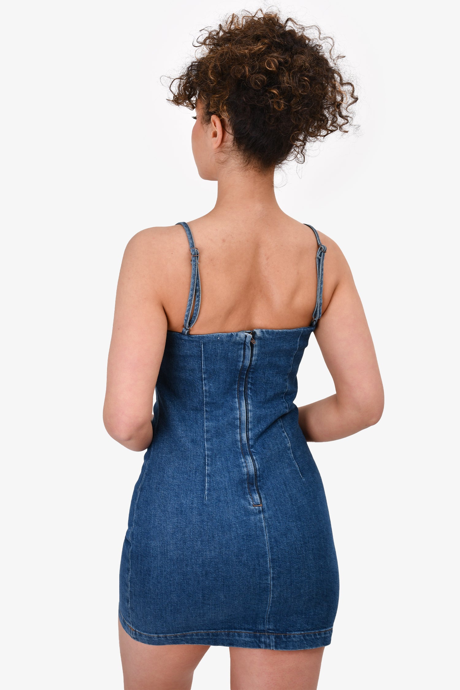 Refresh availabilityReformation Jeans Dark Wash Sleeveless Denim Mini Dress. Rear zip closure. Unlined. Adjustable straps.