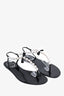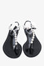 Rene Caovilla Black Faux Pearl T-Strap Sandals Size 37.5