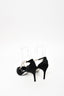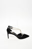 Rene Caovilla Black Satin Pearl Crossover Strap Kitten Heels Size 38.5