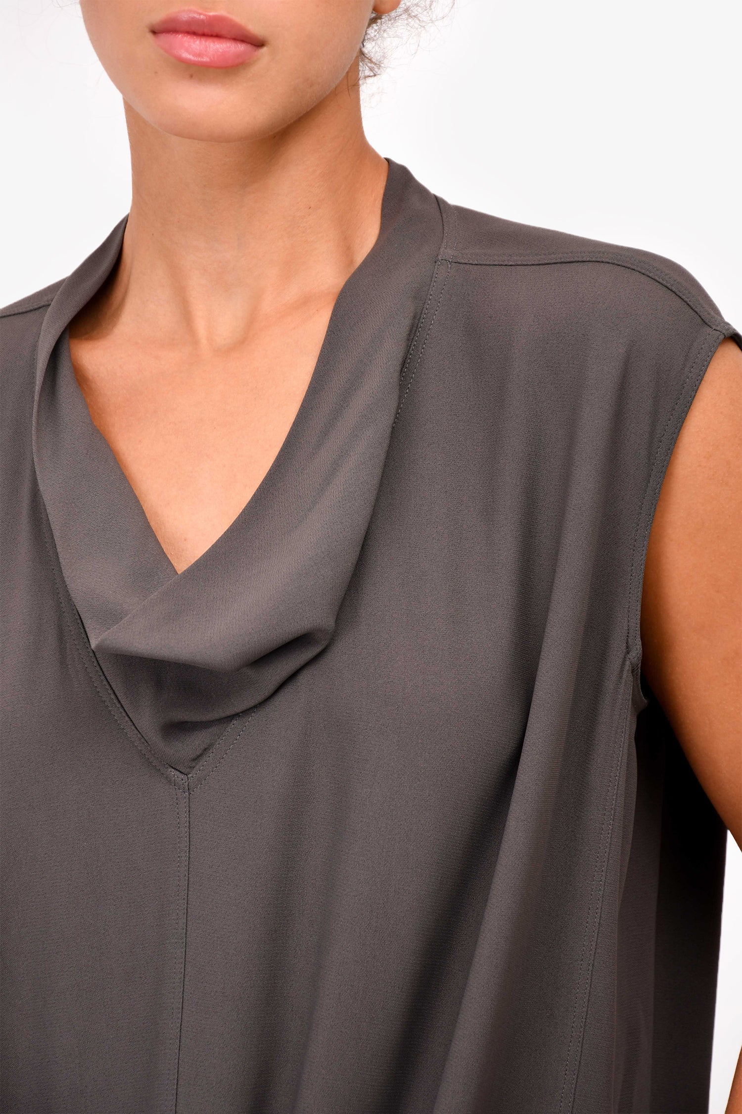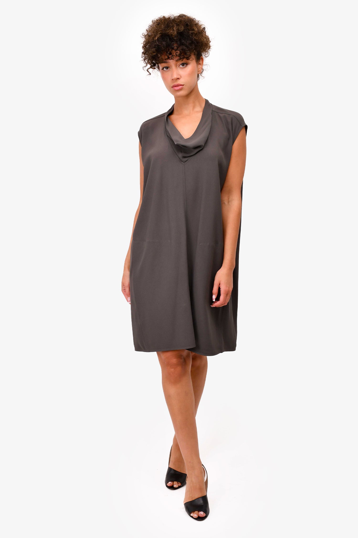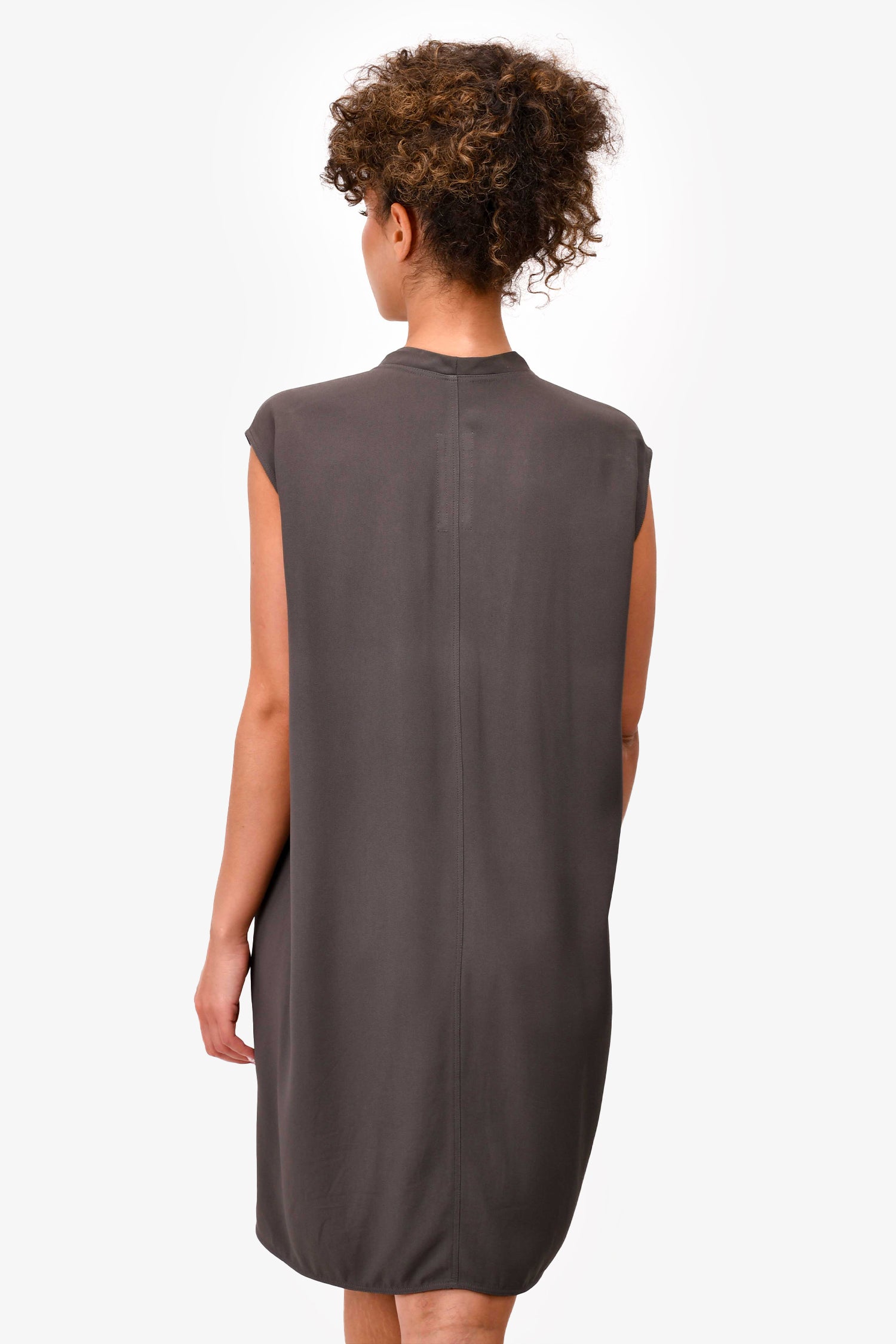 Refresh availabilityRick Owens 2015 Grey Draped Neck Sleeveless Dress. Pull-on. Front pockets.