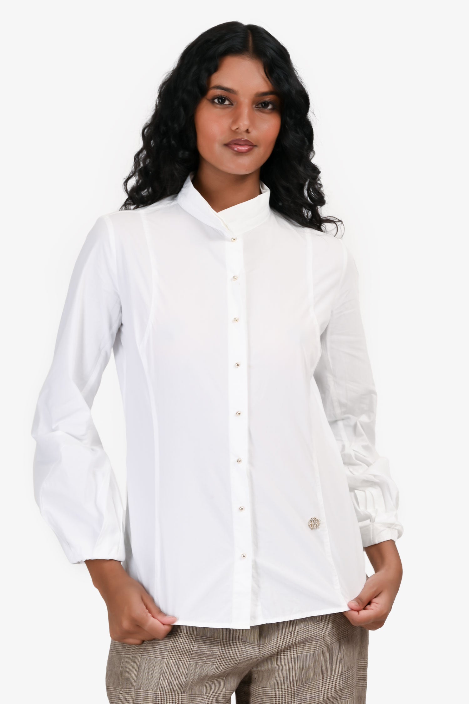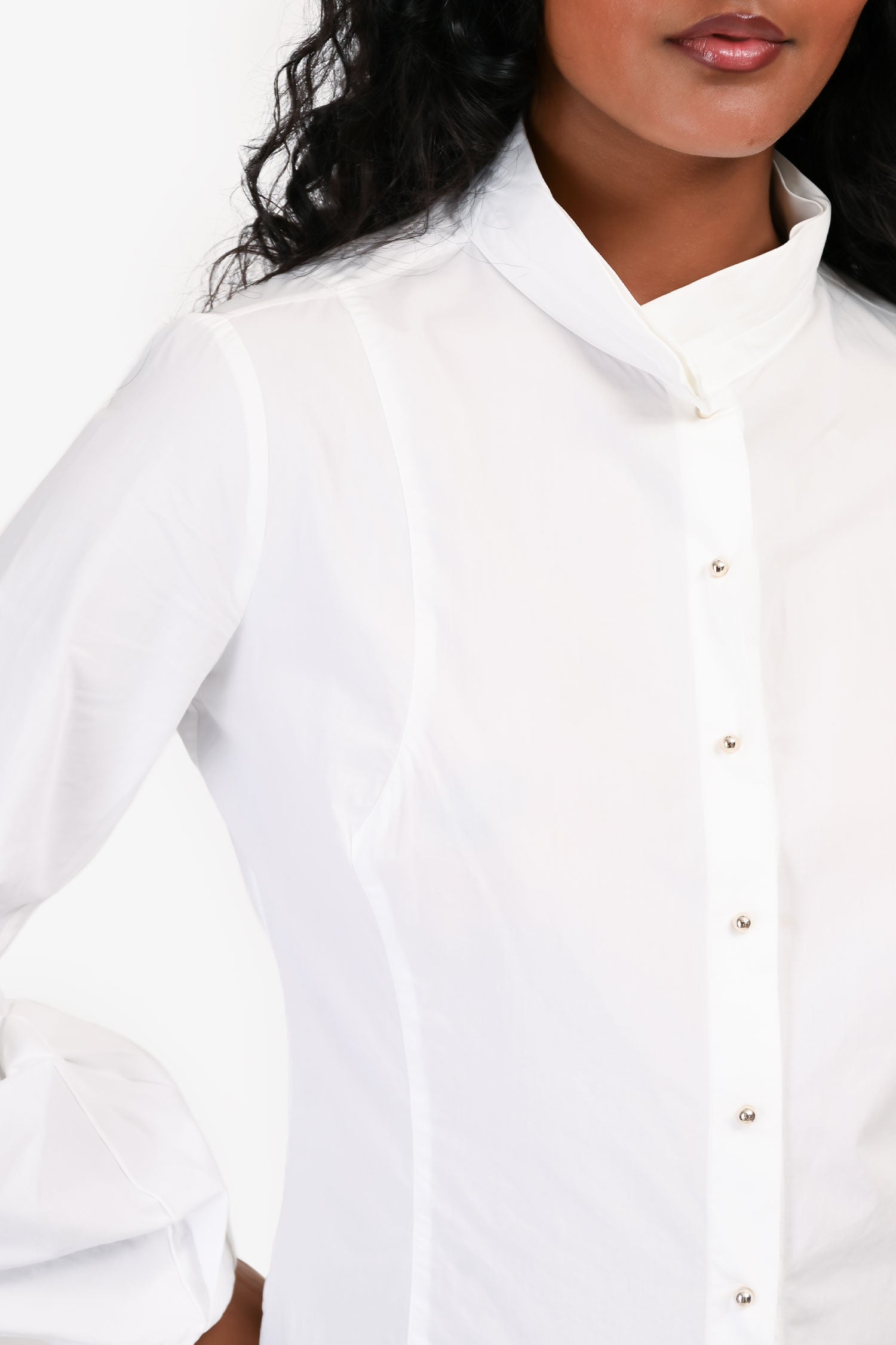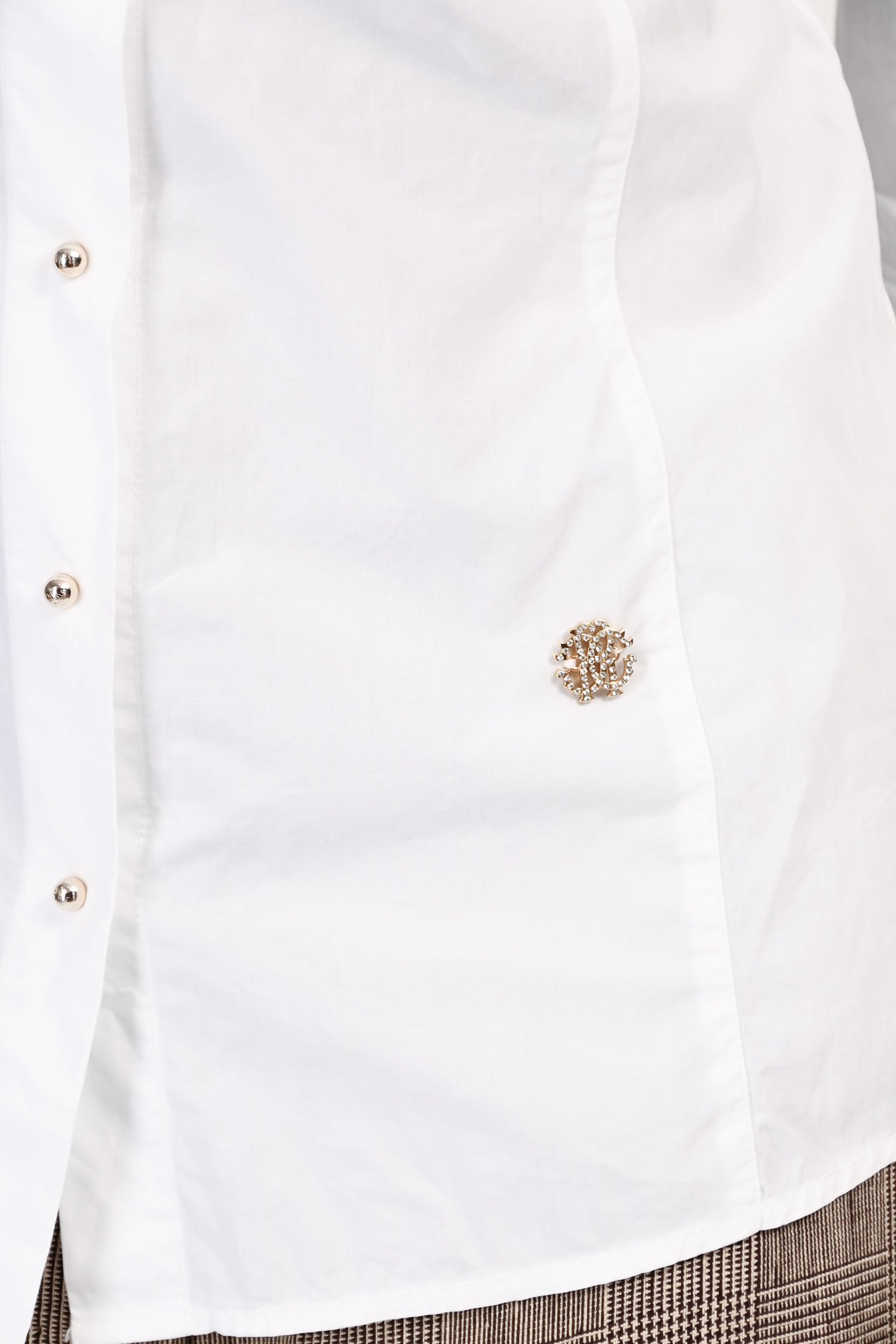 Refresh availabilityRoberto Cavali White Cotton Gold-Tone Button Down Shirt. Pointed collar. Long sleeves. Front gold-tone button closure. Tonal stitching.