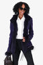 Roberto Cavalli Purple Suede Fox Fur Jacket Size 42