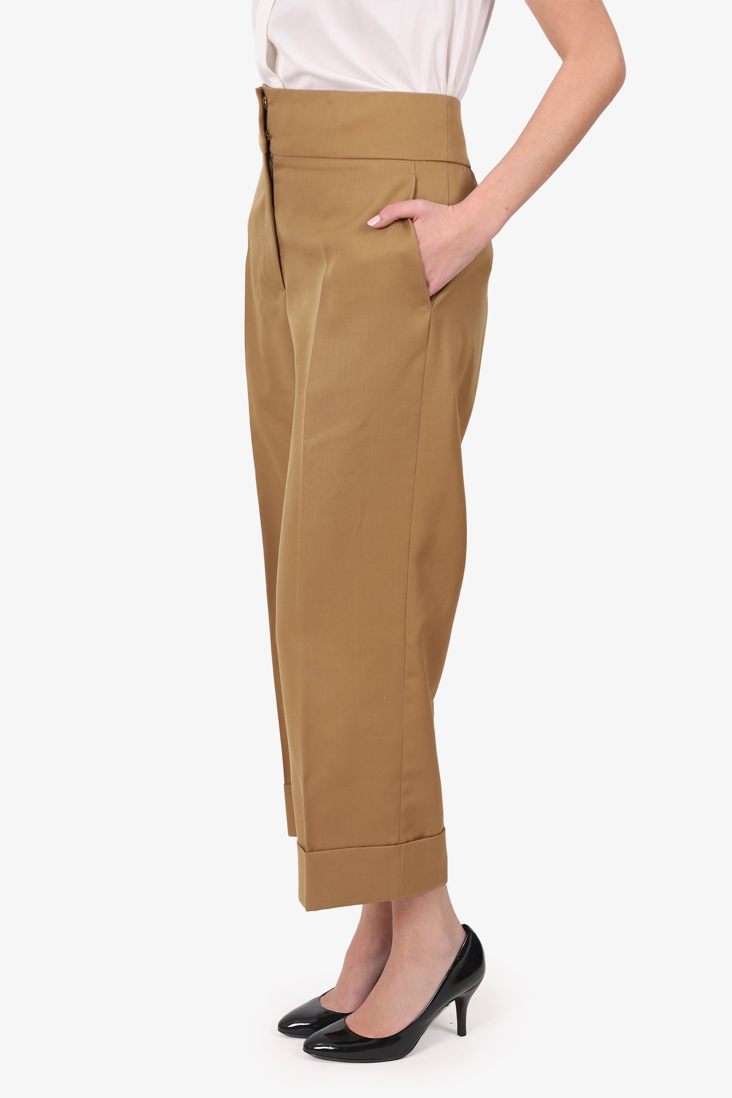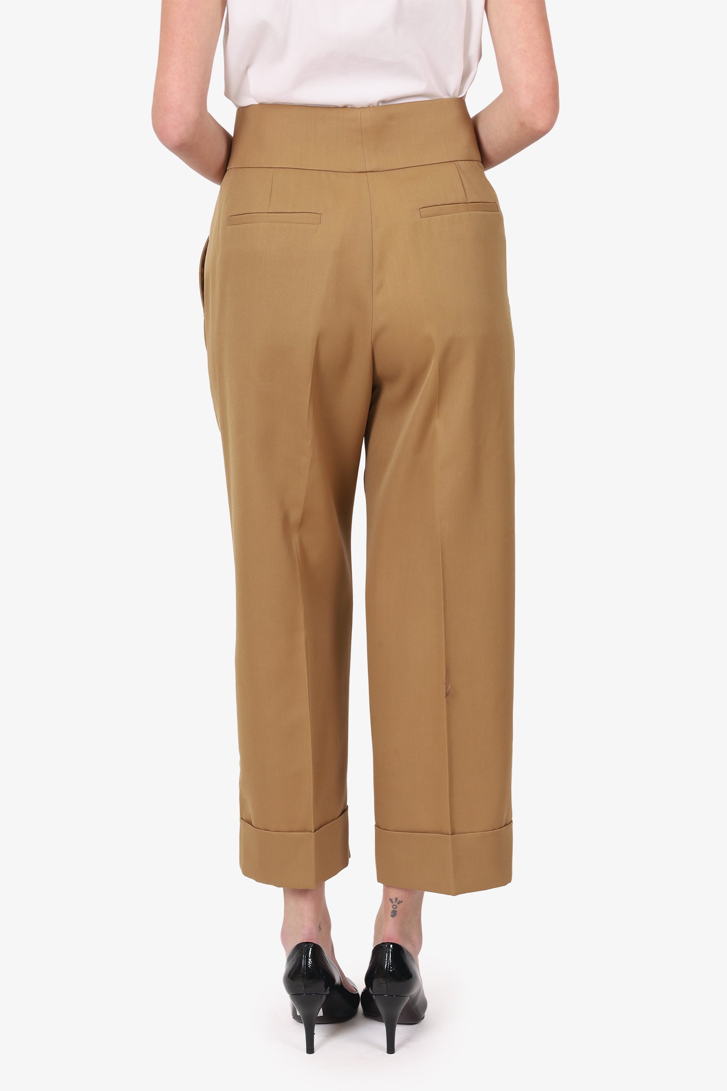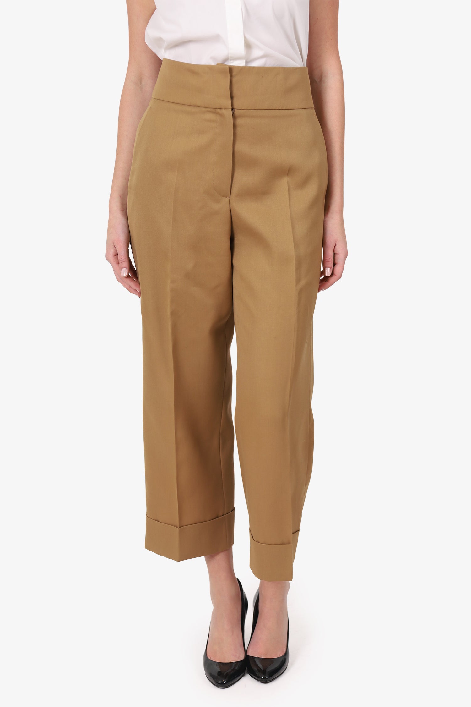 Refresh availabilityRochas Brown Wool High Waisted Pants. Slip-on. Front zip with snap-button-up closure. 4 exterior slip pockets; 2 side, and 2 rear. Gold-tone hardware. Tonal stitching.