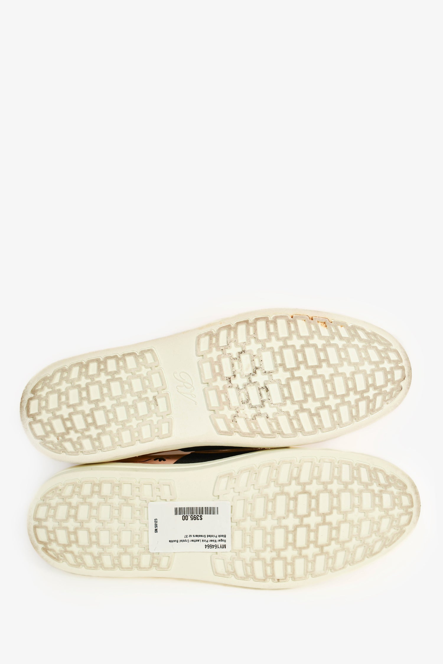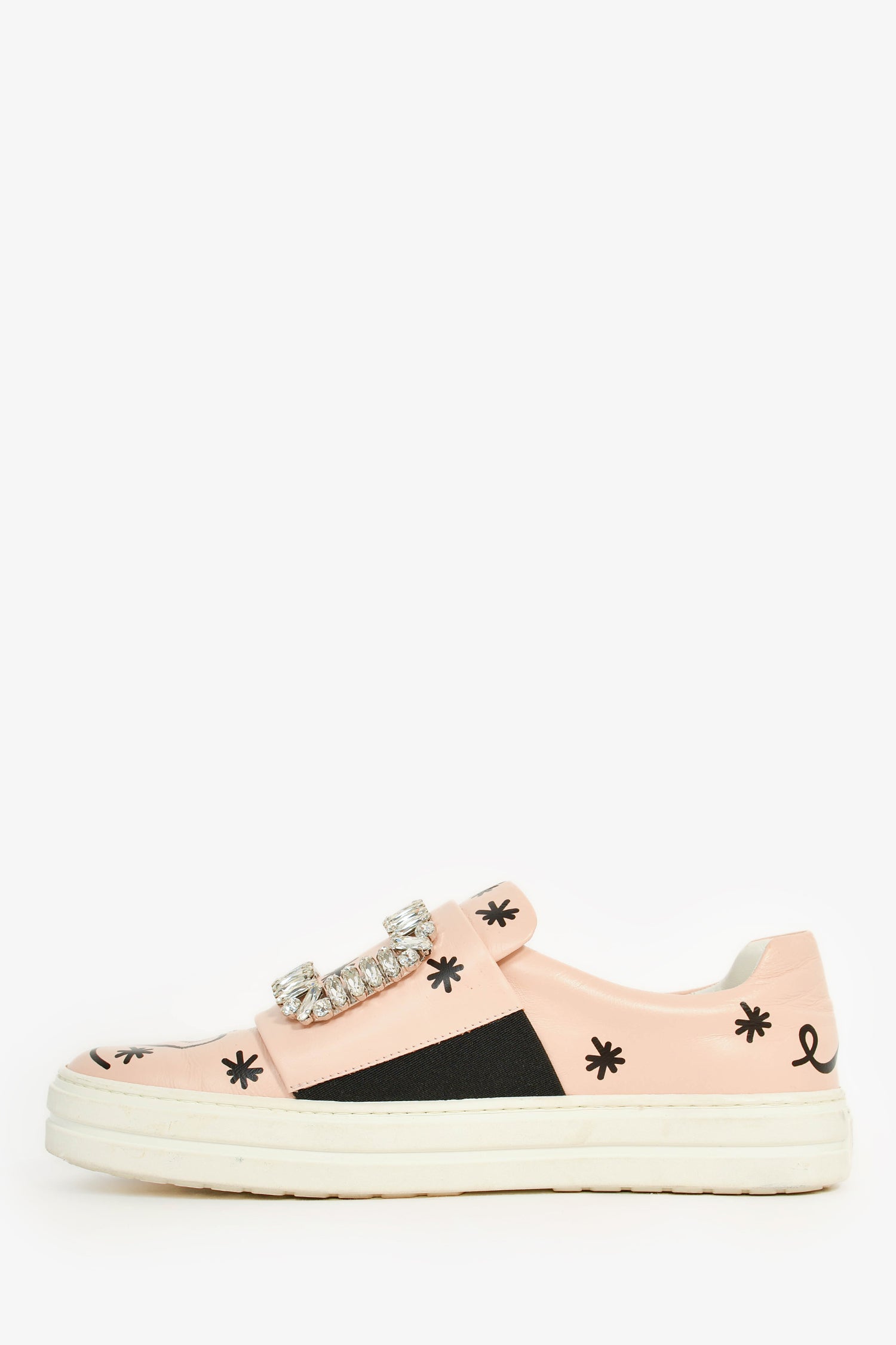 Refresh availabilityRoger Vivier Pink Leather Crystal Buckle Black Printed Sneakers. Rubber soles. Leather uppers. Leather insoles. Crystals. Tonal stitching.