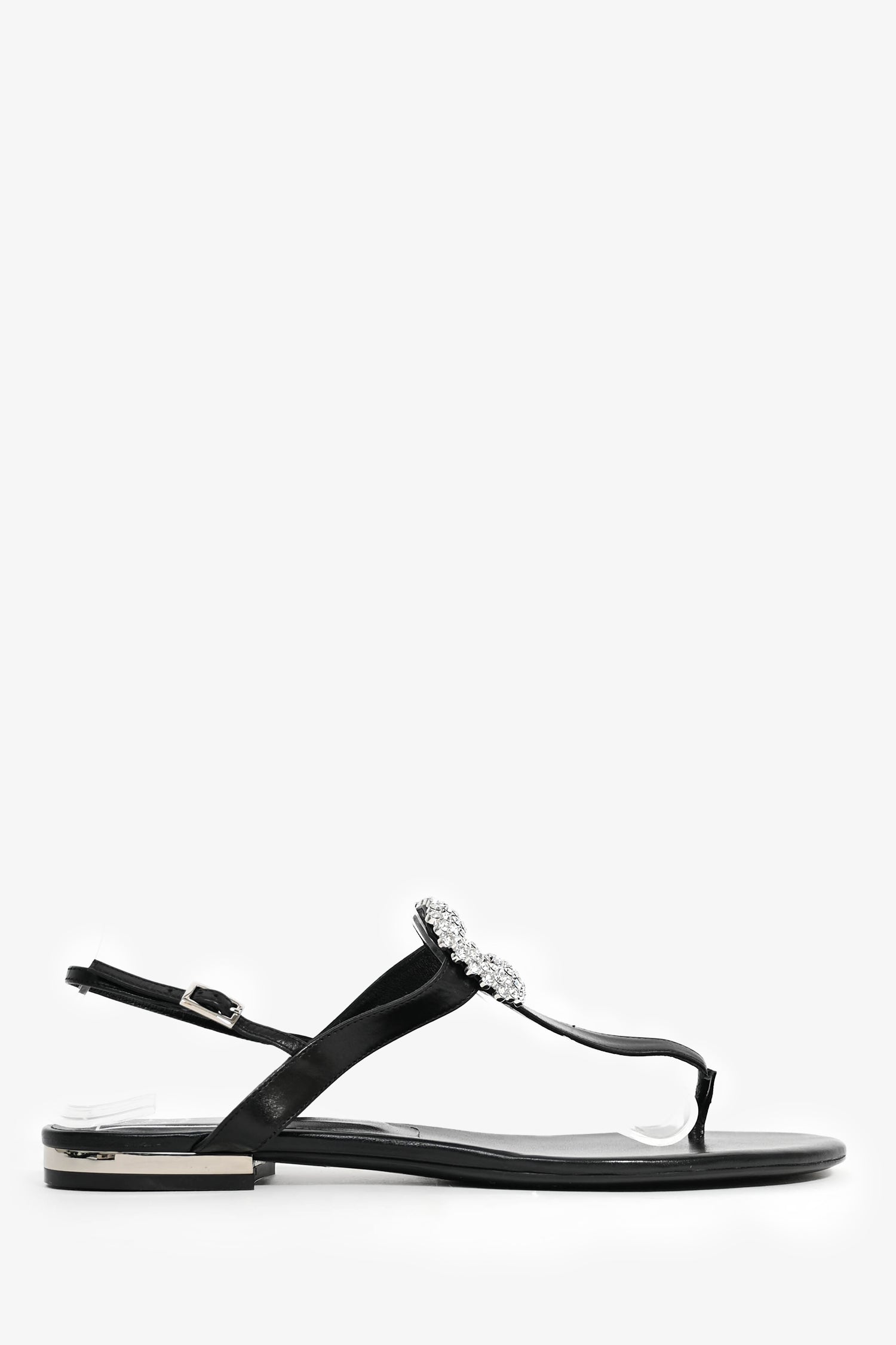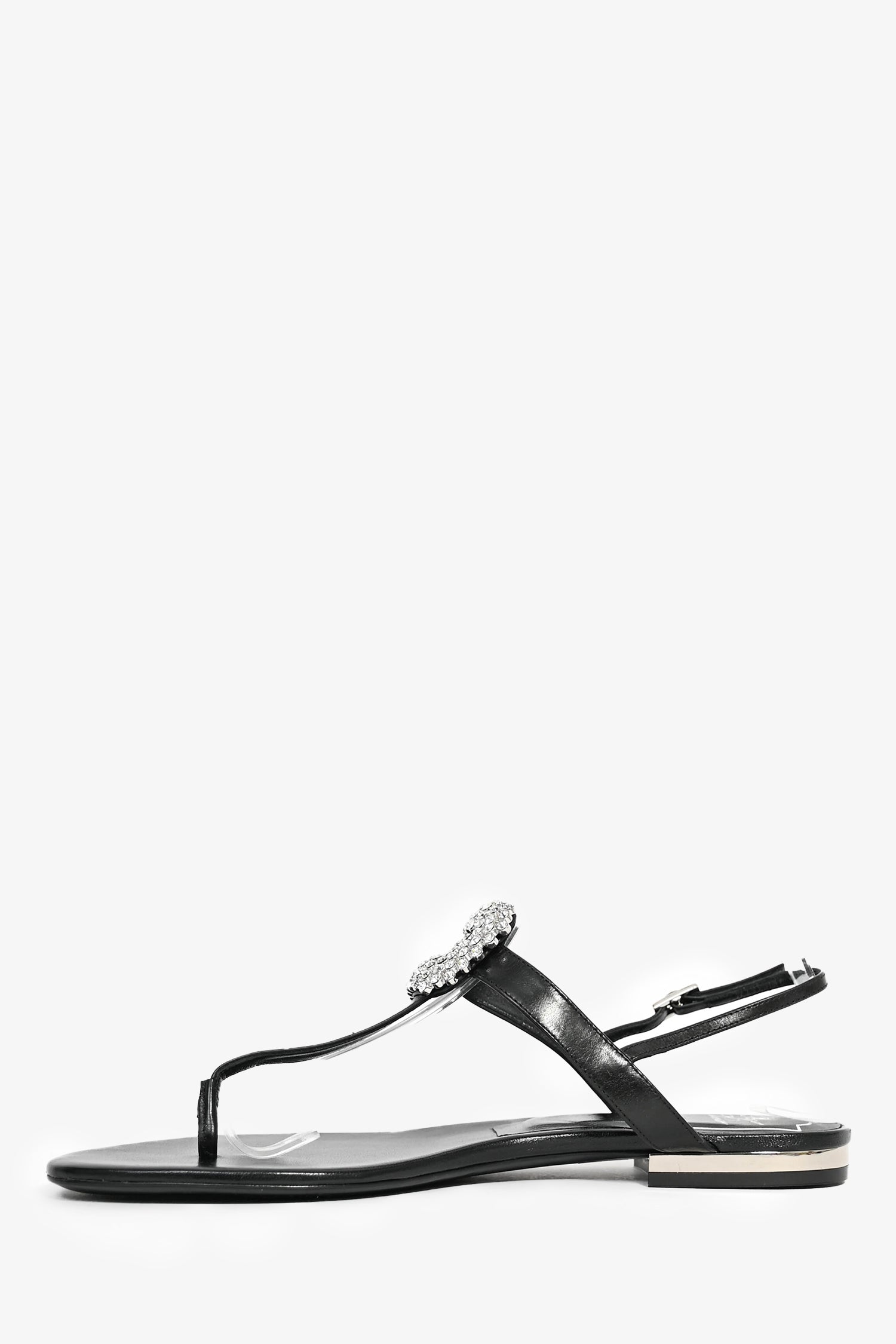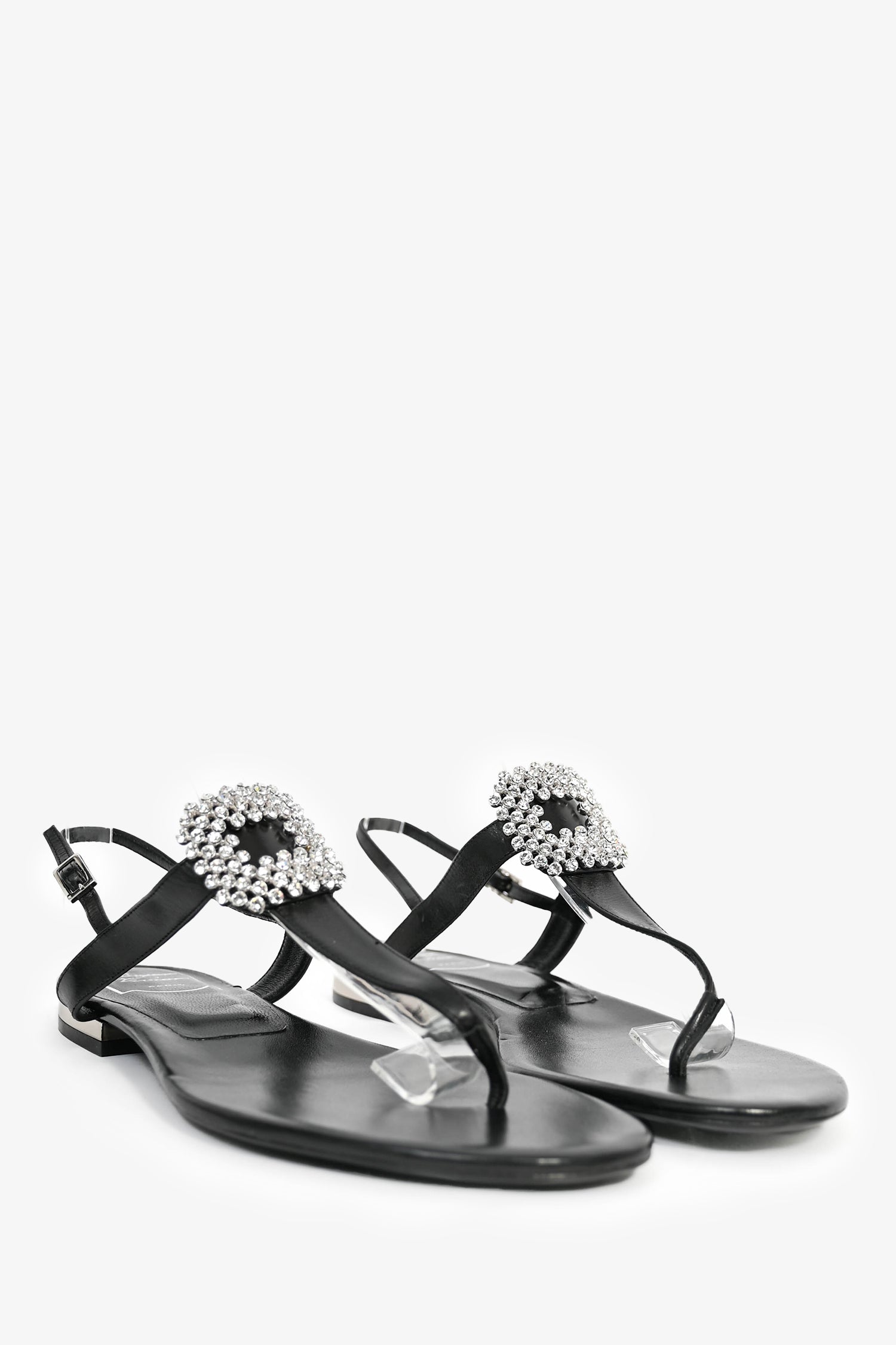 Refresh availabilityRoger Vivier Black Crystal Embellished Sandals. T-strap open-toe. Side buckle closure. Crystal details. Tonal stitching.