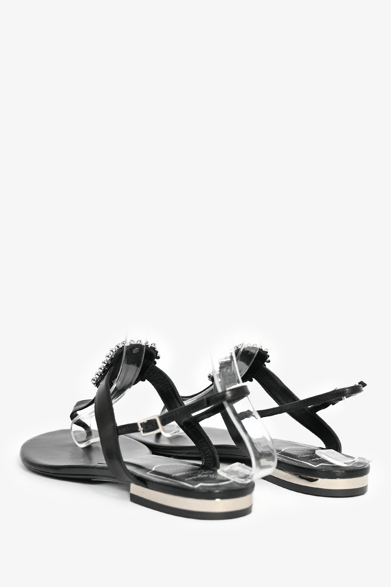 Roger Vivier Black Crystal Embellished Sandals Size 38.5
