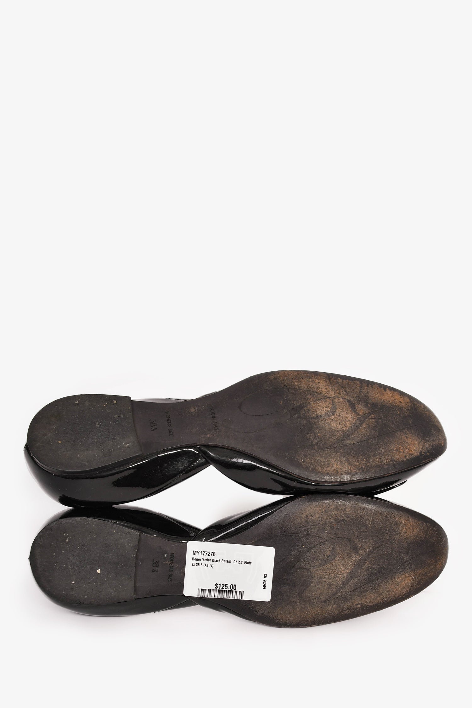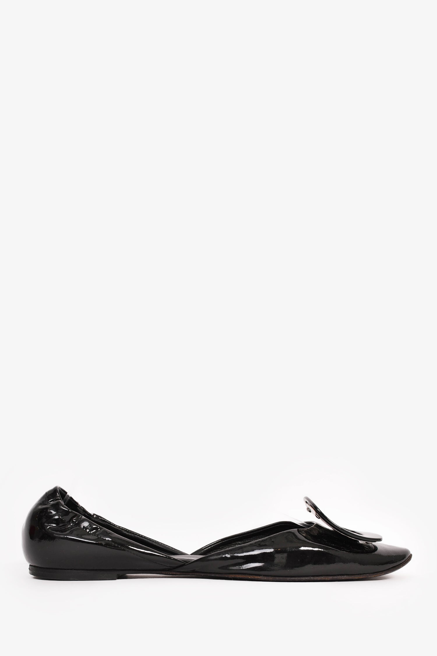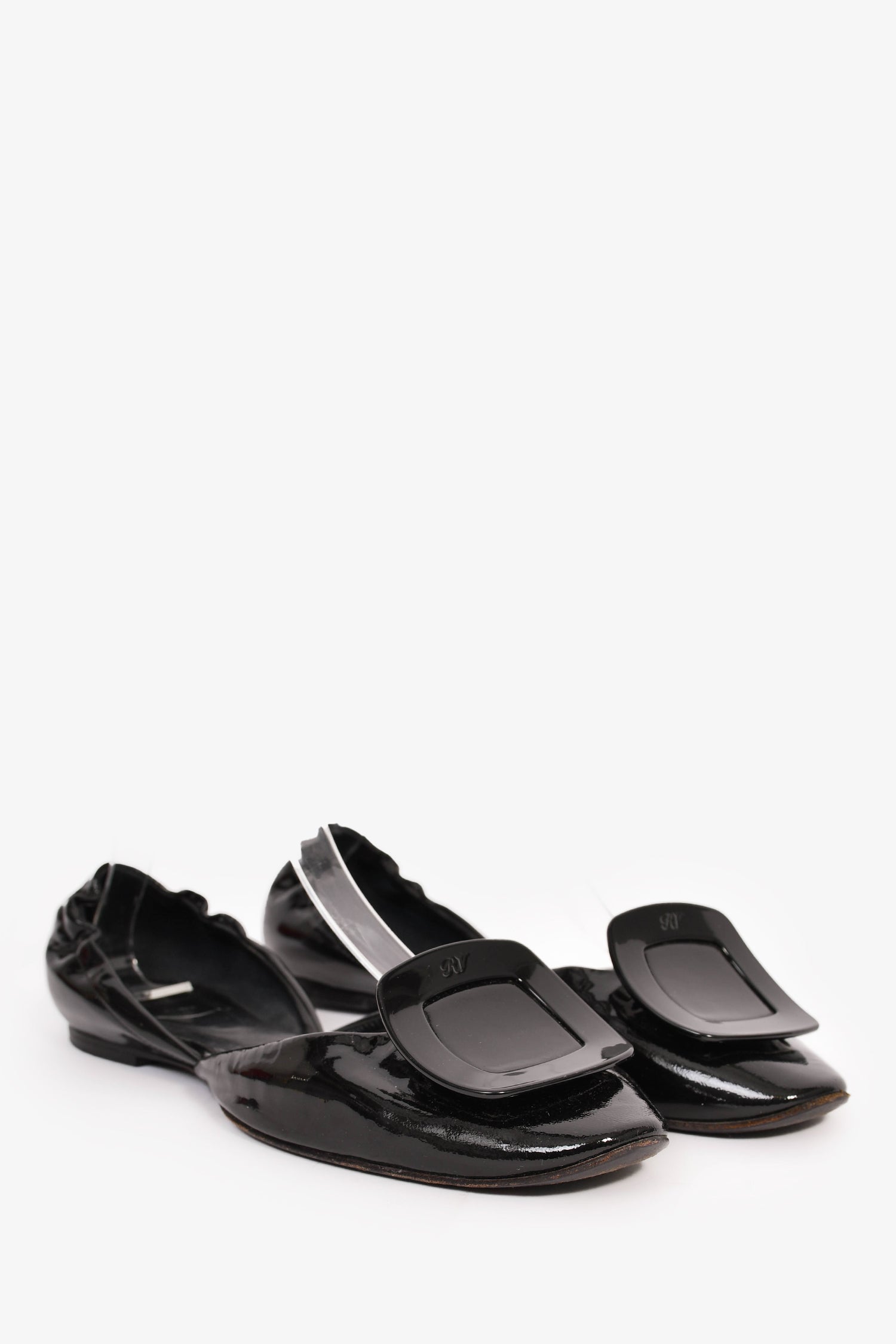 Refresh availabilityRoger Vivier Black Patent 'Chips' Flats. Slip-on. Round toe. Glossy finish.