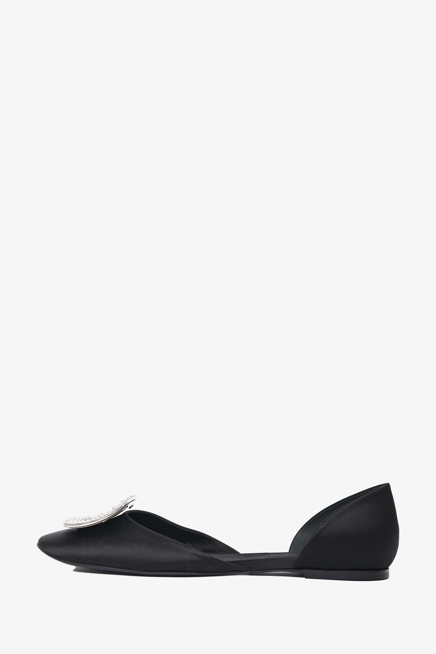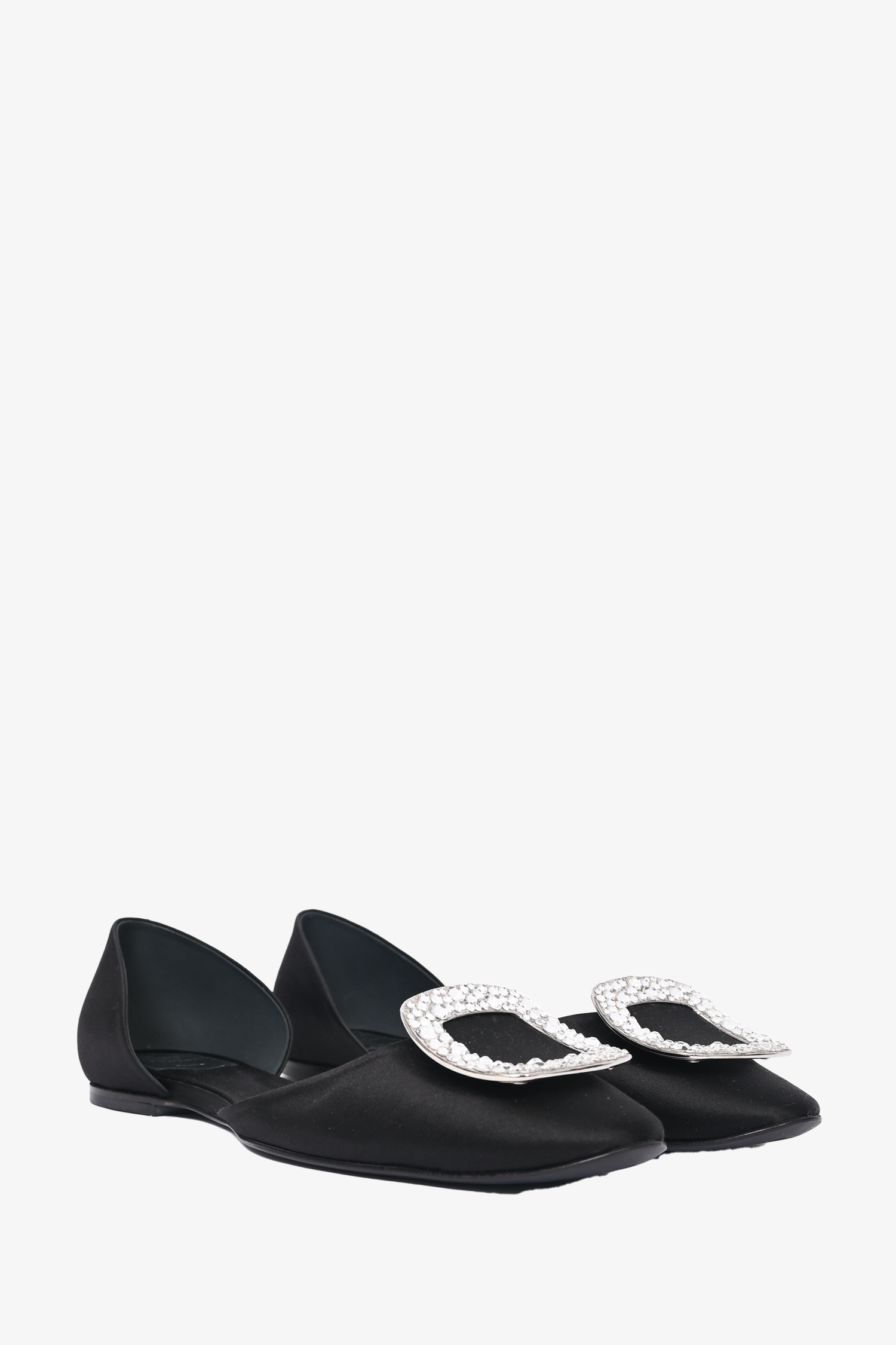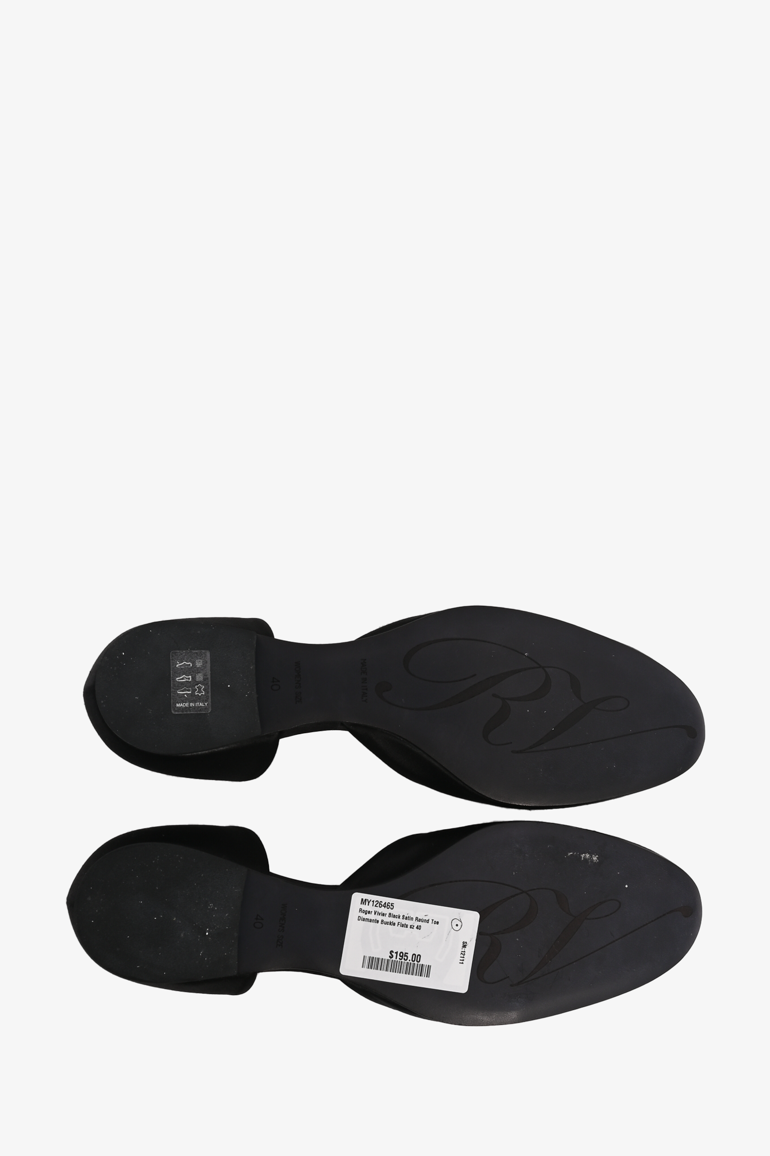 Refresh availabilityRoger Vivier Black Satin Round Toe Diamante Buckle Flats. Round toe. Slip-on. Tonal stitching.