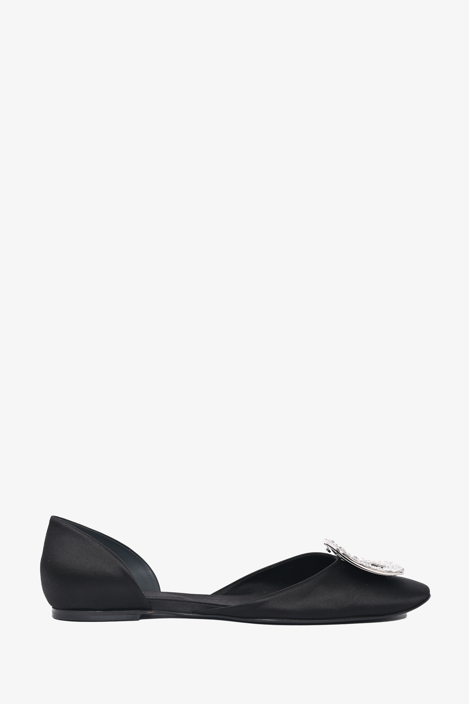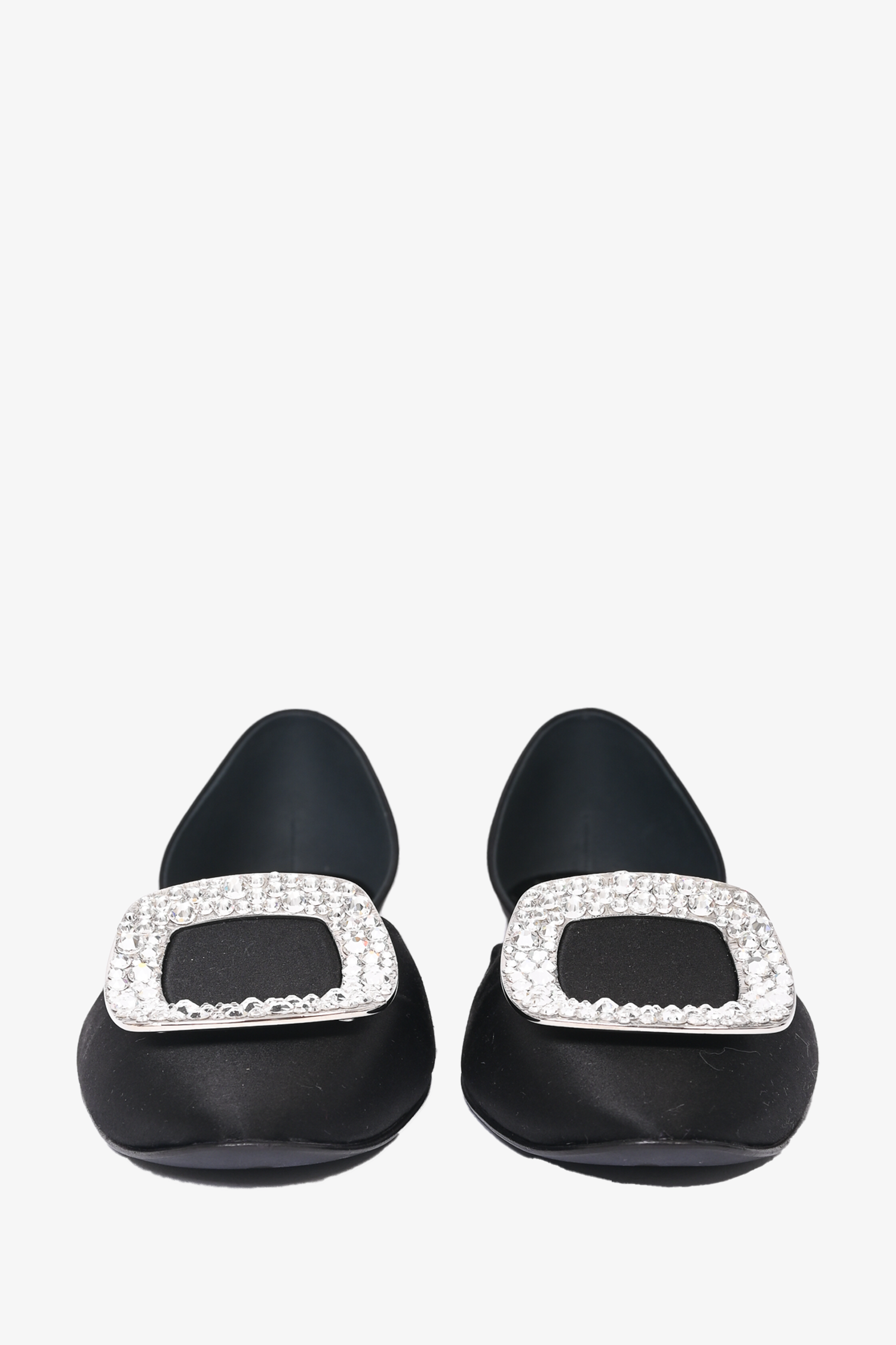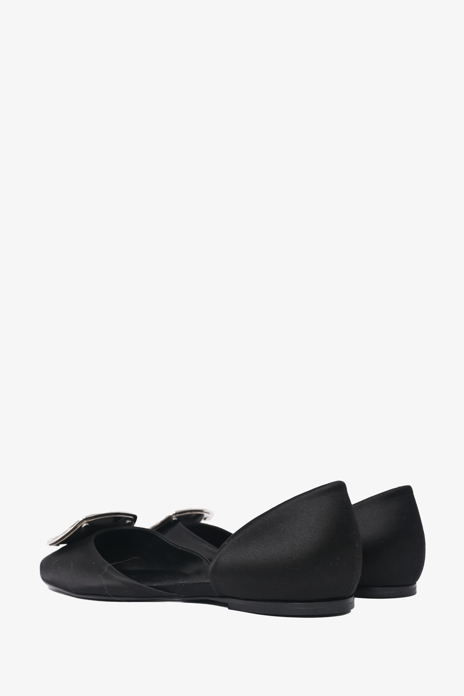 Refresh availabilityRoger Vivier Black Satin Round Toe Diamante Buckle Flats. Round toe. Slip-on. Tonal stitching.