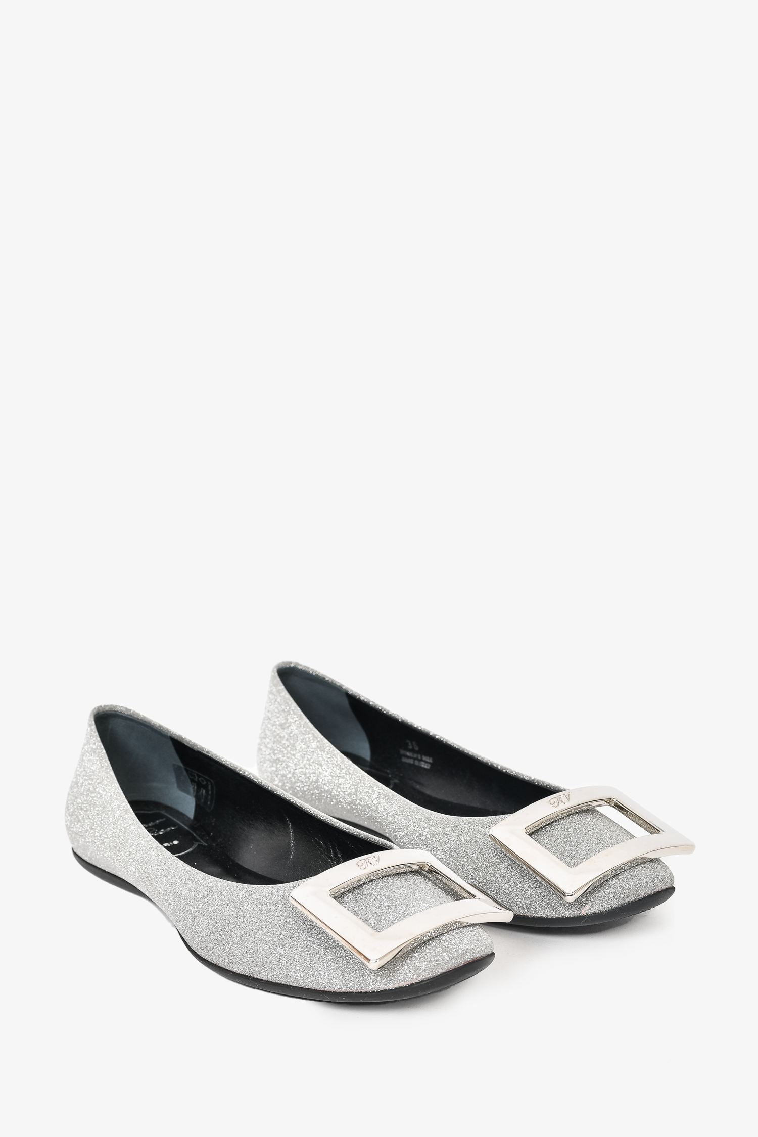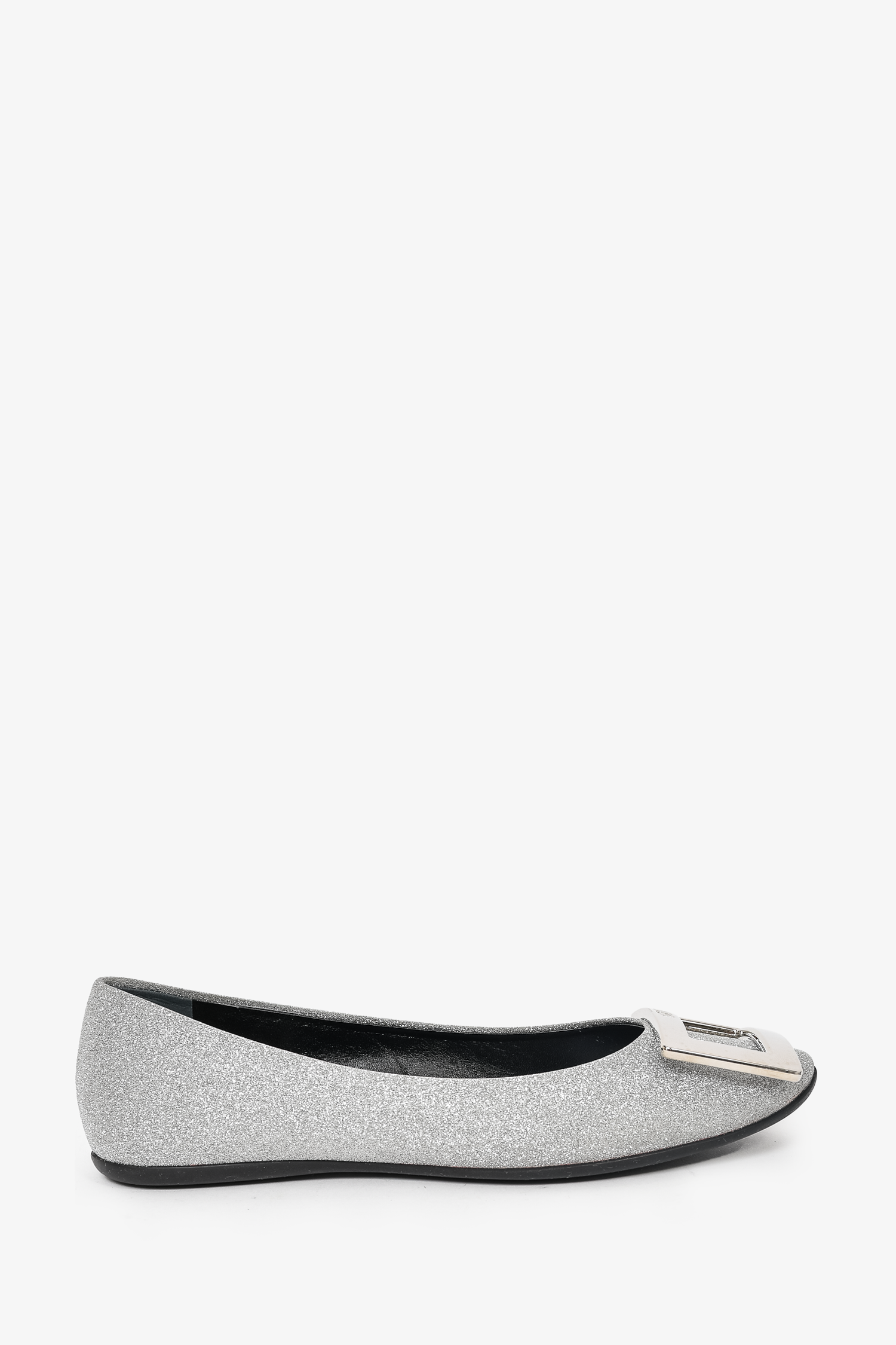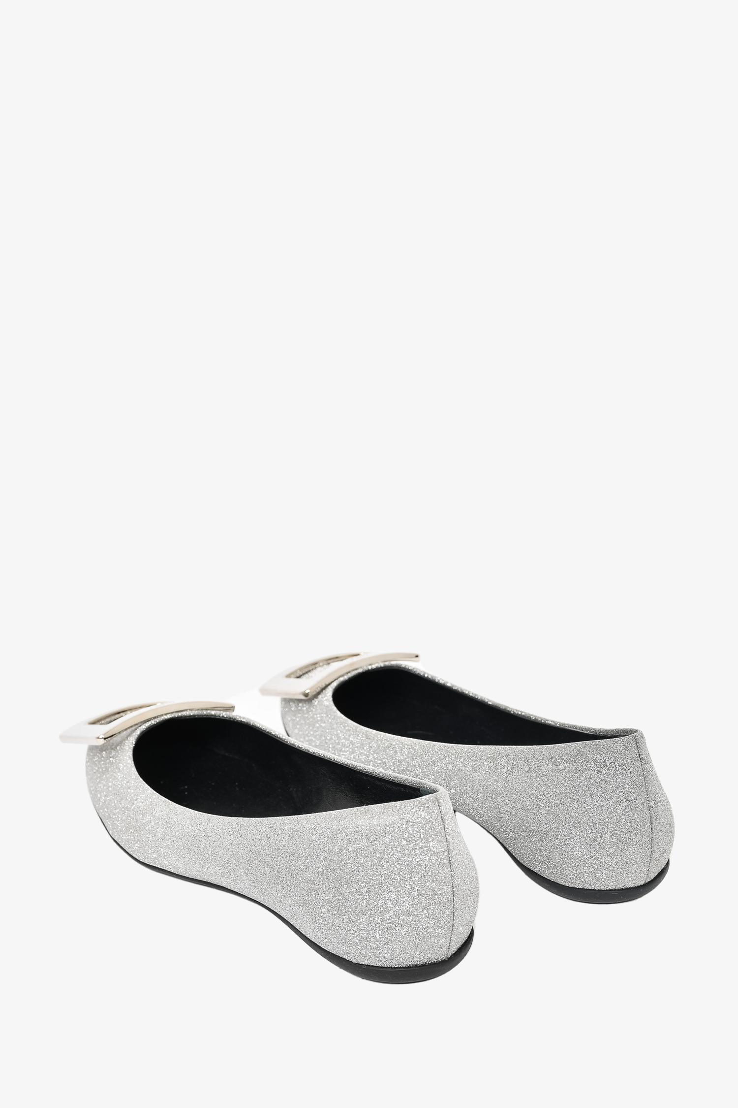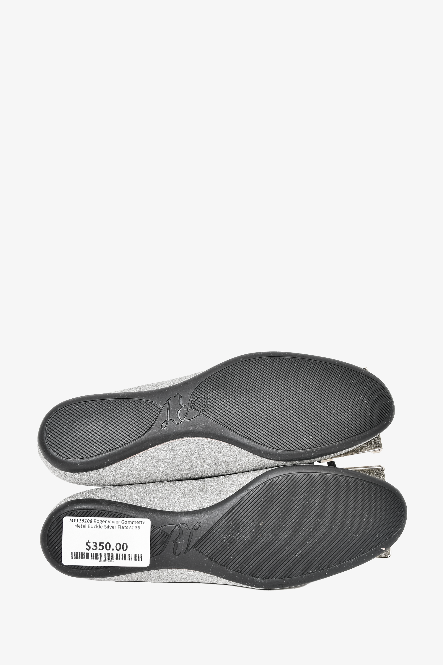 Roger Vivier Gommette Metal Buckle Silver Flats Size 36