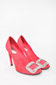 Roger Vivier Hot Pink Satin Crystal Buckle Heels sz 37