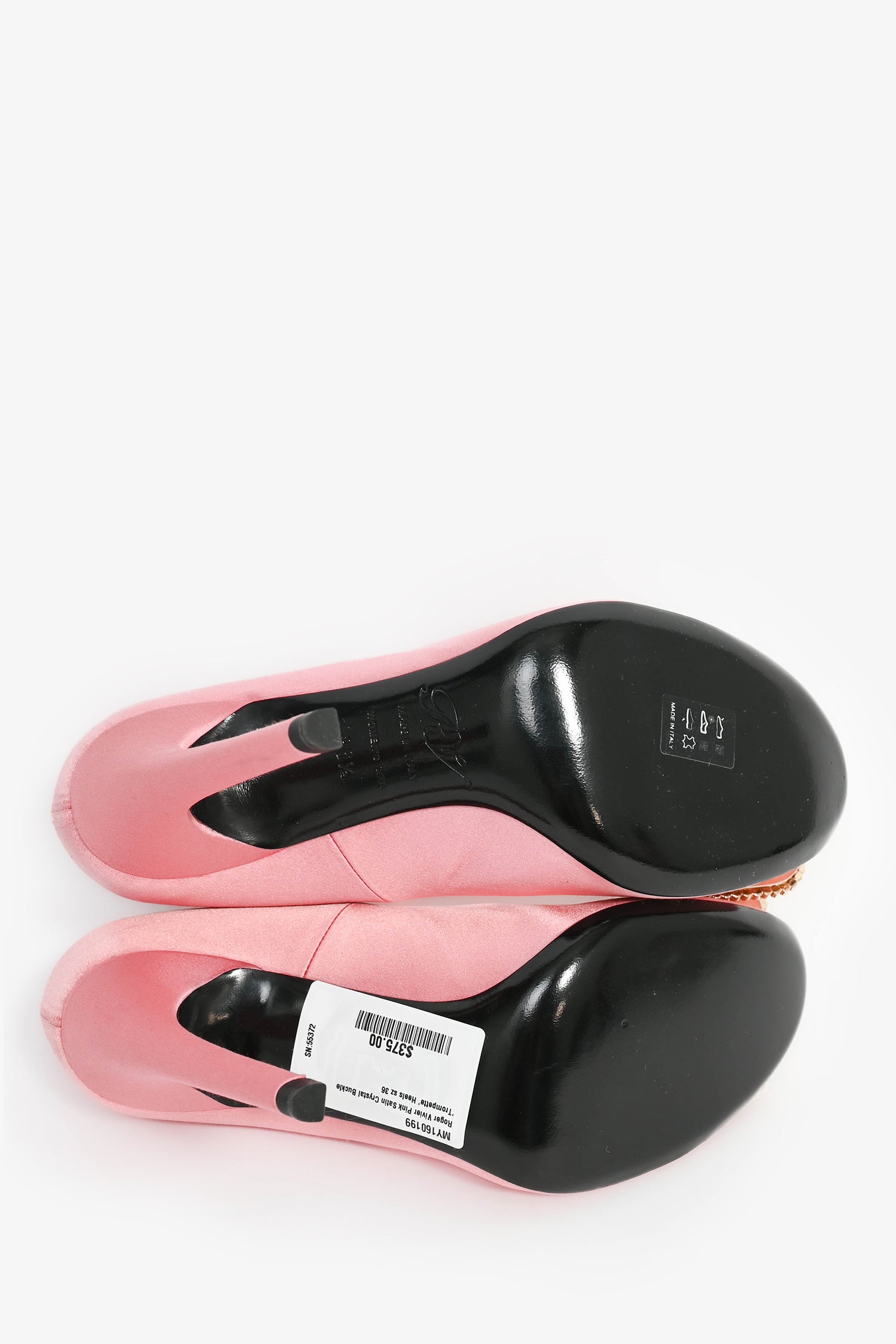 Roger Vivier Pink Satin Crystal Buckle 'Trompette' Heels Size 36