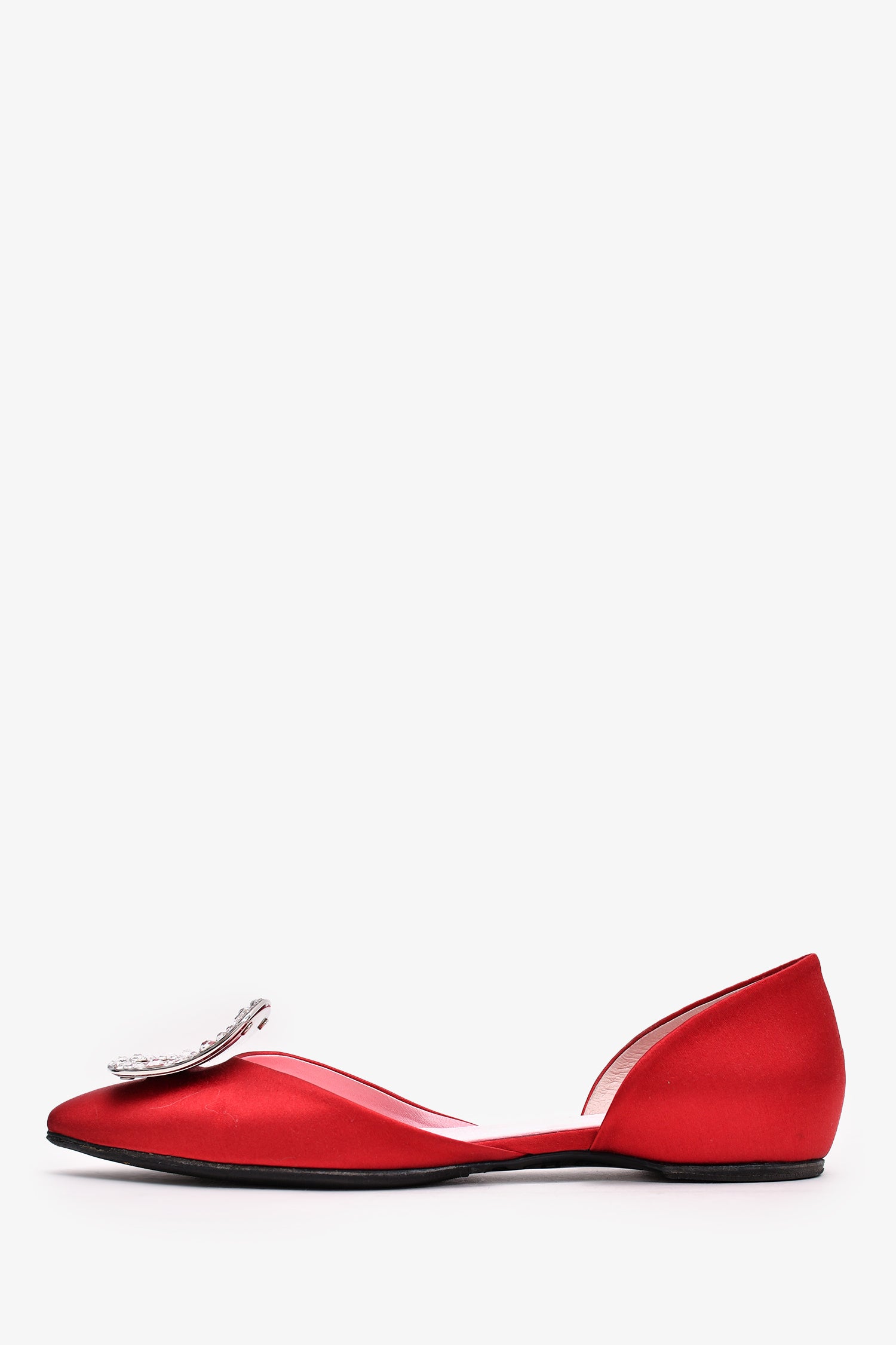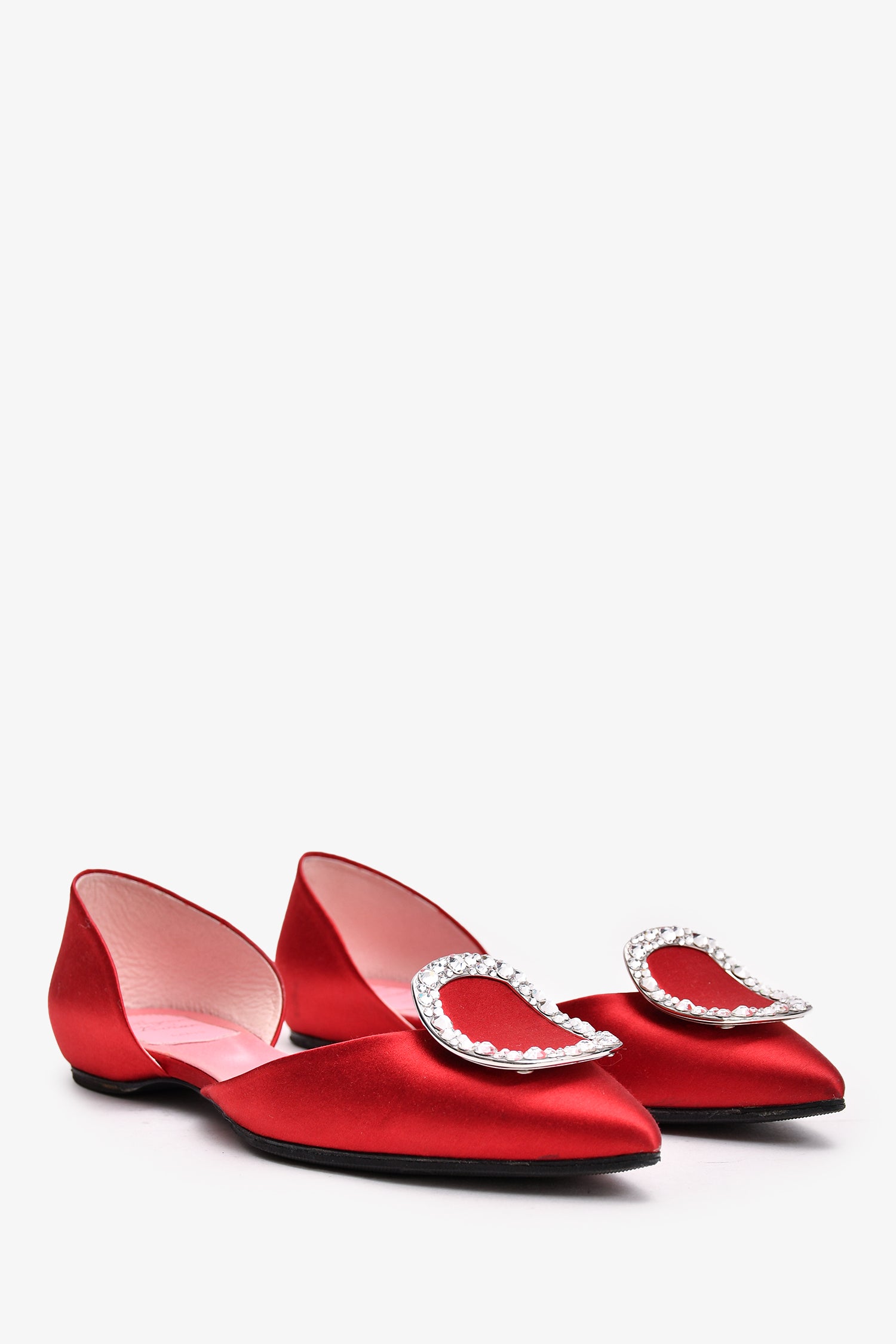 Refresh availabilityRoger Vivier Red Satin D'Orsay Flats. Slip-on. Pointed toe. Embellished buckle. Topy soles.