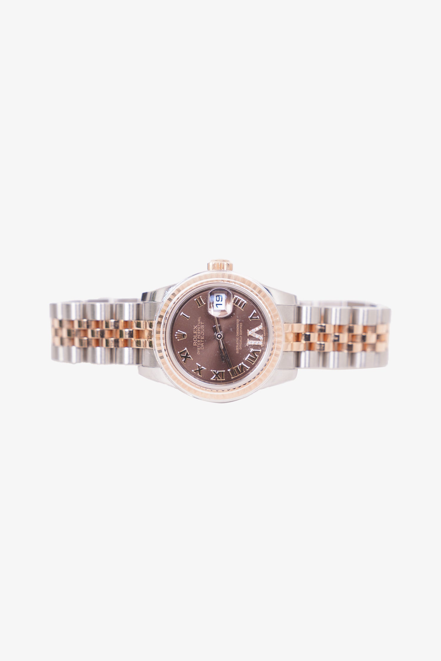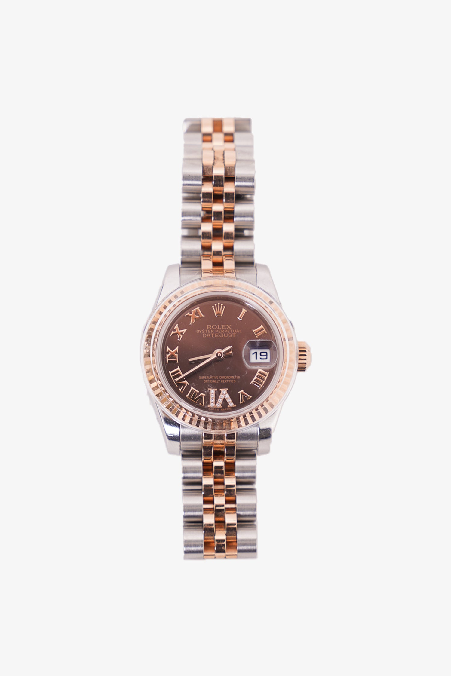 Rolex Steel/Rose Gold Brown Diamond Dial Oyster Perpetual Lady Datejust 26 Watch