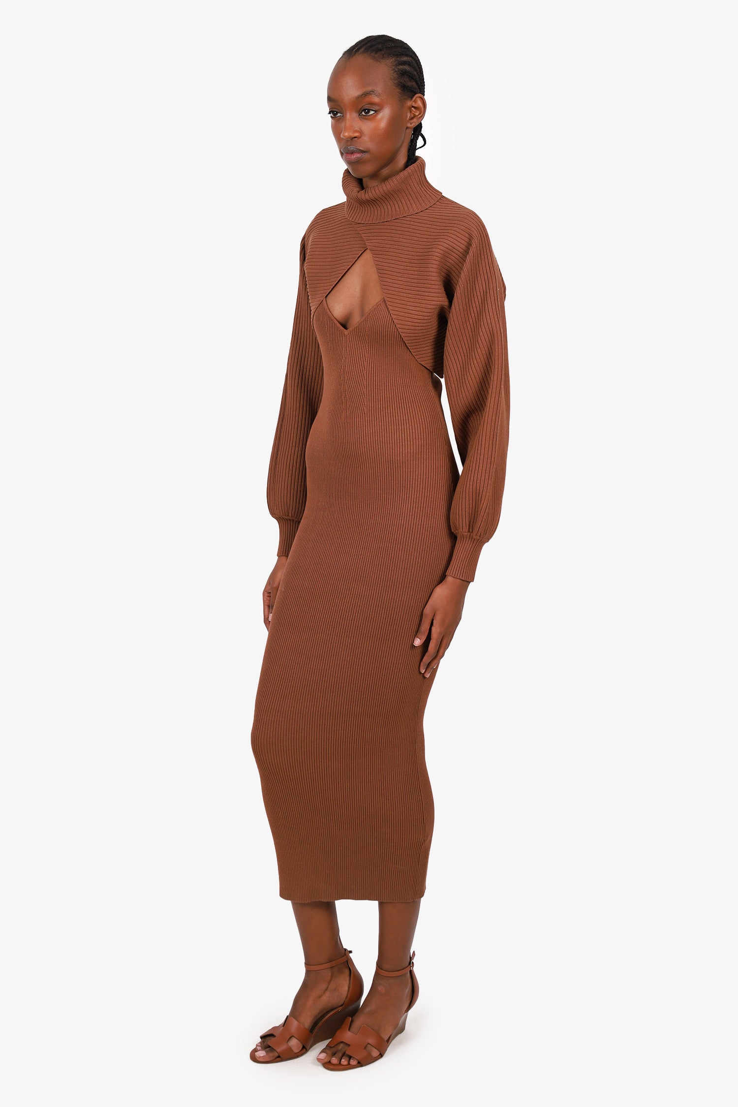 Ronny Kobo Brown Knit Dress with Long Sleeve Turtle Neck Cropped Sweater Size M