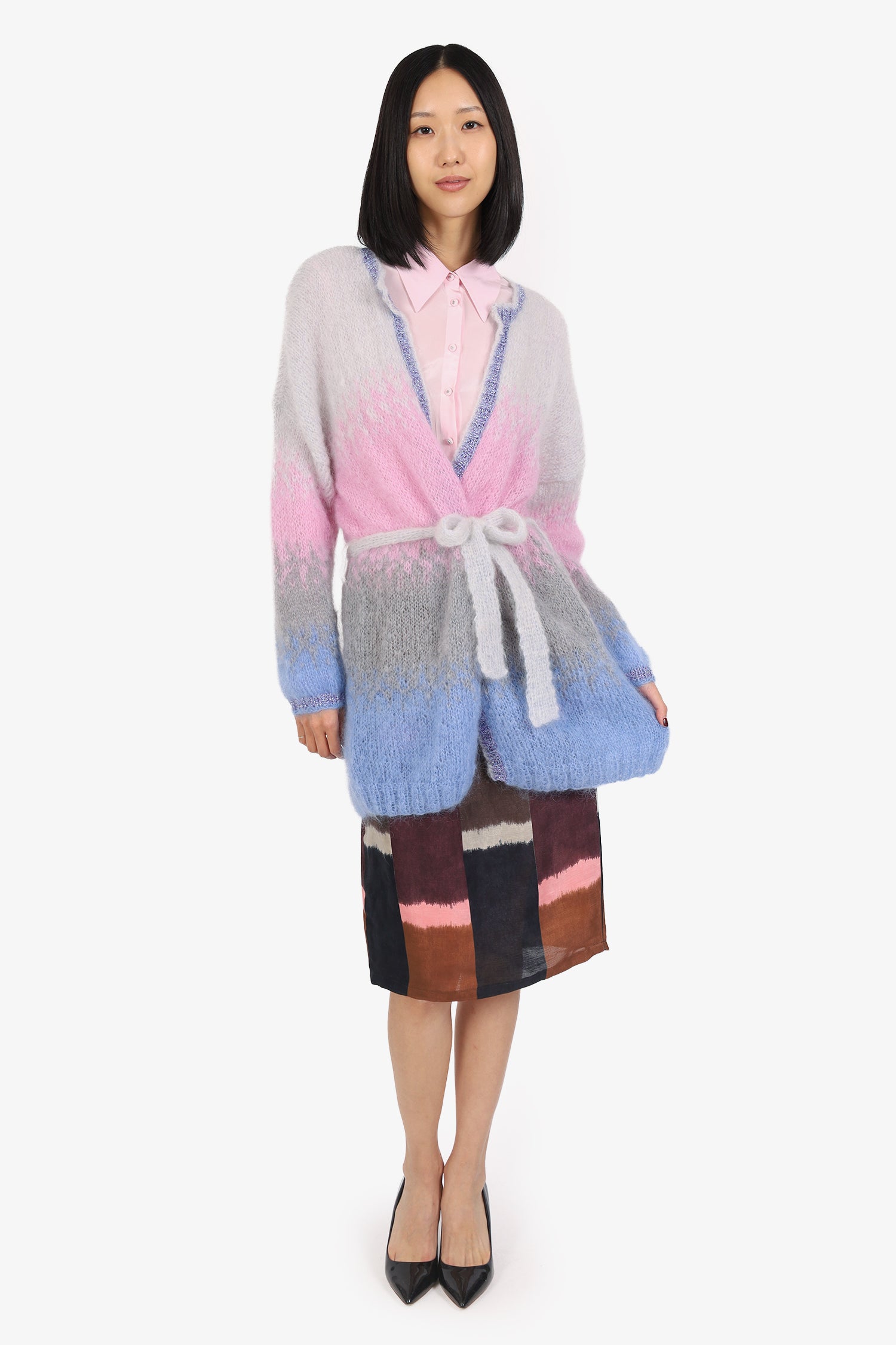 Rose Carmine Pastel Mohair Embellished Belted Cardigan Size S
