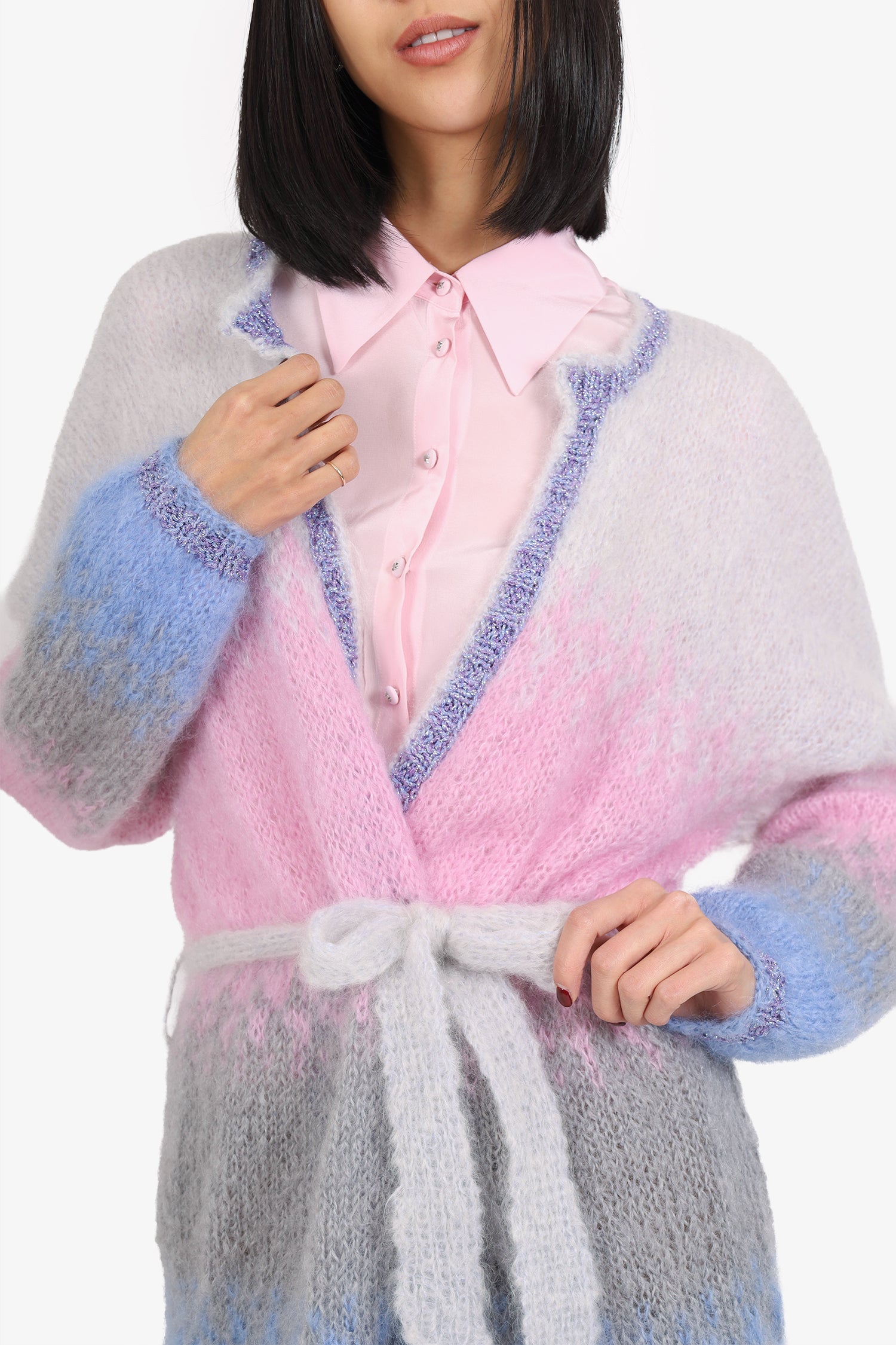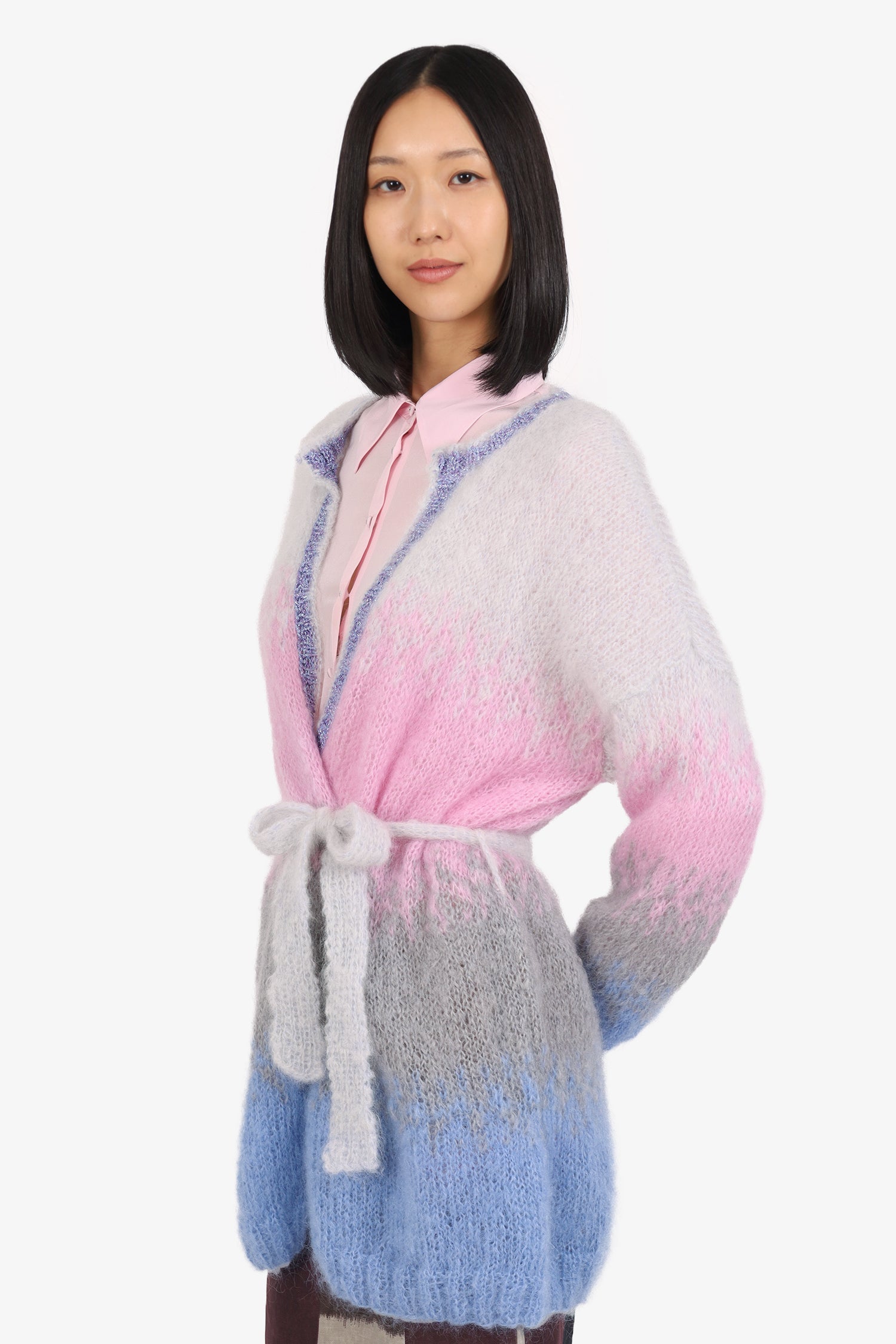 Refresh availabilityRose Carmine Pastel Mohair Embellished Belted Cardigan. Pull-on. V-neckline. Removable belt at waistline with tie-up closure. Tonal stitching.