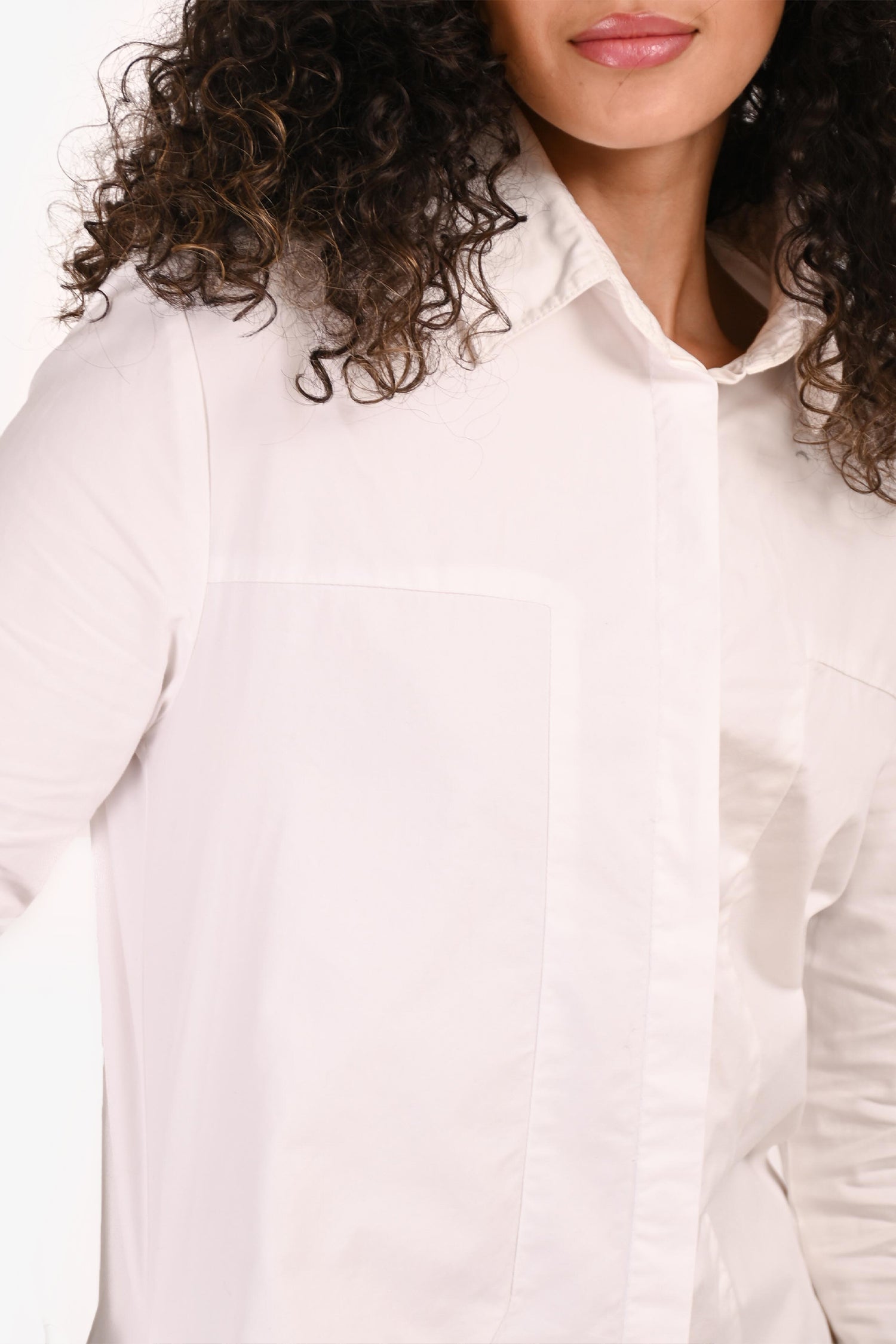Refresh availabilityRTA White Cotton Button-Down Shirt Dress. Slip-on. Pointed collar. Front button-up closure. Sleeve cuffs with button-up closure. 2 exterior slip pockets. Raw bottom hem. Tonal stitching.