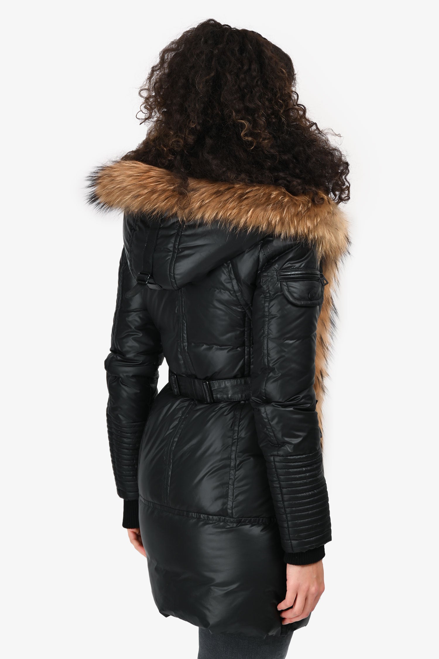 Rudsak Black Down Midi Raccoon Fur Trimmed Jacket Size XS