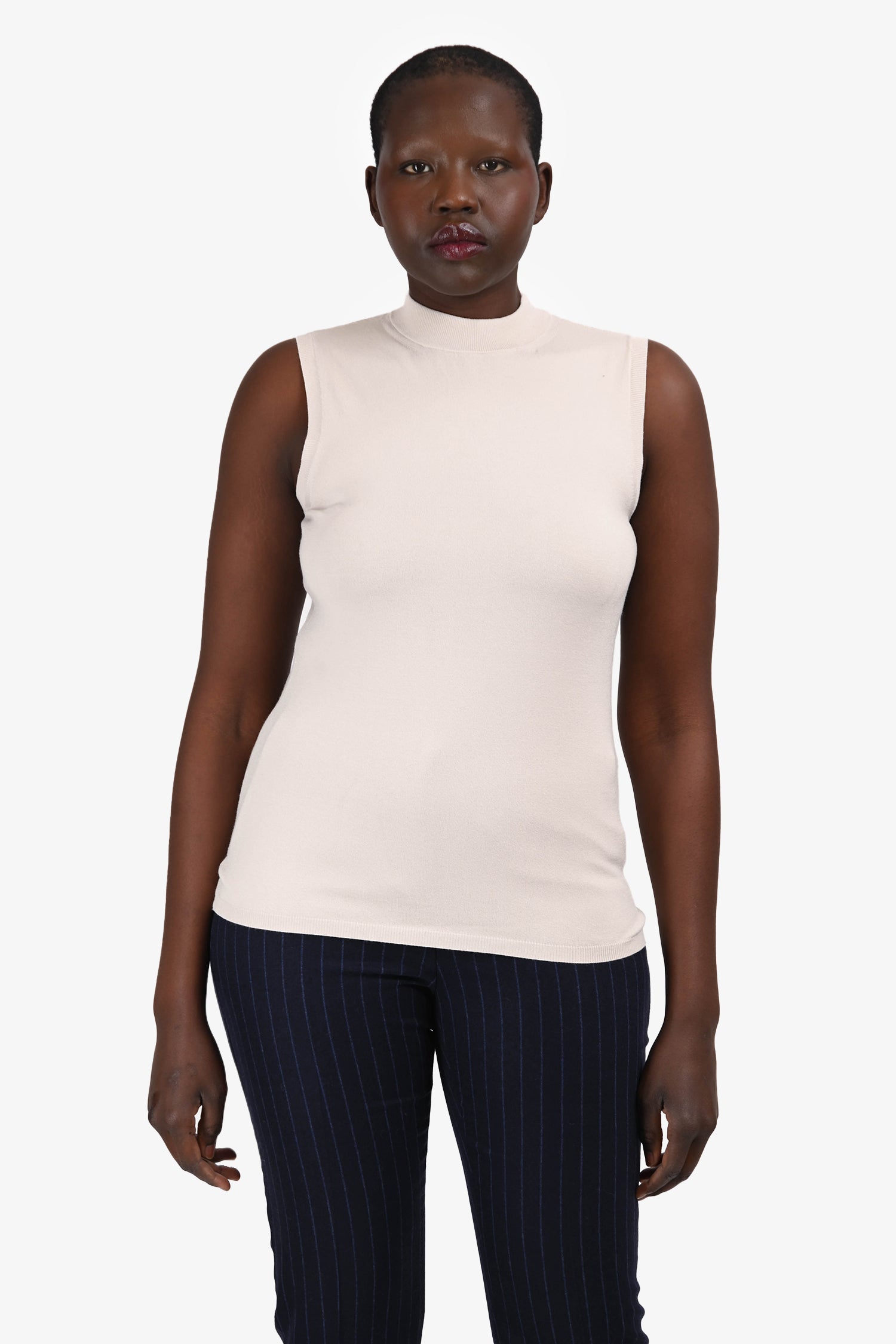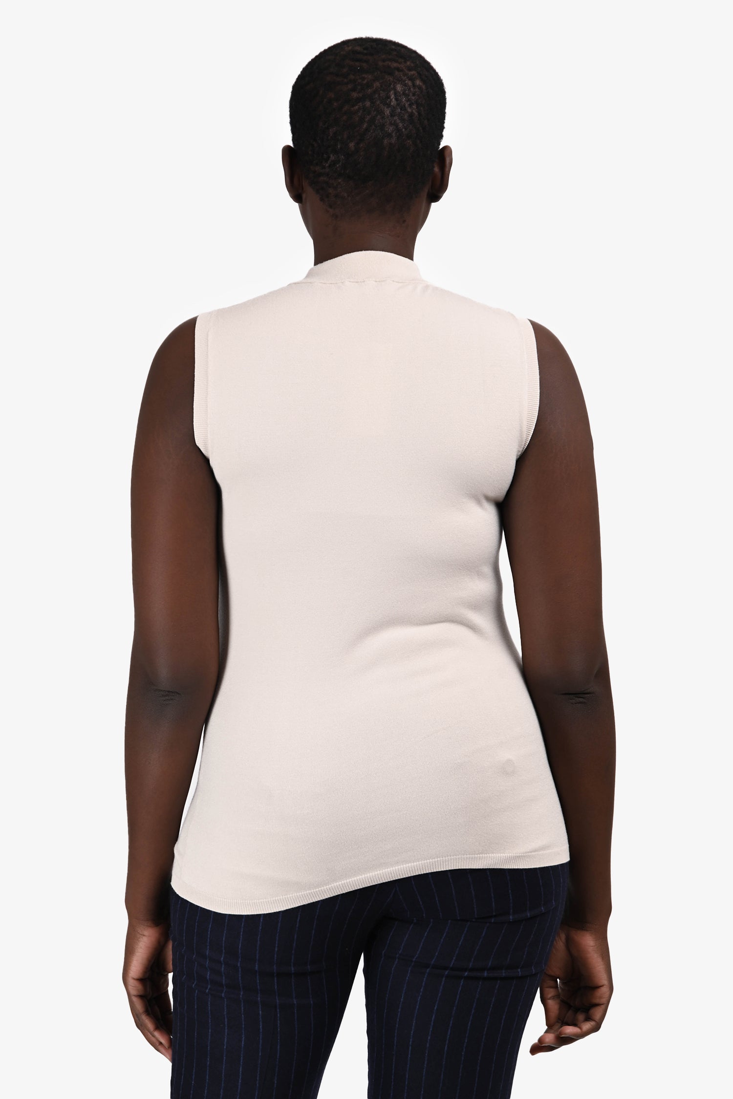 Refresh availability‘S Max Mara Beige Mock Neck Sleeveless Top. Slip-on. Mock neckline. Ribbed collar, armholes, and hem. Tonal stitching.