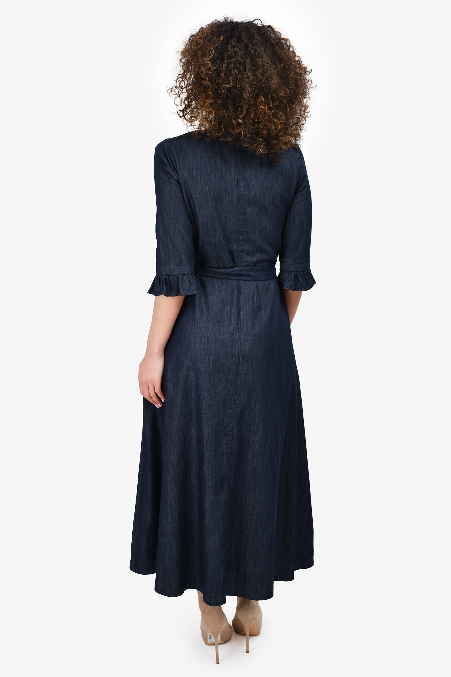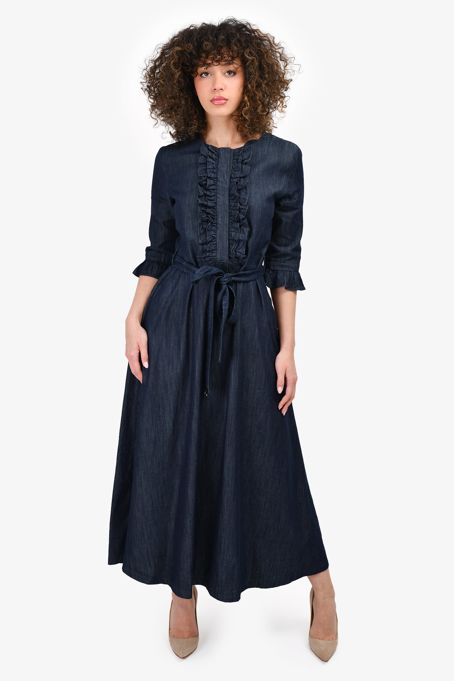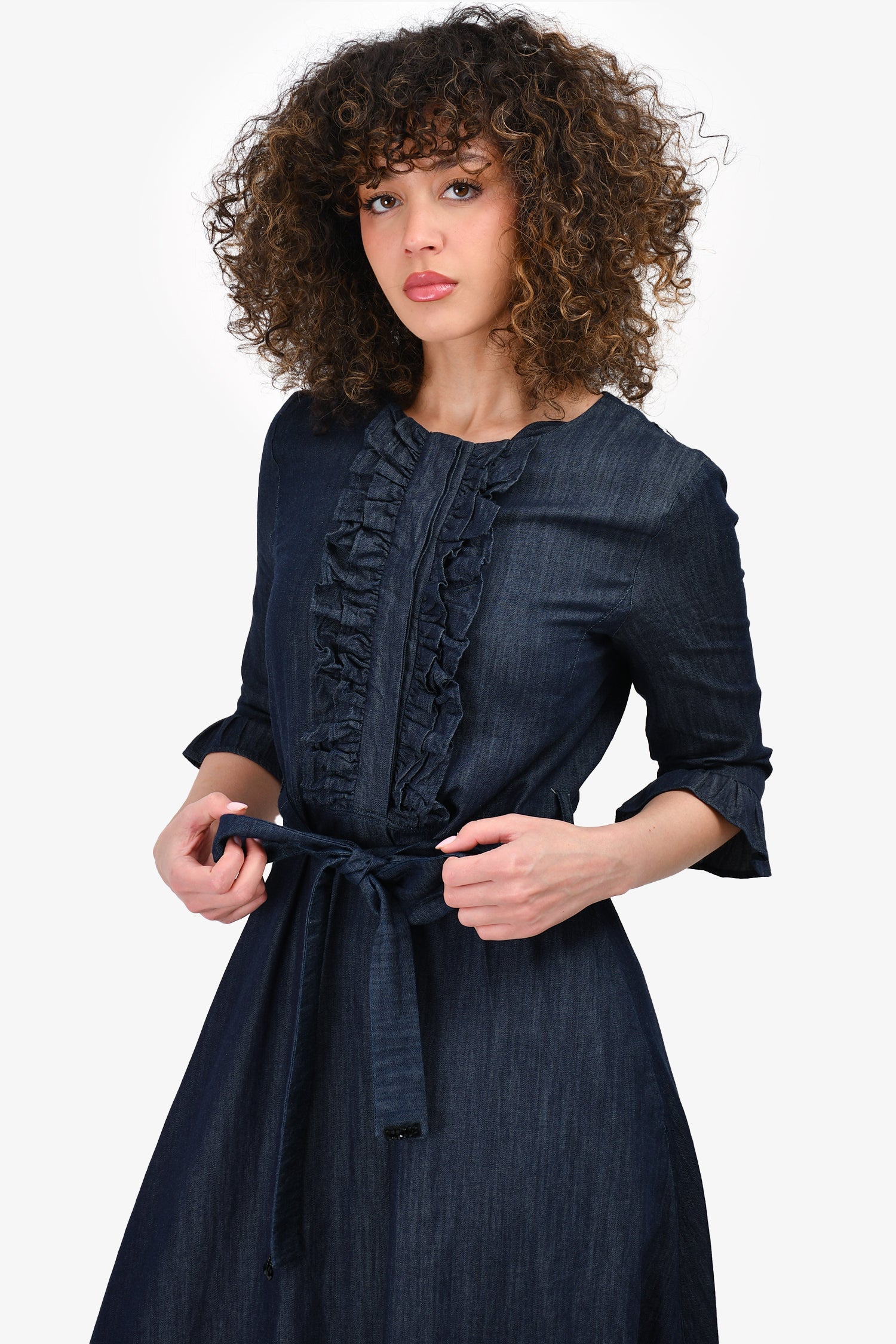 'S Max Mara Blue Denim Ruffle Front Dress Size 4