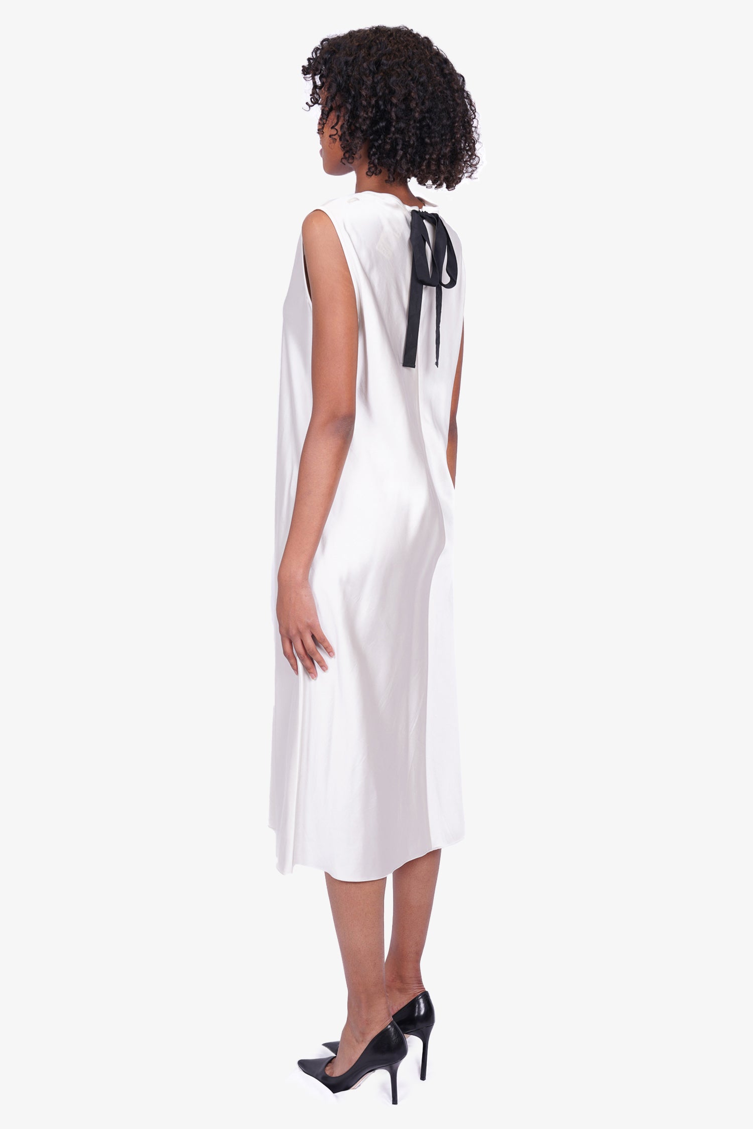 'S Max Mara White Sleeveless Maxi Dress. Back zip closure with ribbon tie-up. Round neck. Unlined. Tonal Stitching.