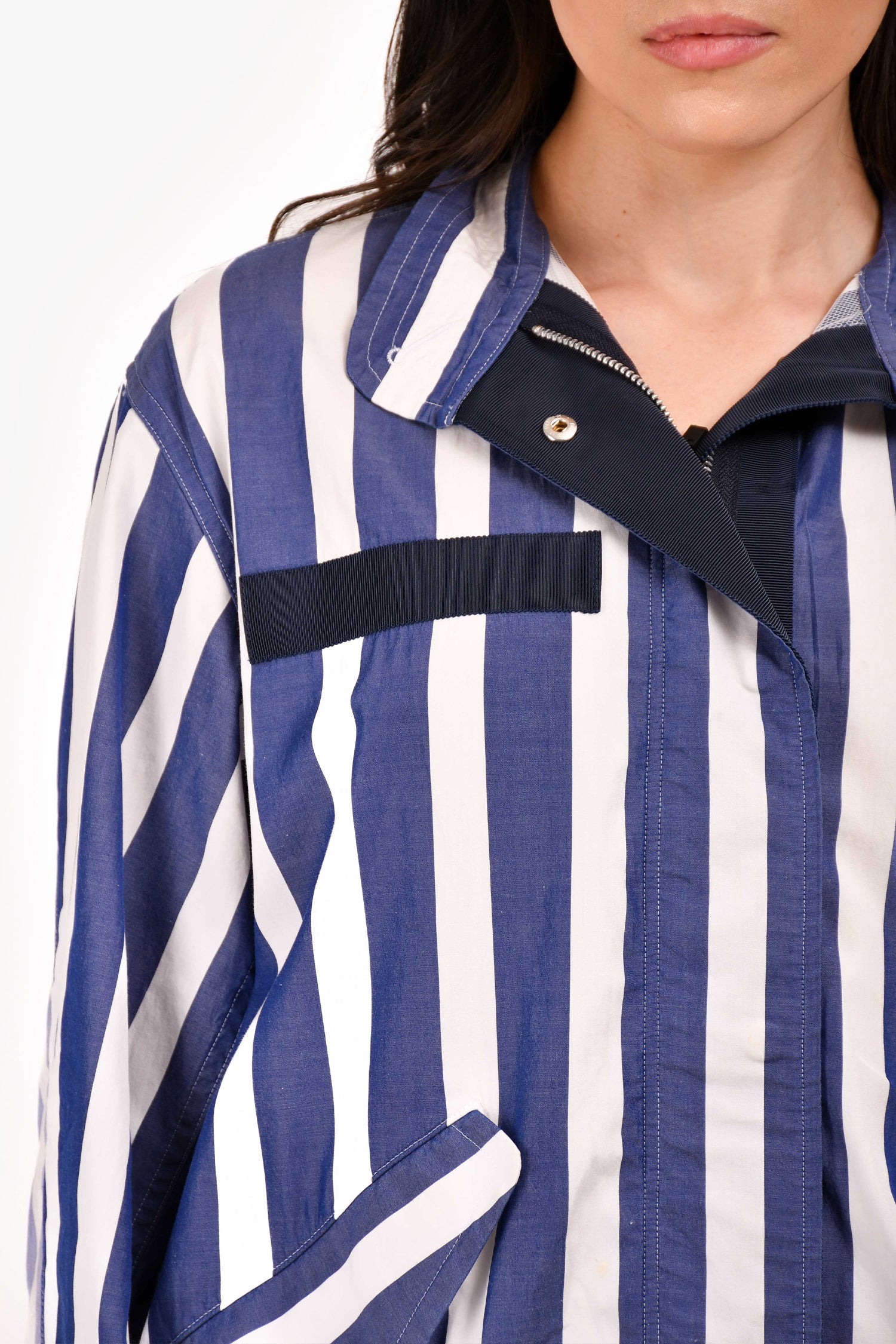Sacai 2017 White/Blue Striped Cotton/Silk Shirt Dress with Drawstring Waist Size 2