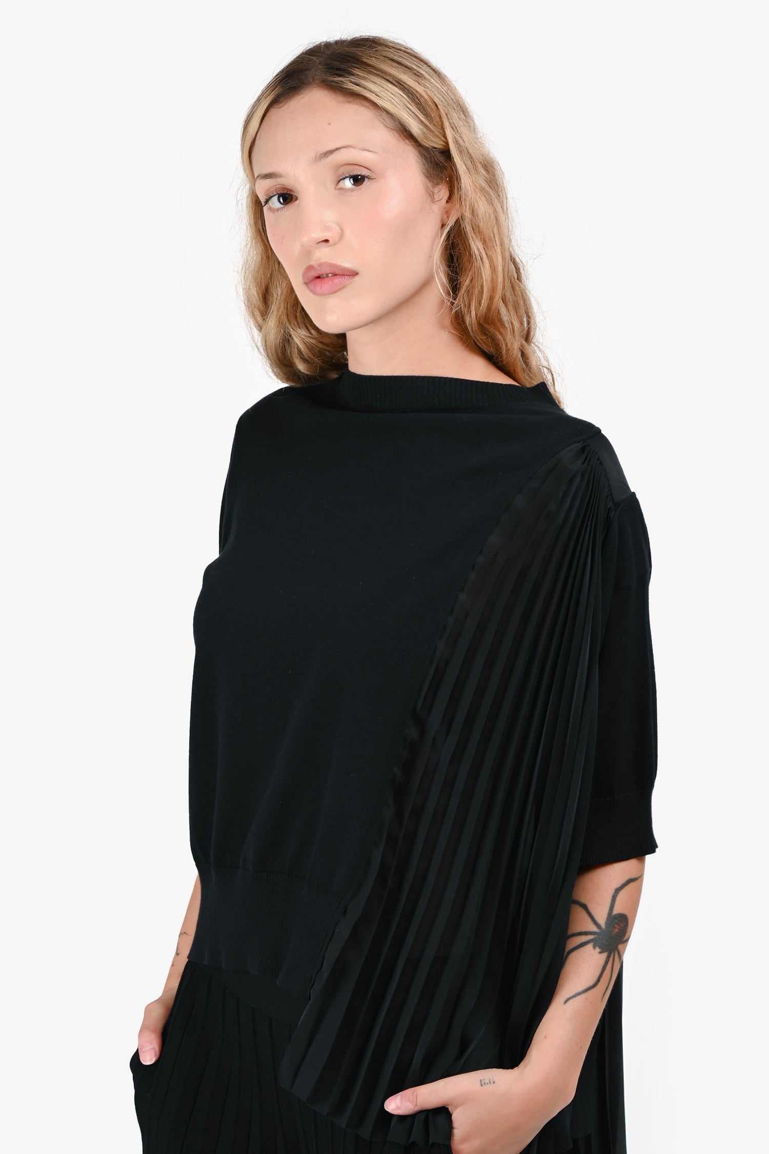 Refresh availabilitySacai Black Pleated Asymmetrical Top. Round neck. Pull-on.