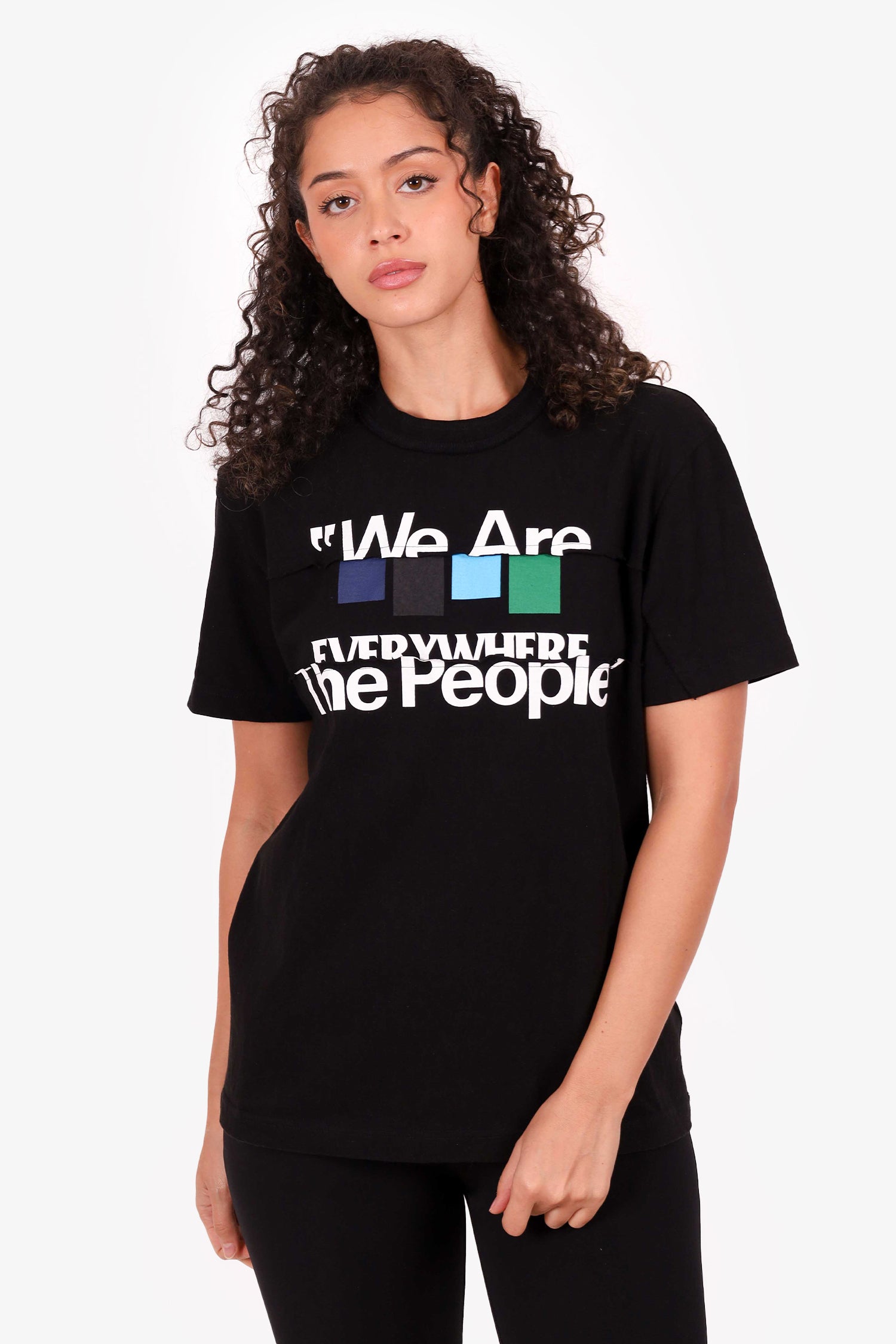 Refresh availabilitySacai Black 'We are everywhere the people' T-Shirt. Pull-on. Front printed graphic. Tonal stitching.