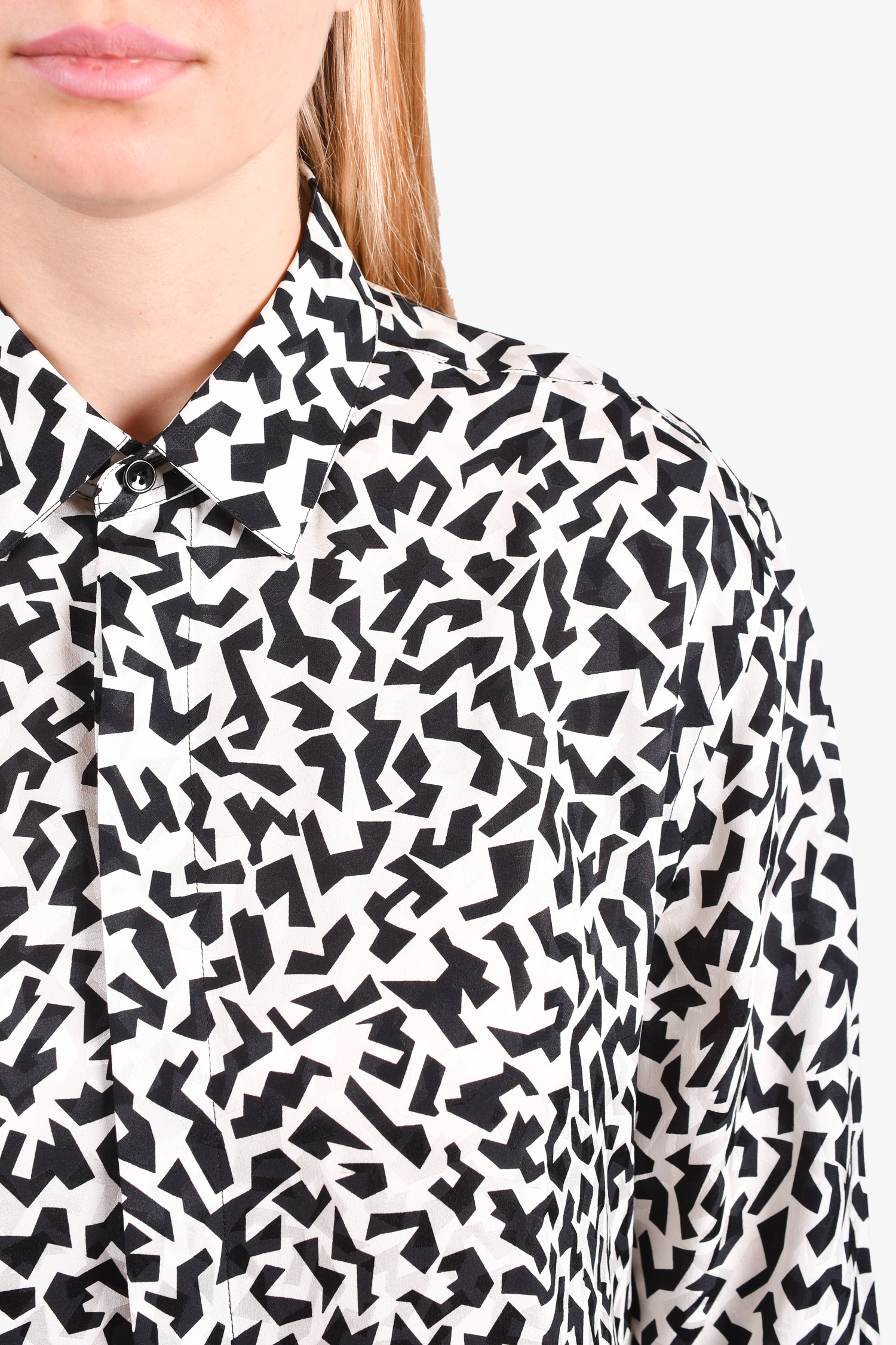 Saint Laurent 2021 White/Black Silk Geometric Print Button Down Shirt Size 38