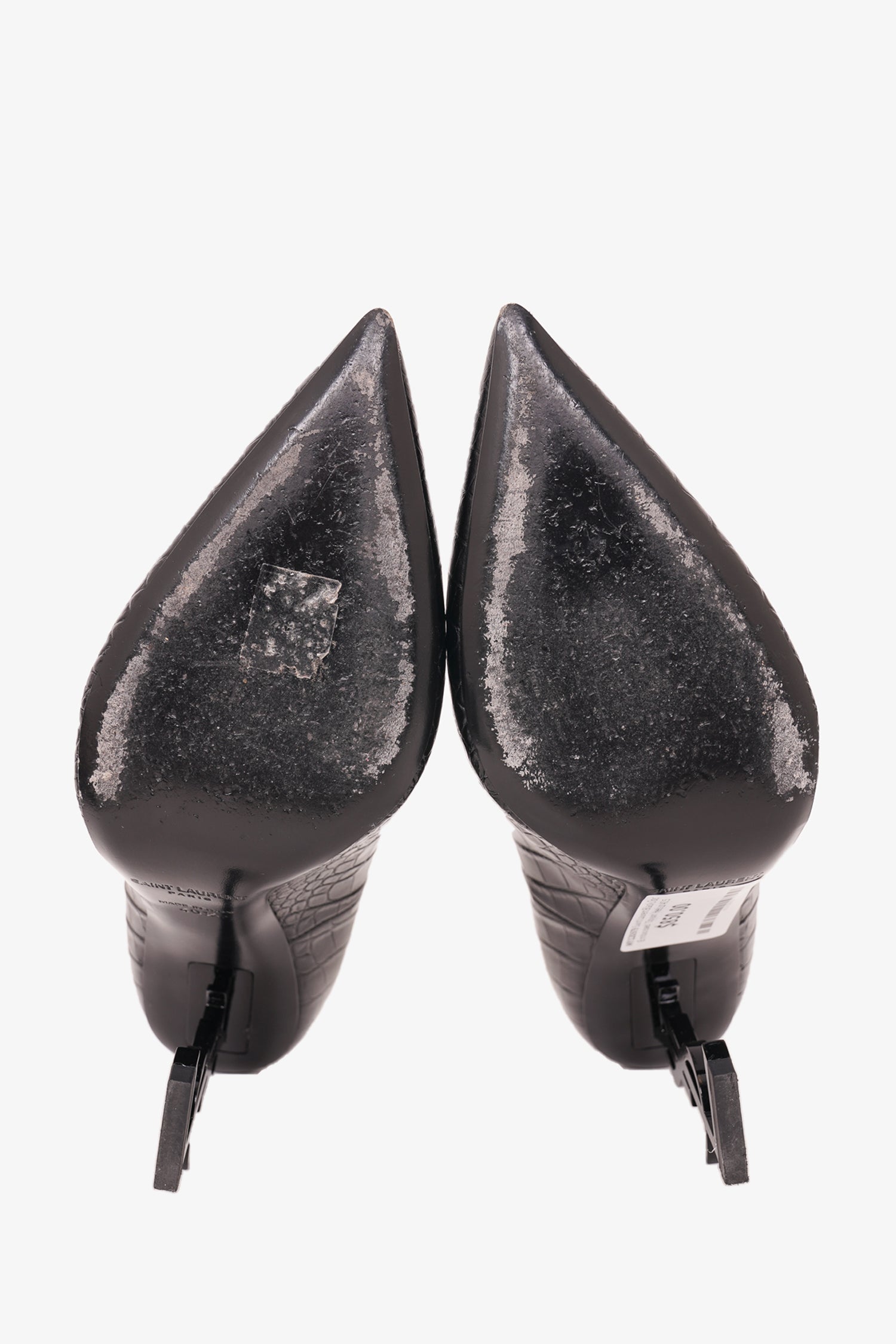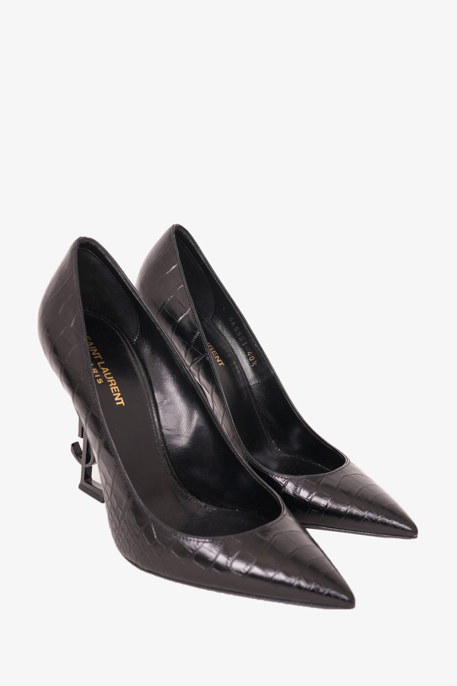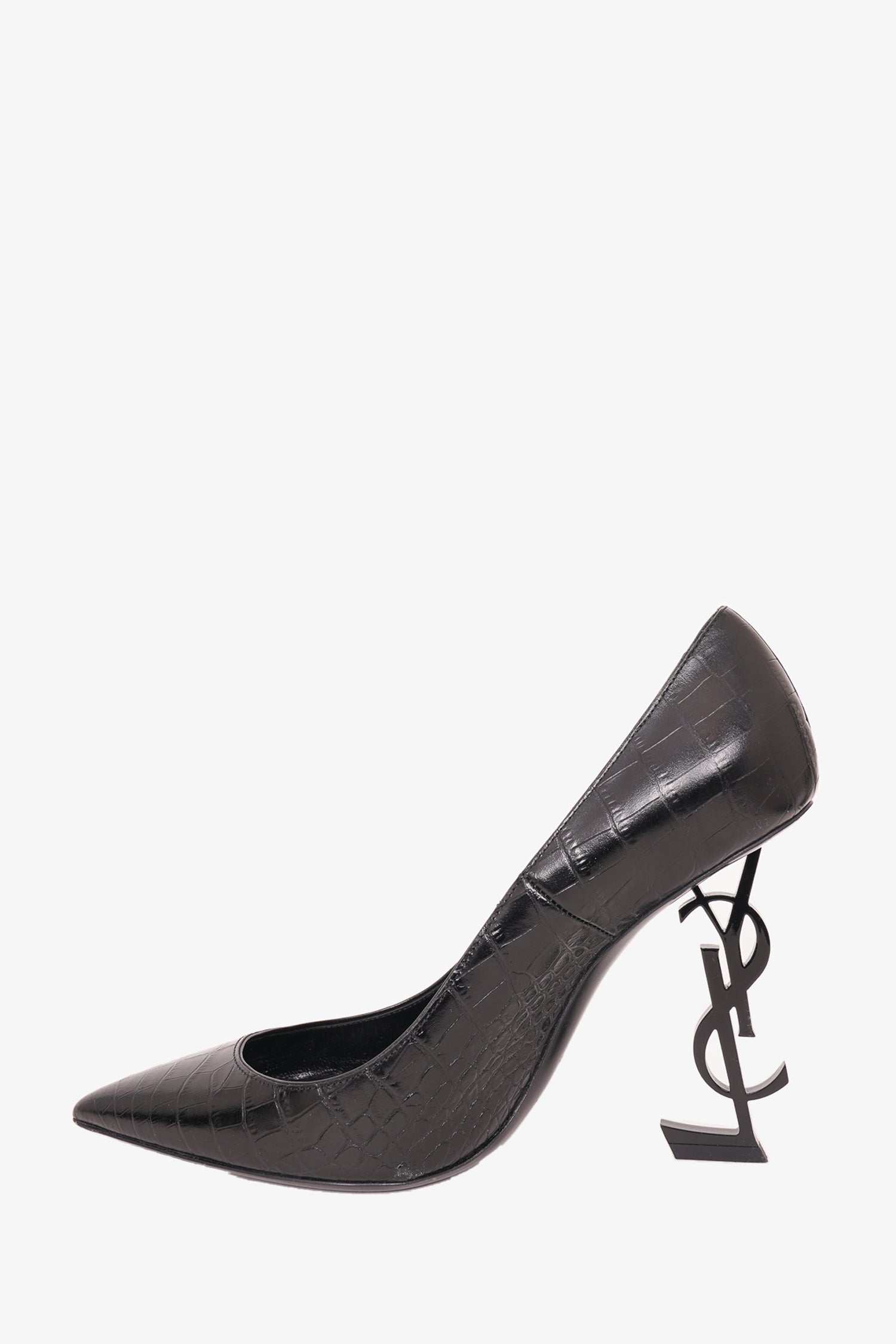 Refresh availabilitySaint Laurent Black Croc Embossed 'Opyum' Heels. Pointed toe. Tonal stitching.