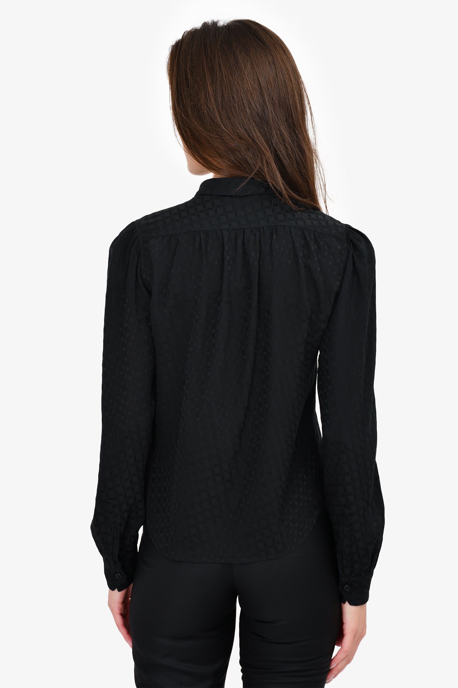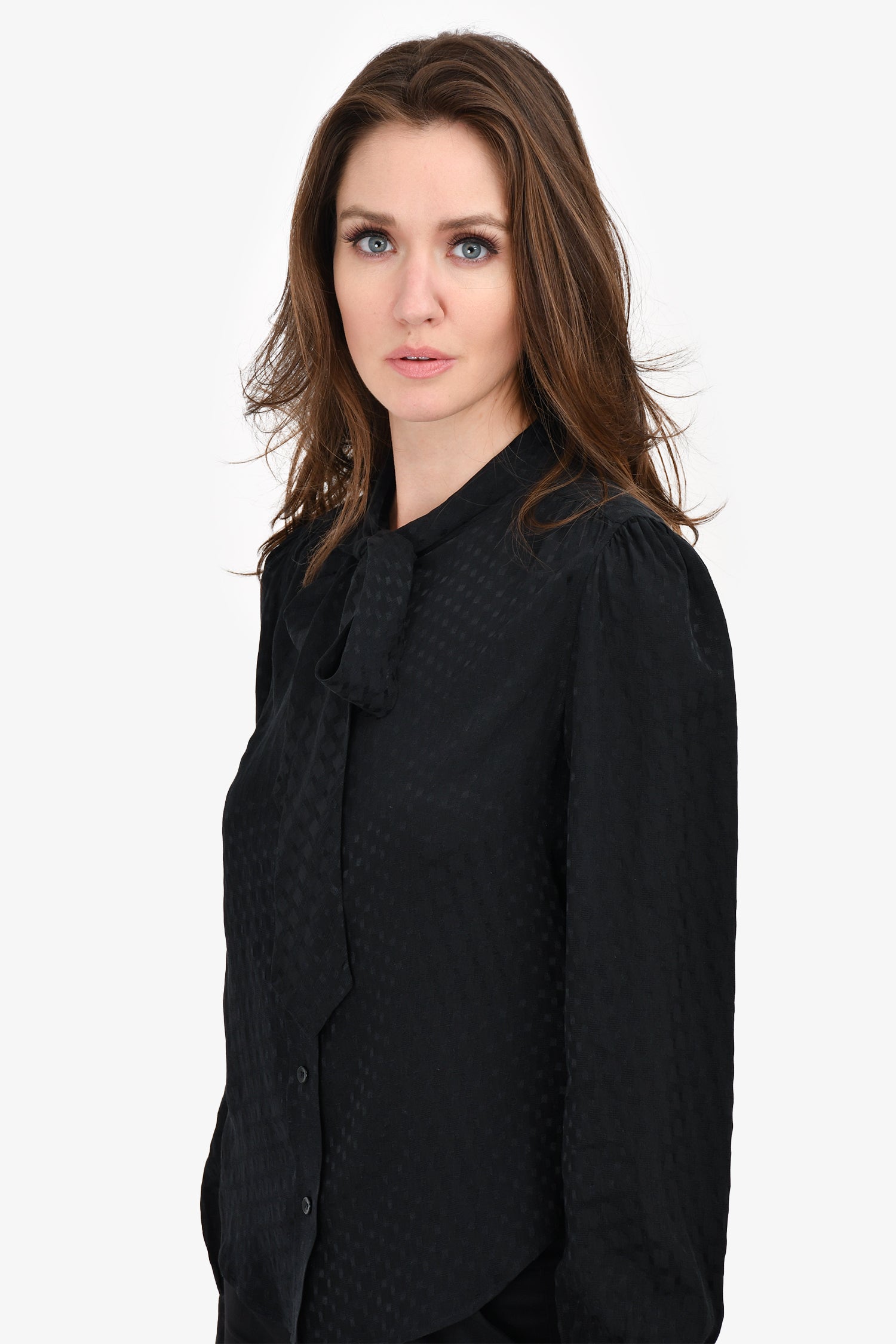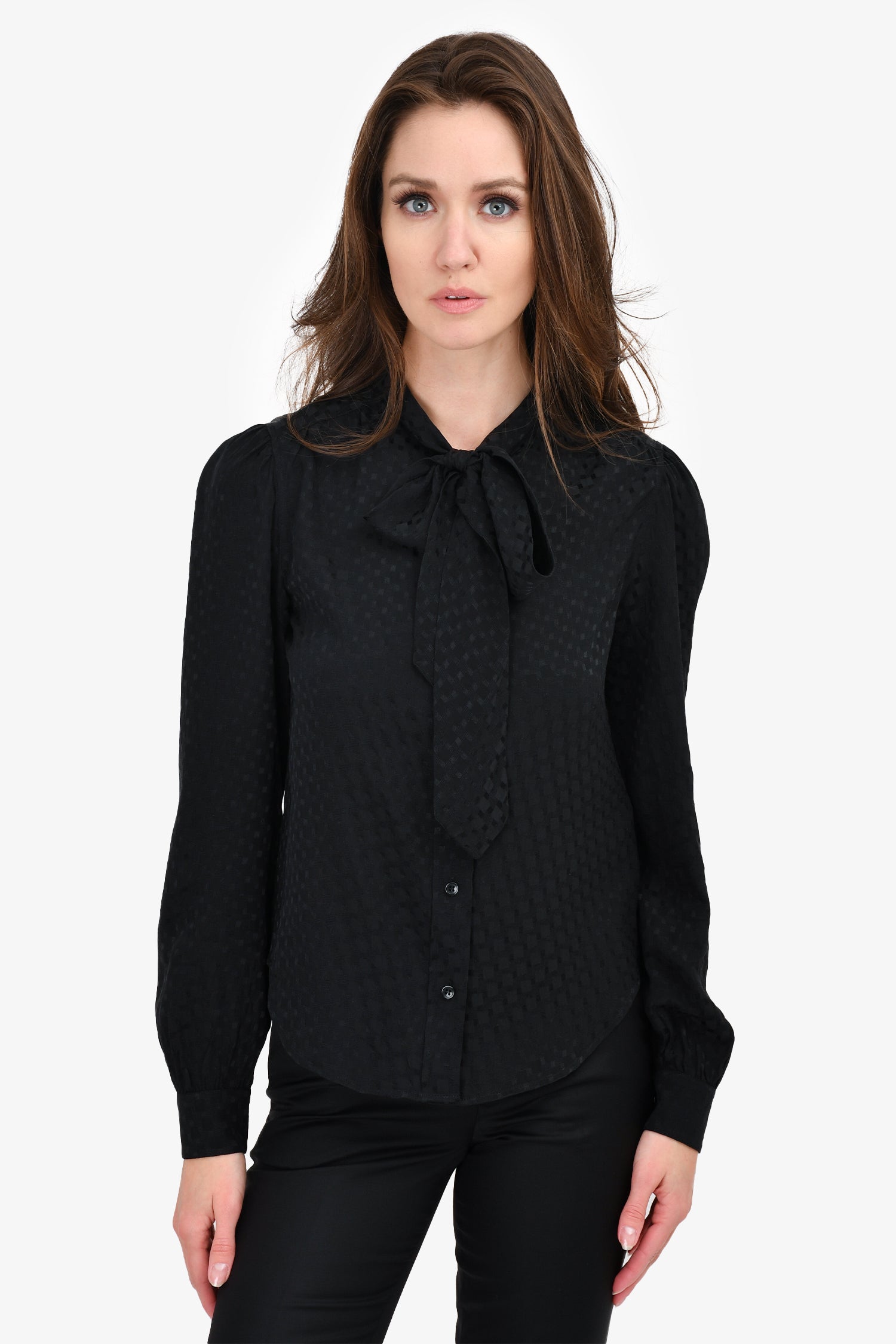 Refresh availabilitySaint Laurent Black Neck Tie Blouse. Front button-up closure. Button closure on the cuffs.