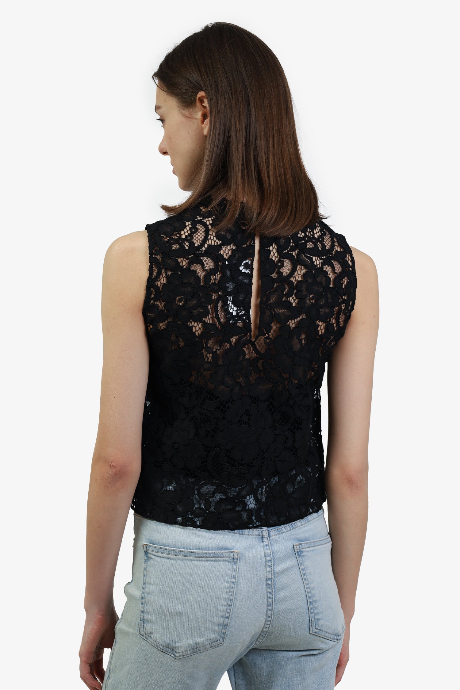 Saint Laurent Black Lace Cut-out Sleeveless Top size 36
