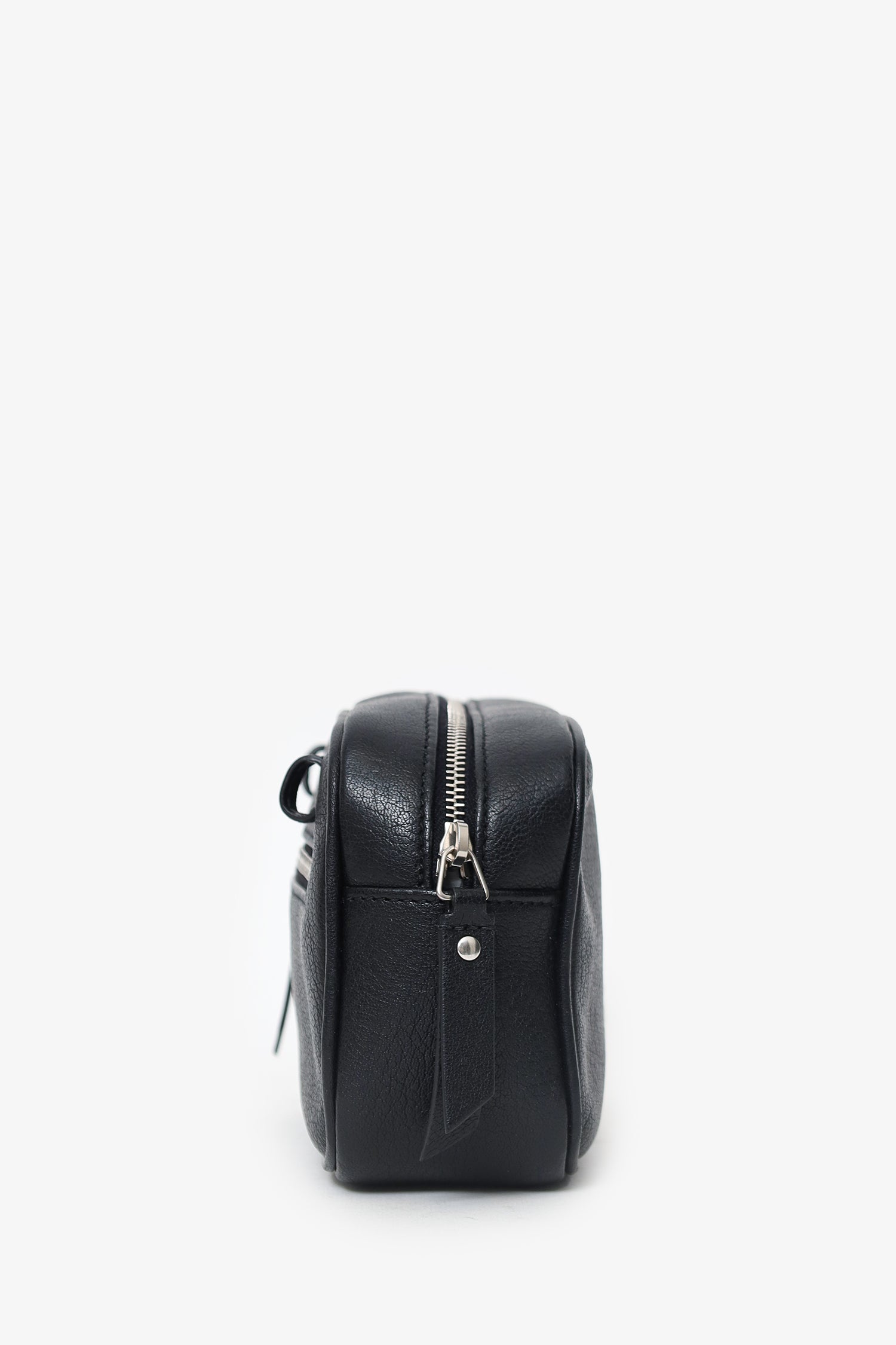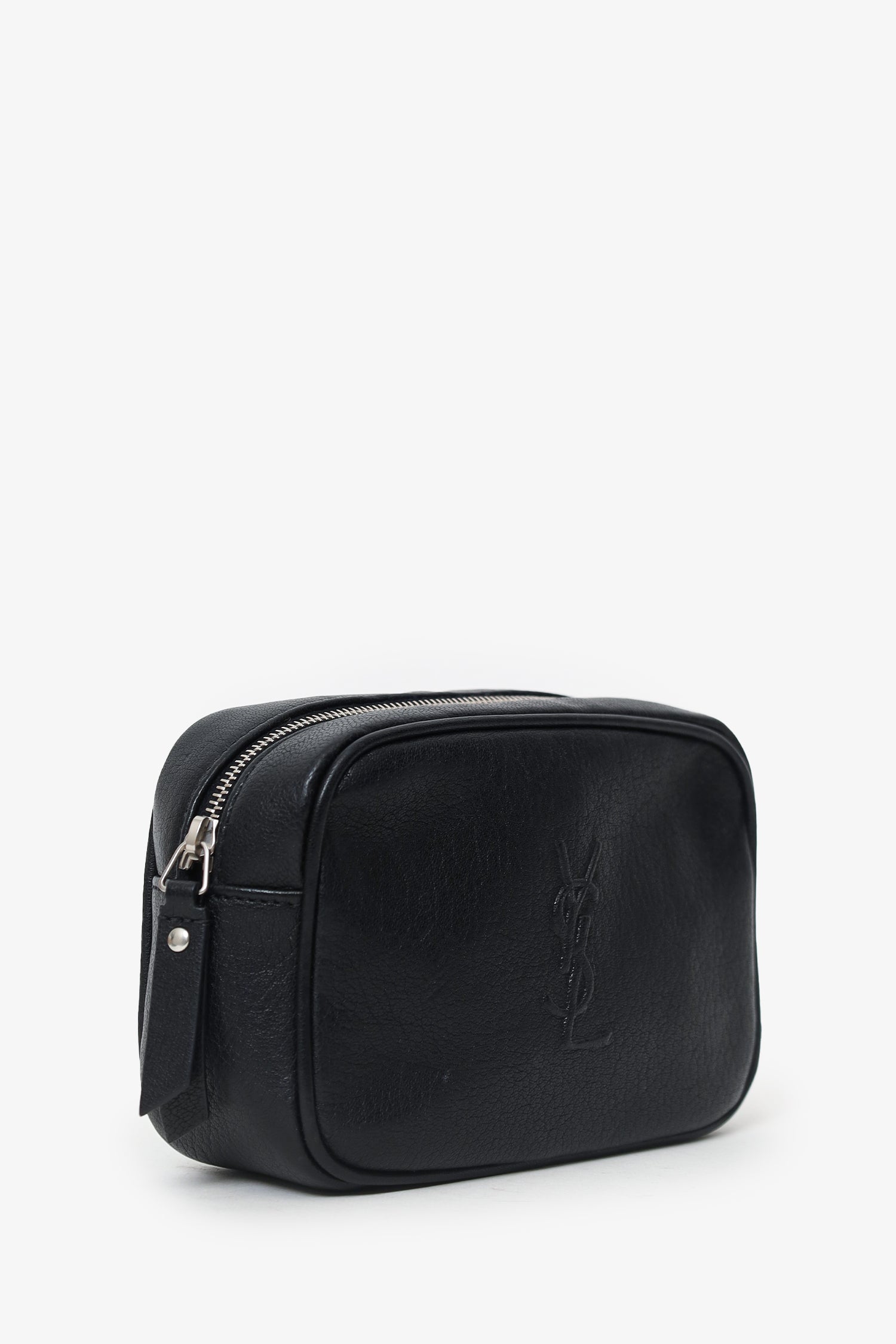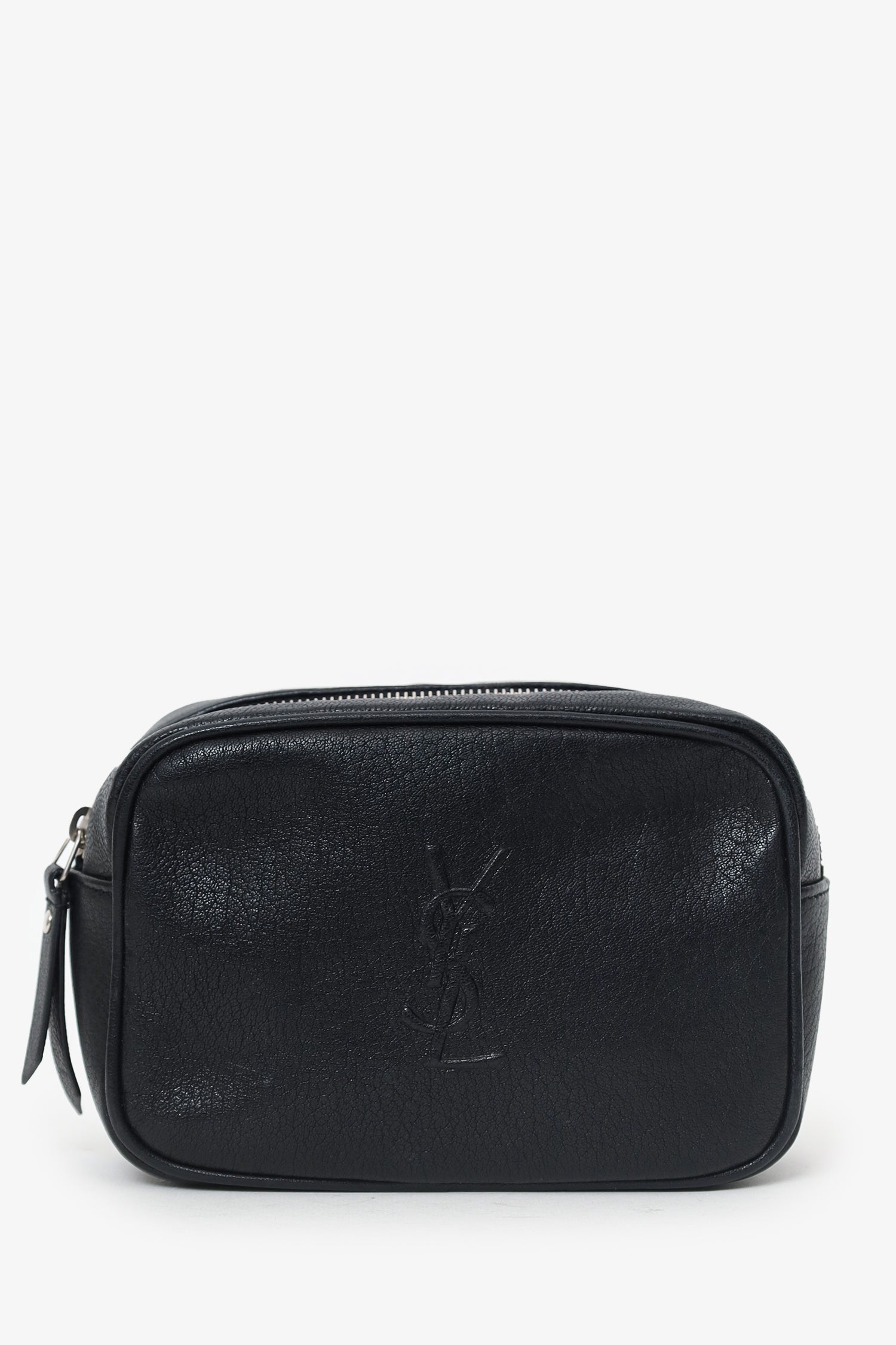Refresh availabilitySaint Laurent Black Lambskin Monogram Lou Belt Bag. Top zip closure. Removable belt with adjustable pull-through buckle closure. Single exterior rear zip pocket. Lined interior with 4 slip pockets. Removable tassel. Silver-tone hardware. Tonal stitching.