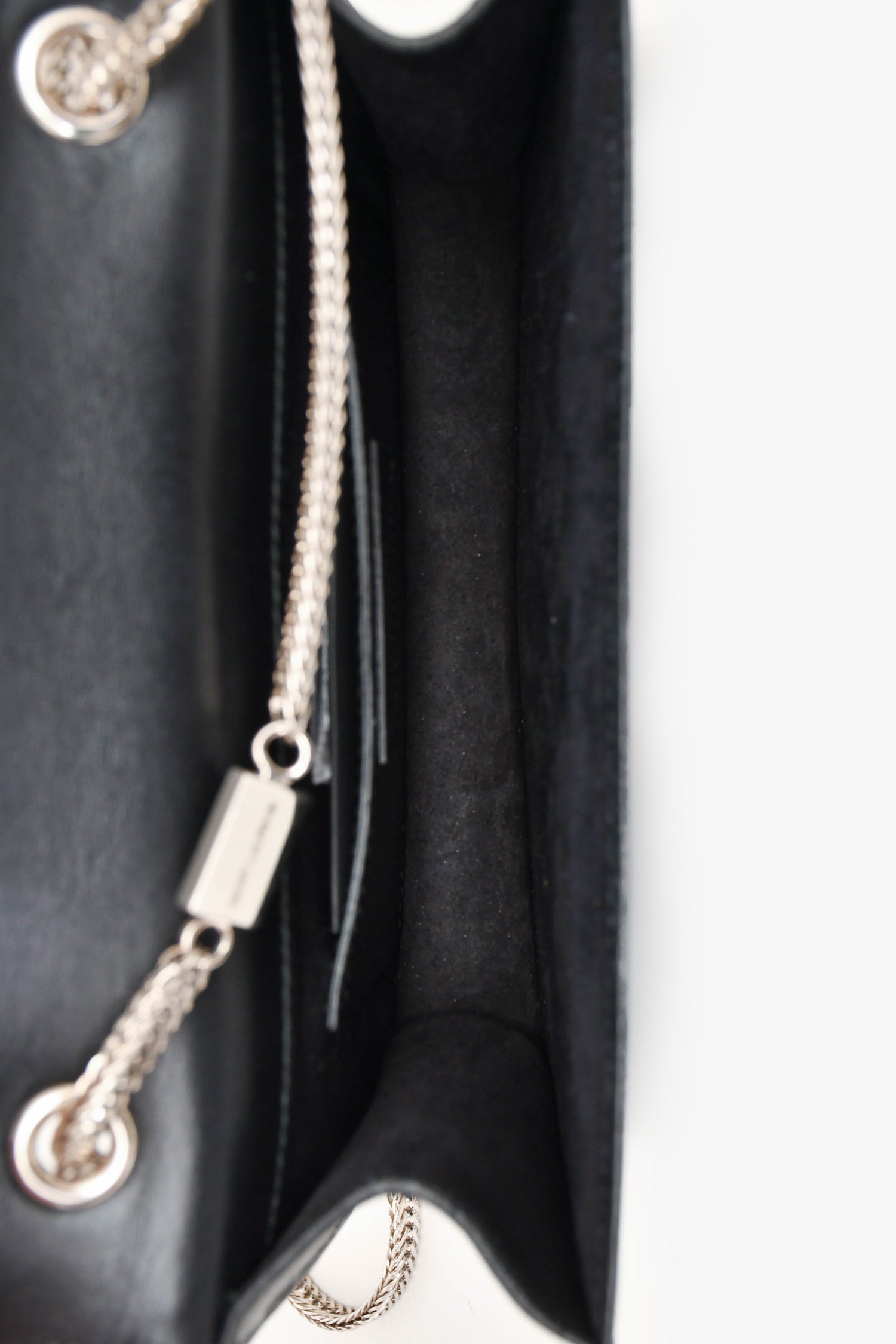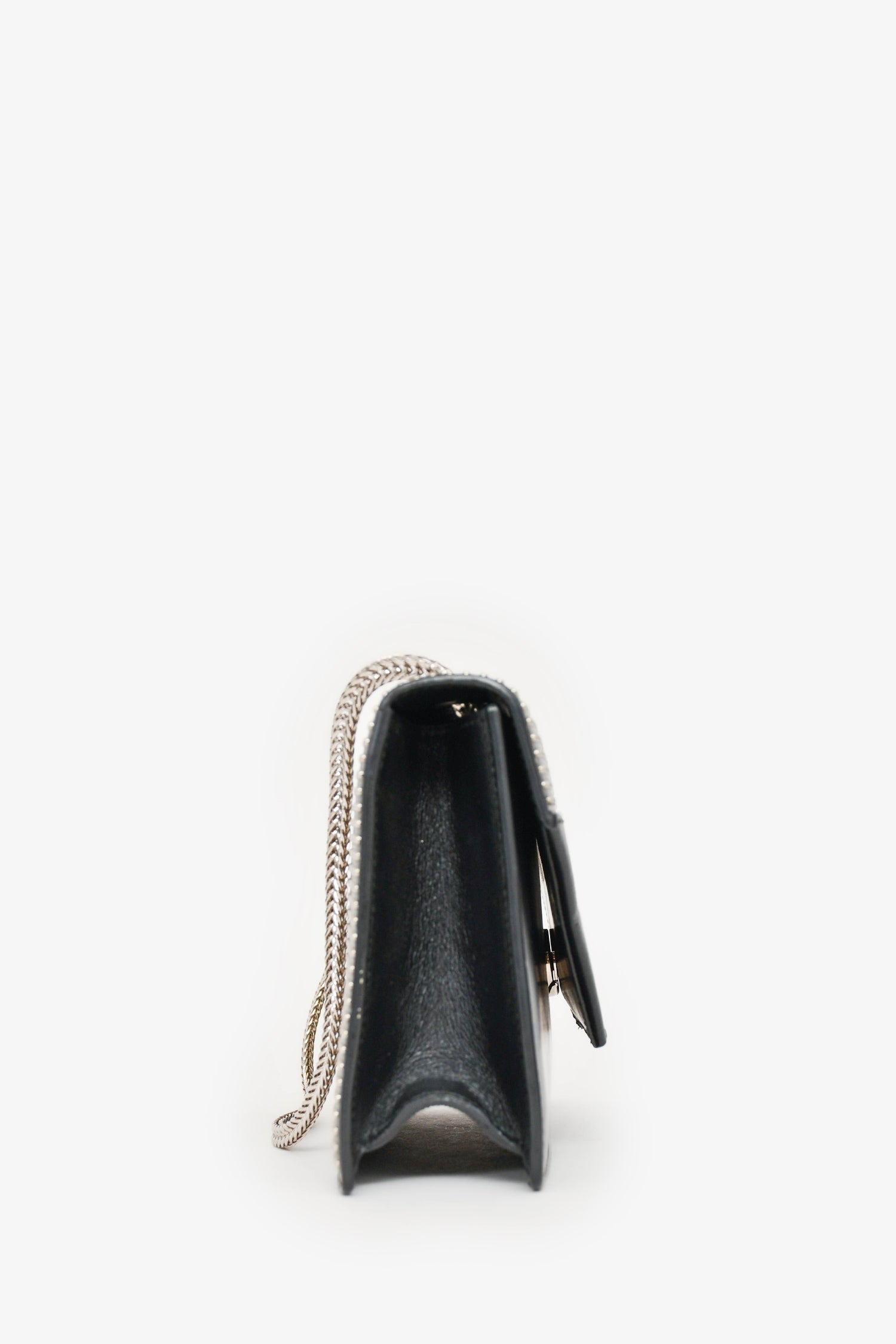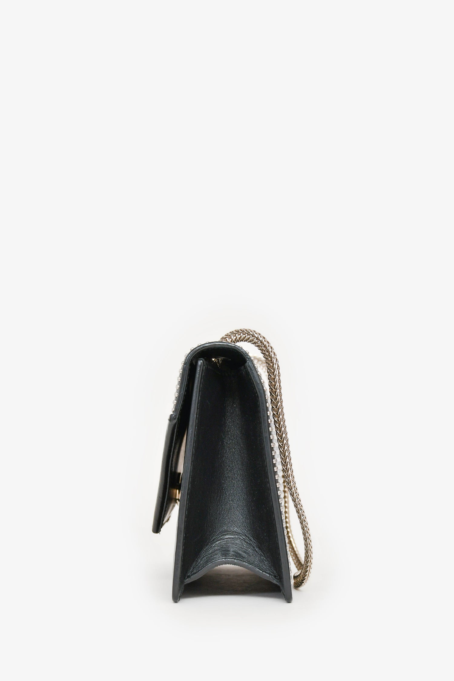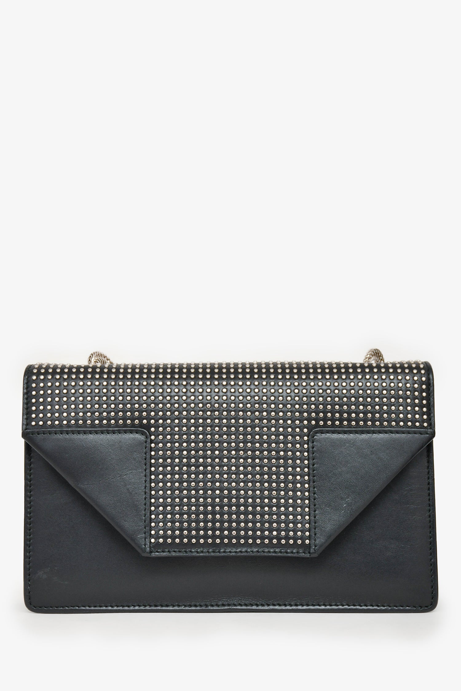 Refresh availabilitySaint Laurent Black Leather Studded Small Betty Crossbody. Fold-over flap with magnetic closure. Silver studded detail on the flap. Silver-tone chain adjustable strap for shoulder or crossbody style. Compact interior with one wall slip pocket. Tonal stitching.