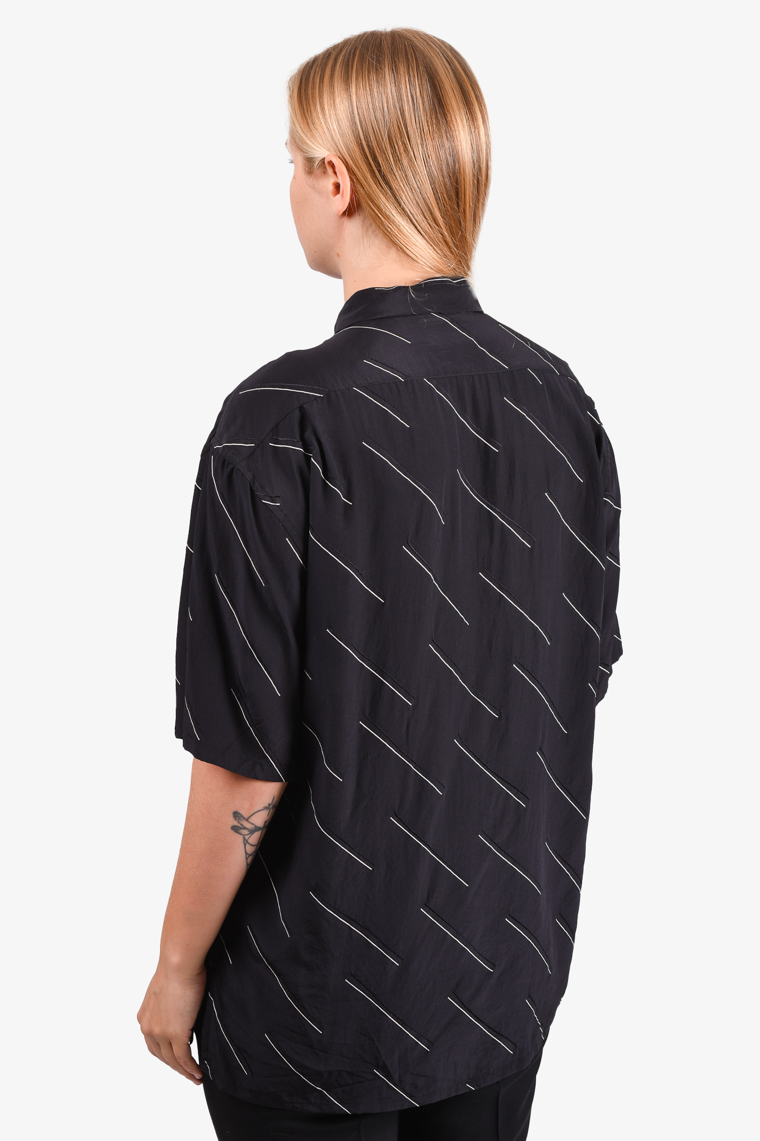 Refresh availabilitySaint Laurent Black Silk Diagonal Striped Shirt. Front button-up closure. Tonal stitching.