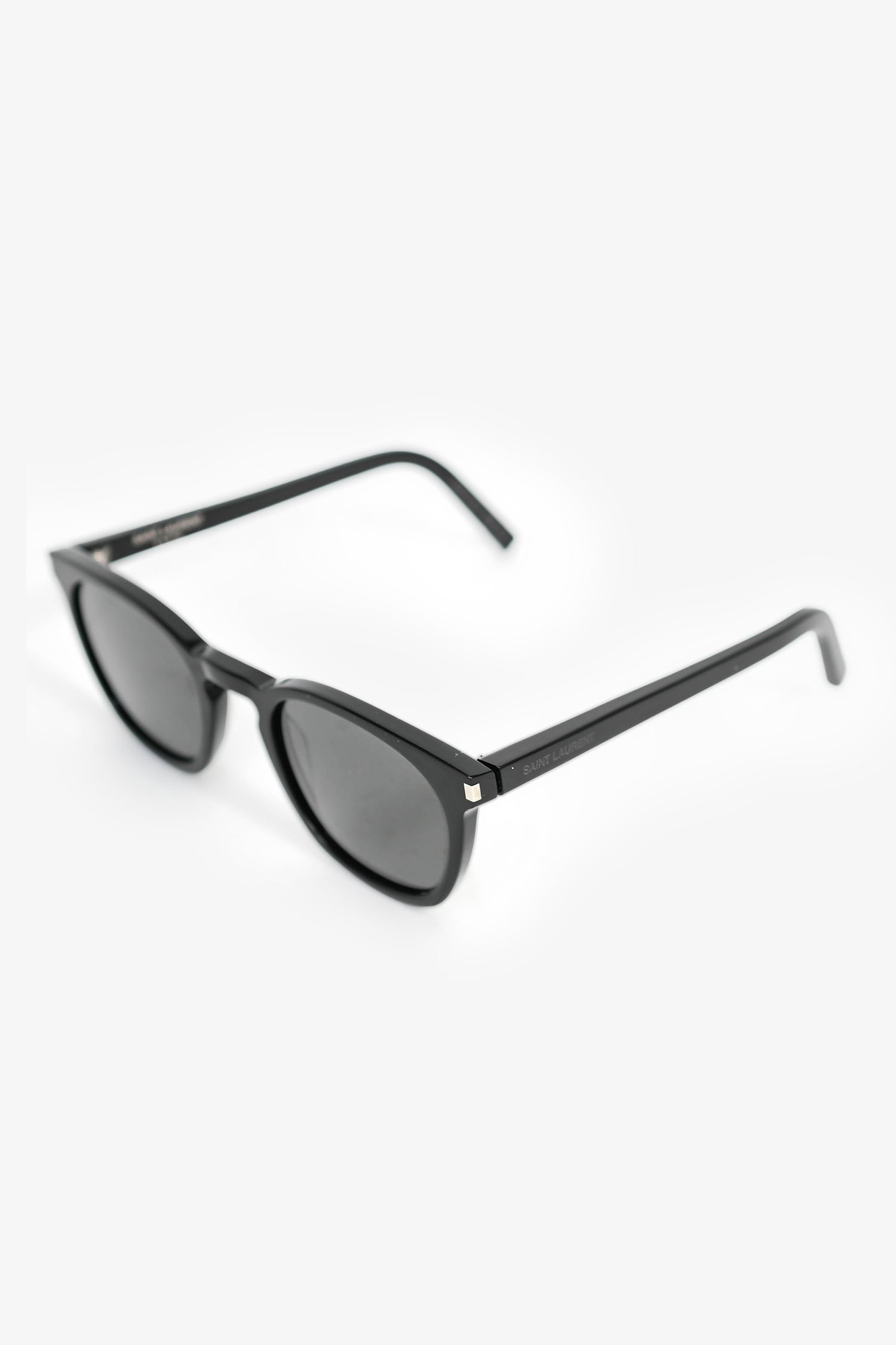 Refresh availabilitySaint Laurent Black 'SL28' Sunglasses. Built-in nose pads. Silver-tone hardware.