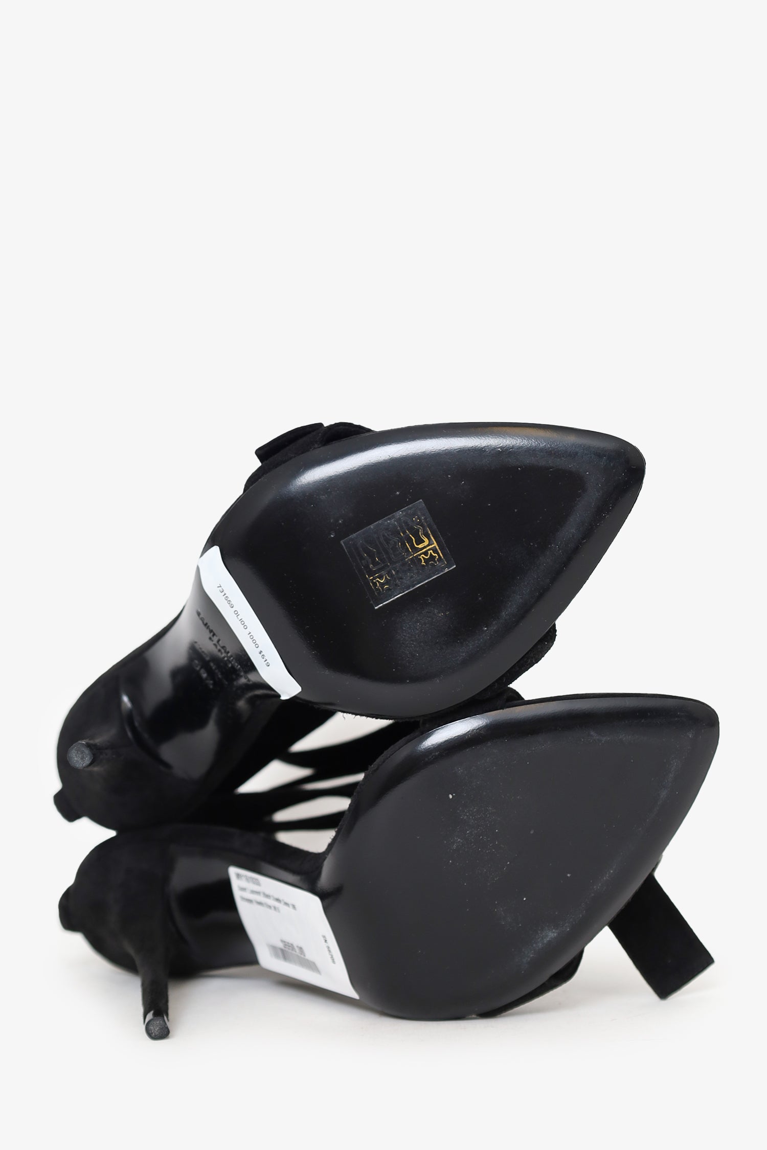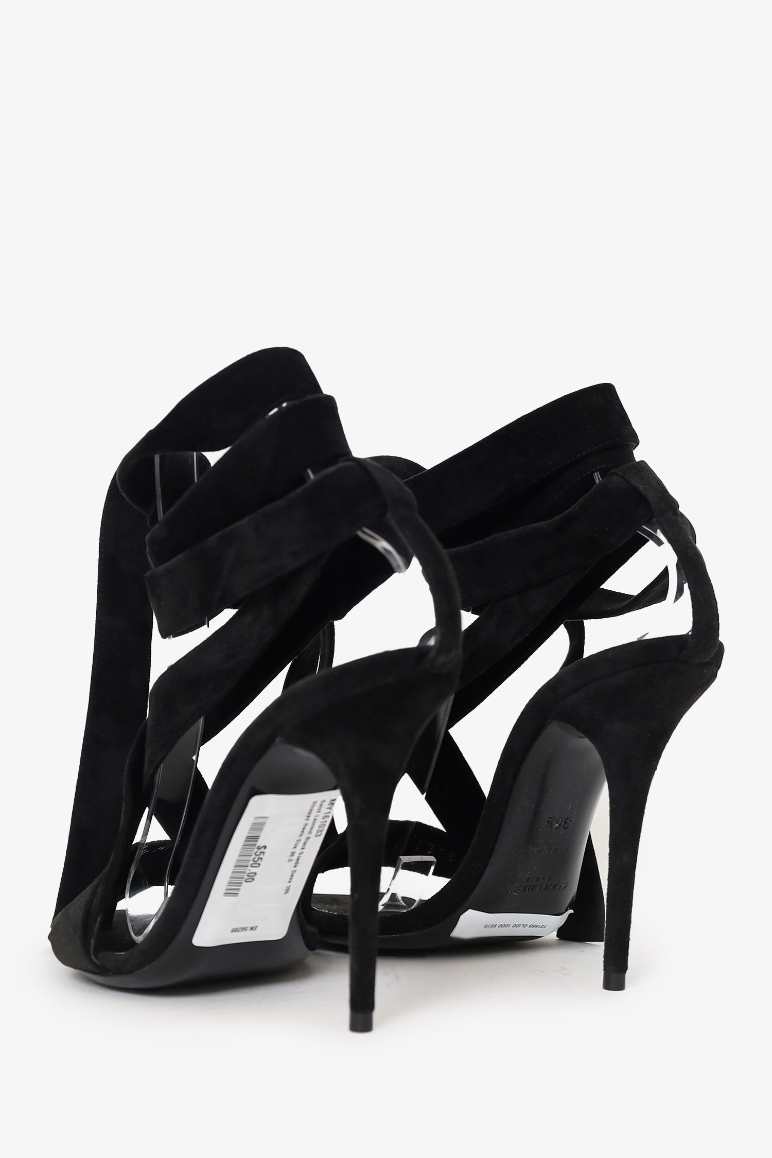 Saint Laurent Black Suede Deva 105 Strappy Heels Size 36.5