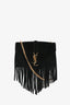 Saint Laurent Black Suede Leather Fringe Detailed Crossbody Bag